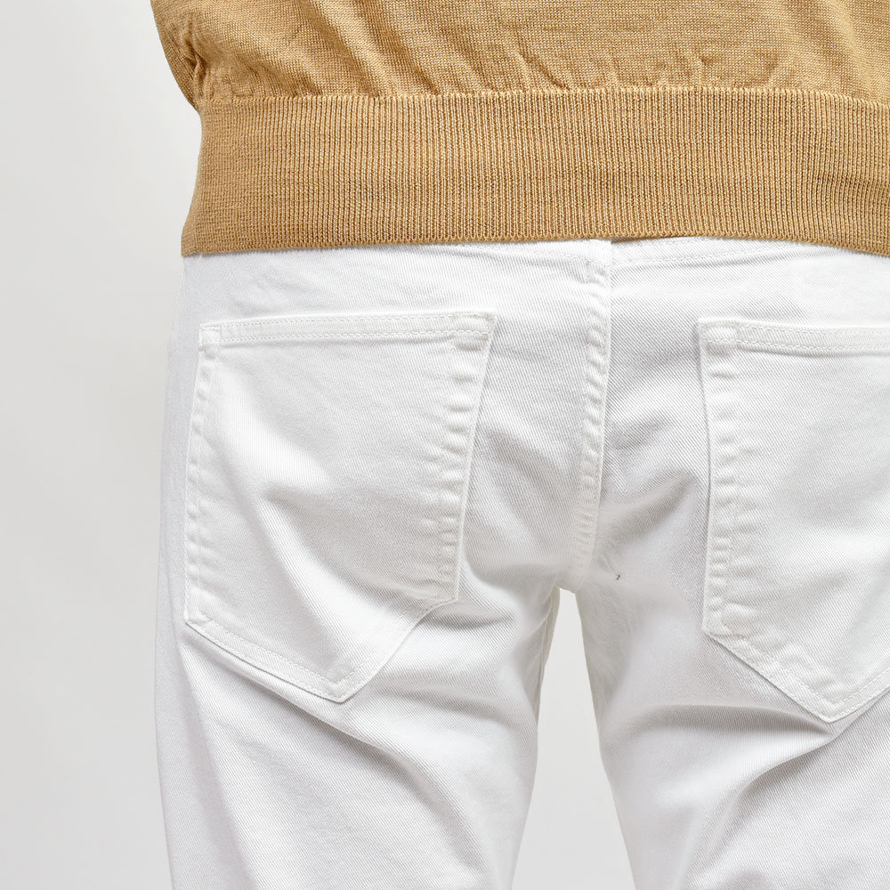 サイズ32がジャストサイズです。腰回りからヒップ・ワタリにゆとりがあり、裾にかけてテーパードした程よい細さのシルエット。スイングよりも股上は深く全体的にゆとりのある印象ですがすっきりとしています。定番のホワイトとブラックを新たなモデルでご用意しました!