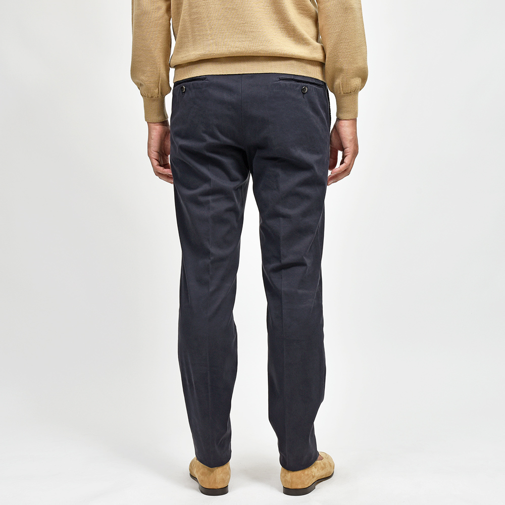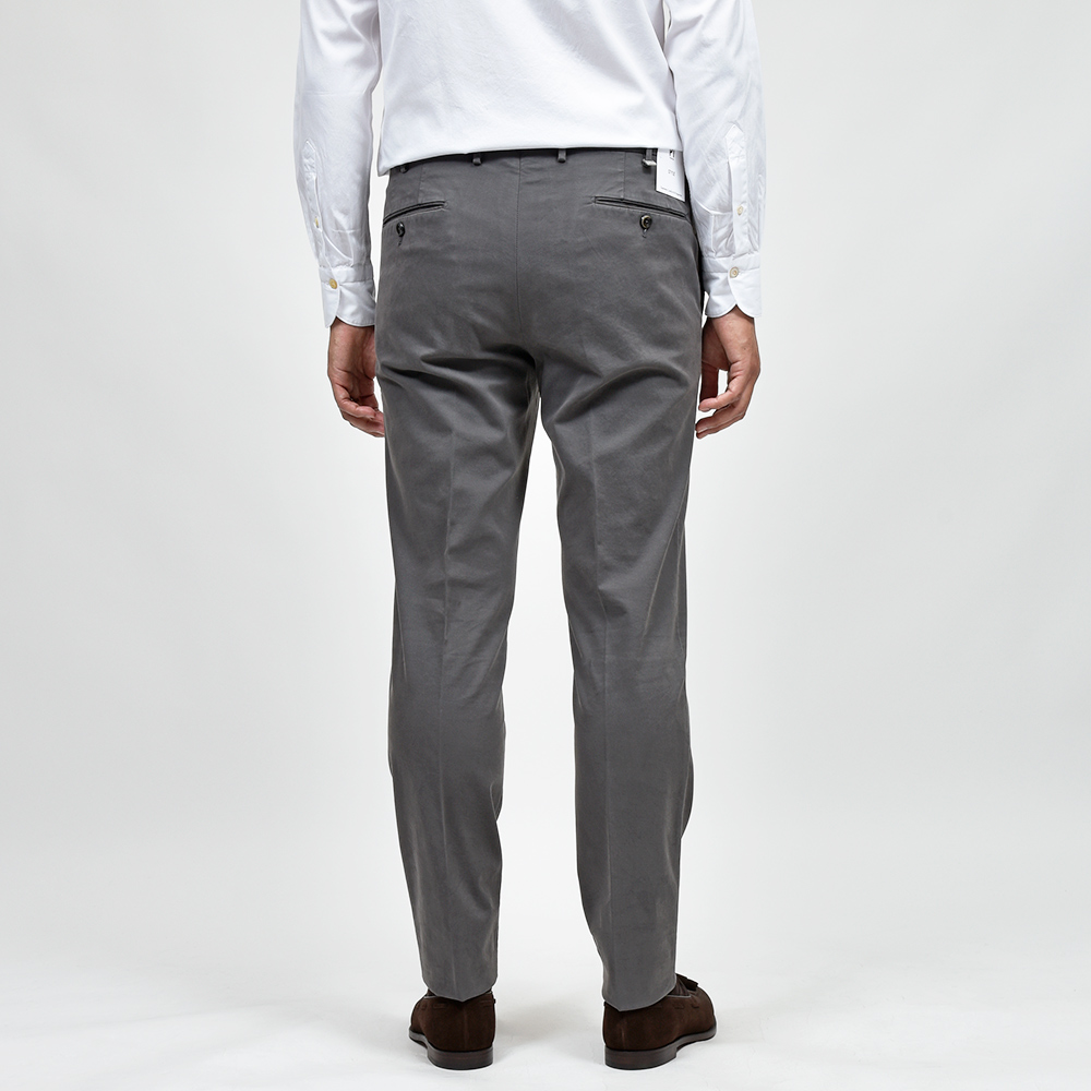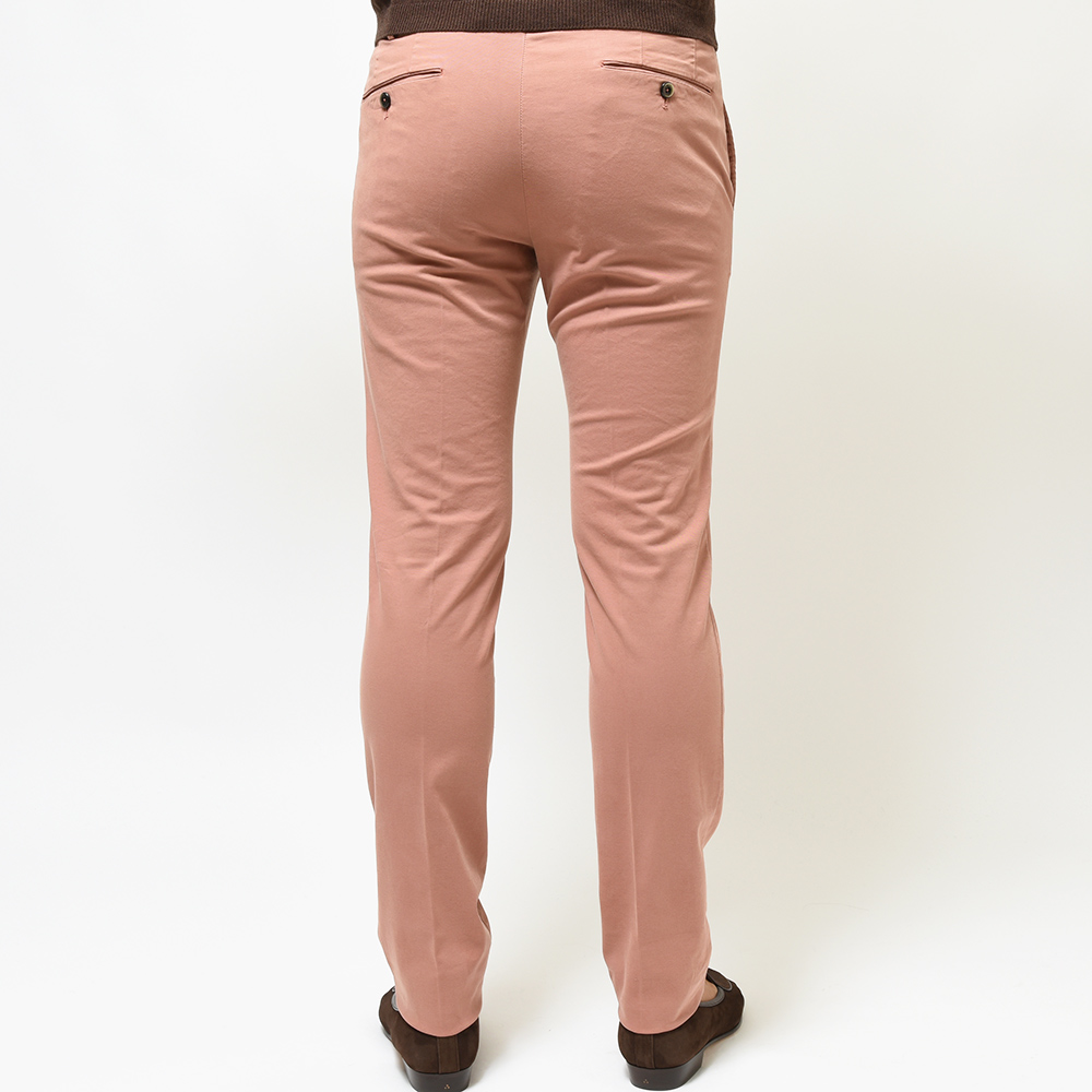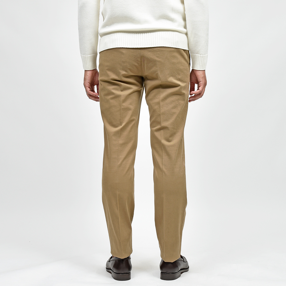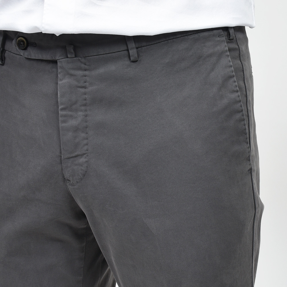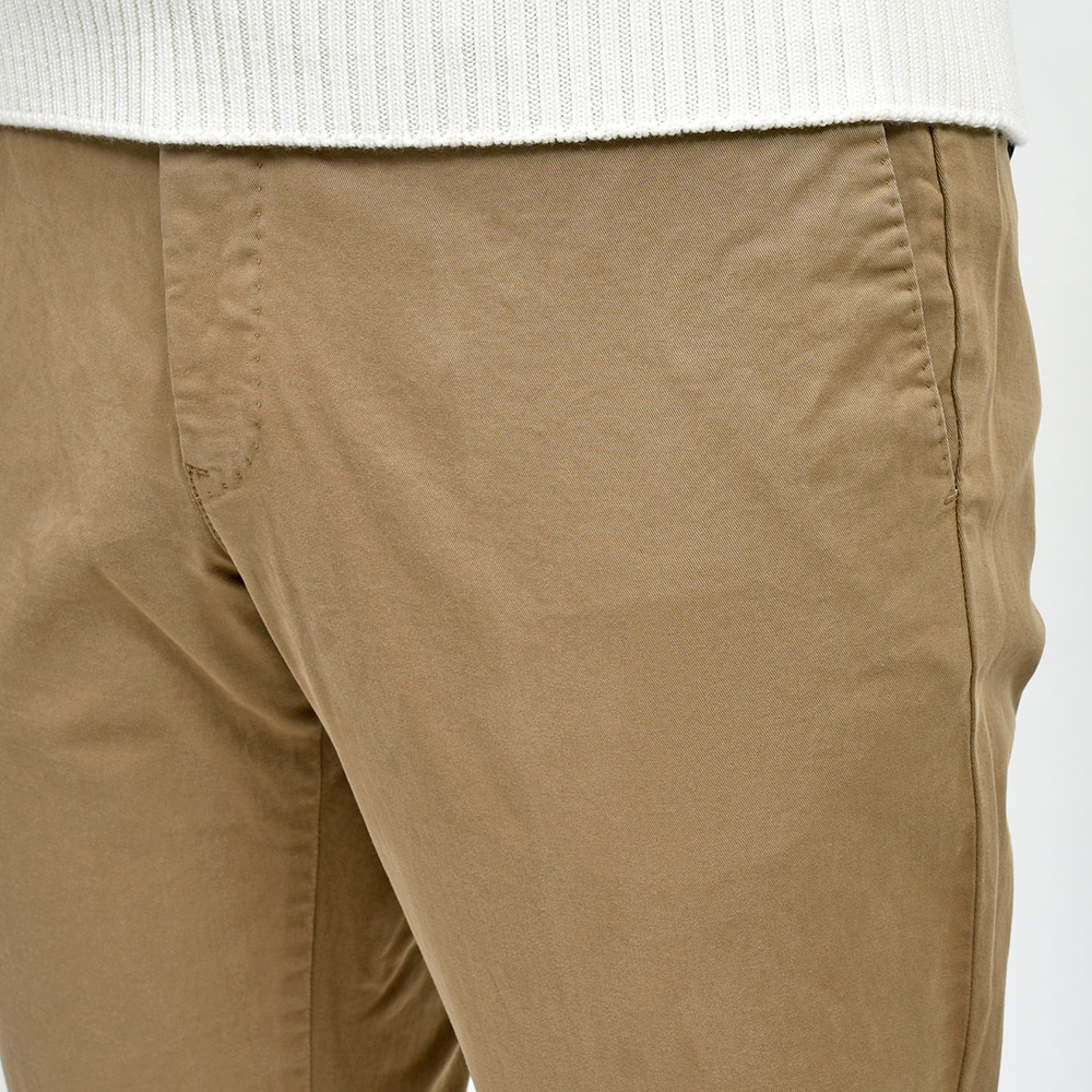 目付け340gの製品洗いをかけたコットンストレッチ素材は、PT TORINOのロングセラーである定番のチノクロスになります。細畝のツイル織りがカジュアルでありながらも上品さとエレガンスを感じさせる、これぞPT TORINOと言える要素が詰まっています。コチラは起毛感を抑え、厚すぎず薄すぎない生地感になりますので、ロングシーズンでの着用が可能となります。