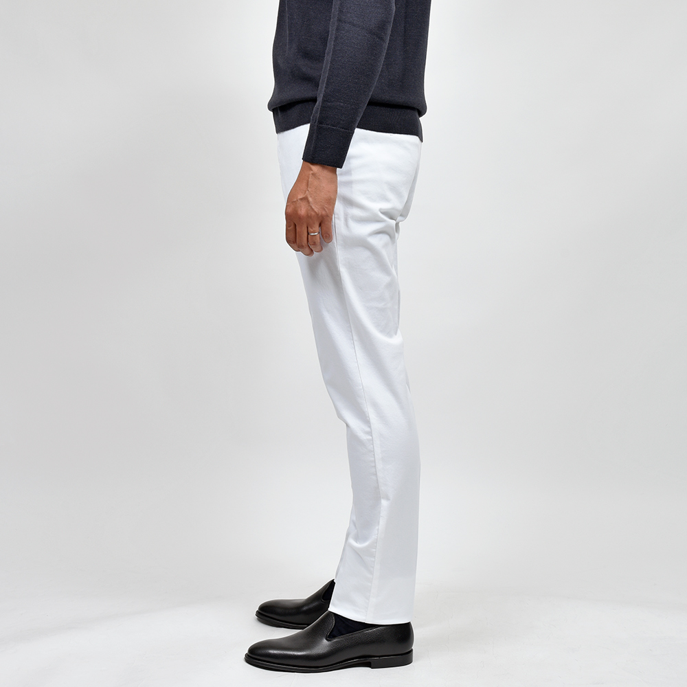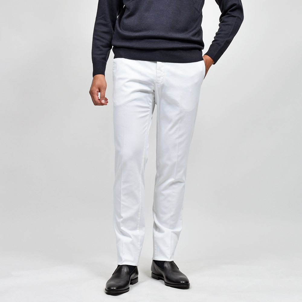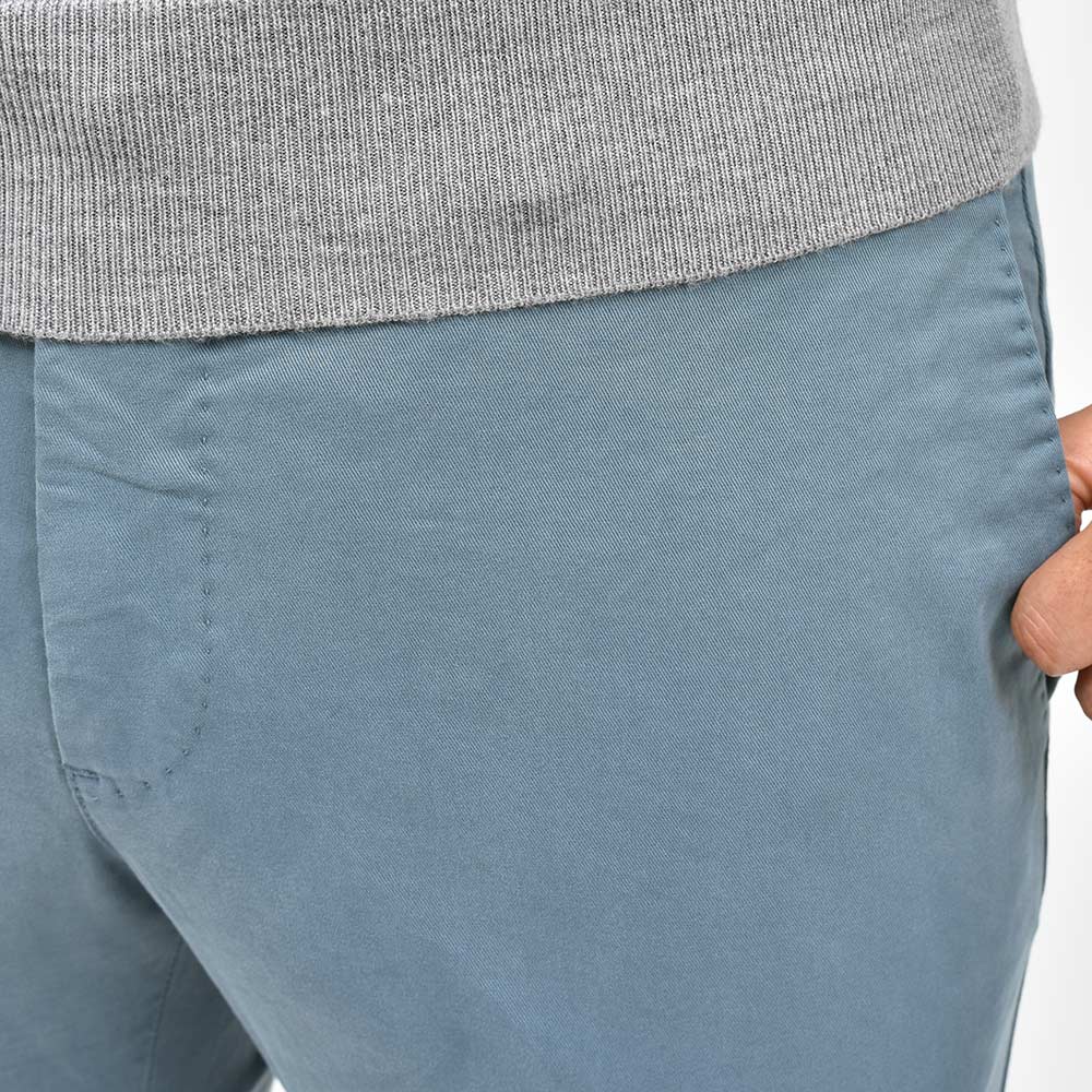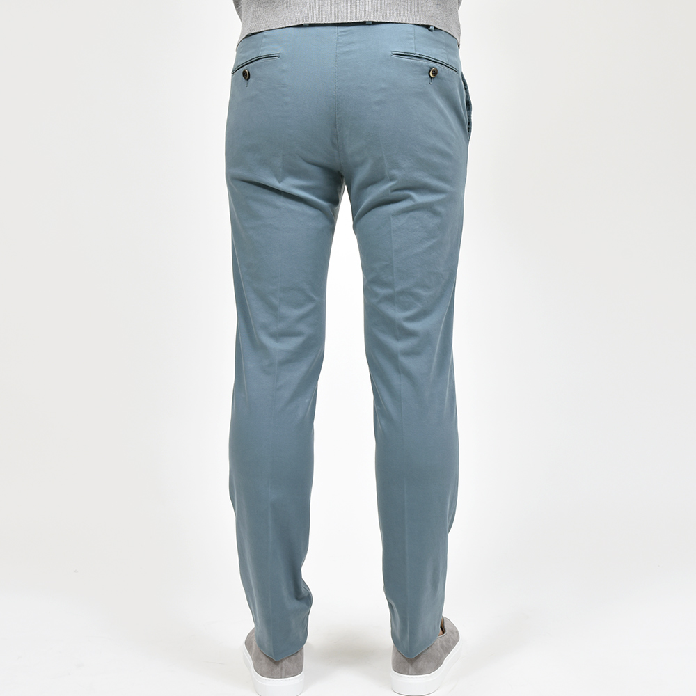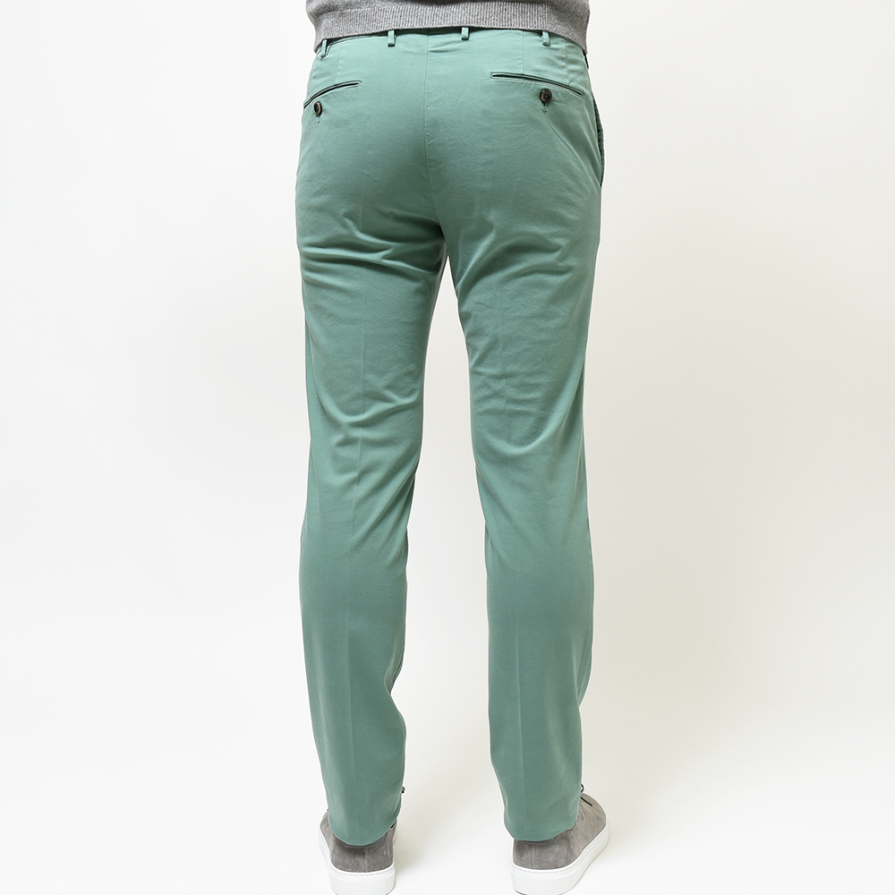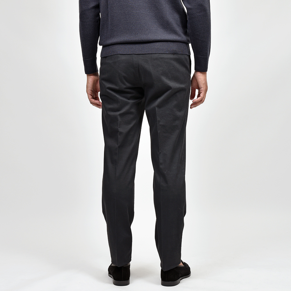 目付け340gの製品洗いをかけたコットンストレッチ素材は、PT TORINOのロングセラーである定番のチノクロスになります。細畝のツイル織りがカジュアルでありながらも上品さとエレガンスを感じさせる、これぞPT TORINOと言える要素が詰まっています。コチラは起毛感を抑え、厚すぎず薄すぎない生地感になりますので、ロングシーズンでの着用が可能となります。