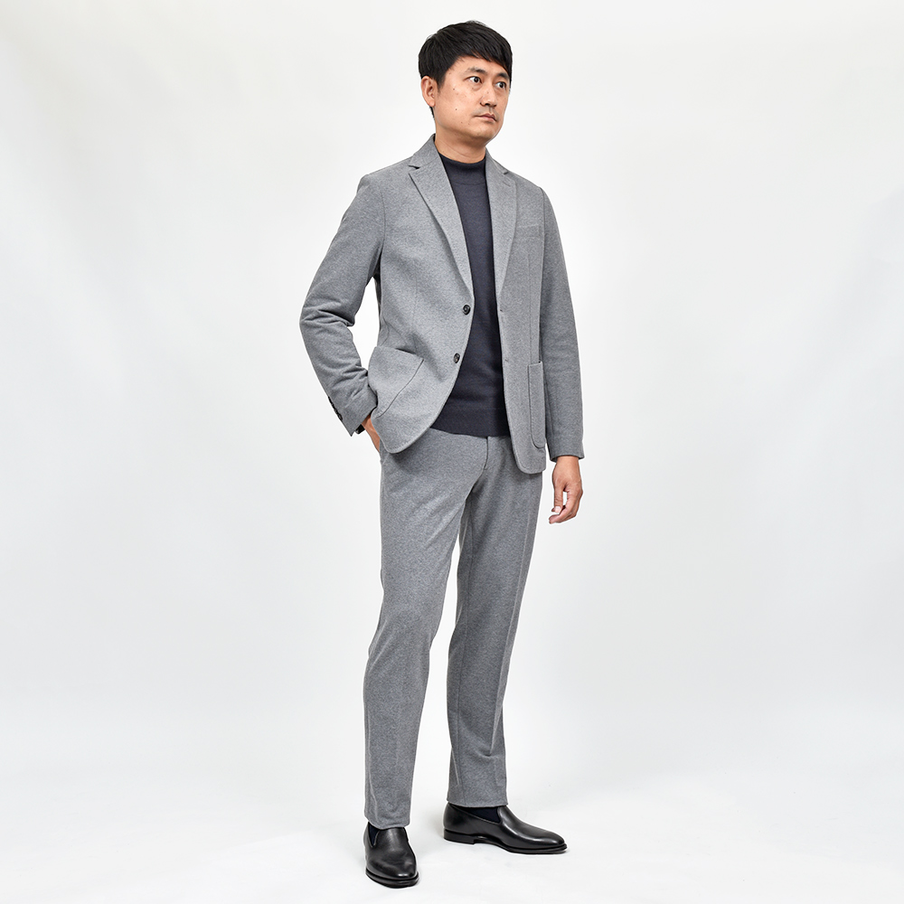 縫製が非常に難しいジャージー生地をいつも高い完成度で世に送り出し続けている、ジャージーを使用したセットアップの先駆者です。