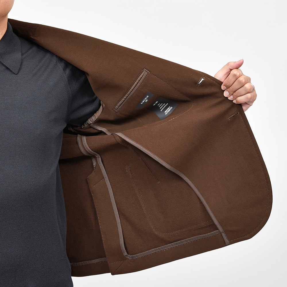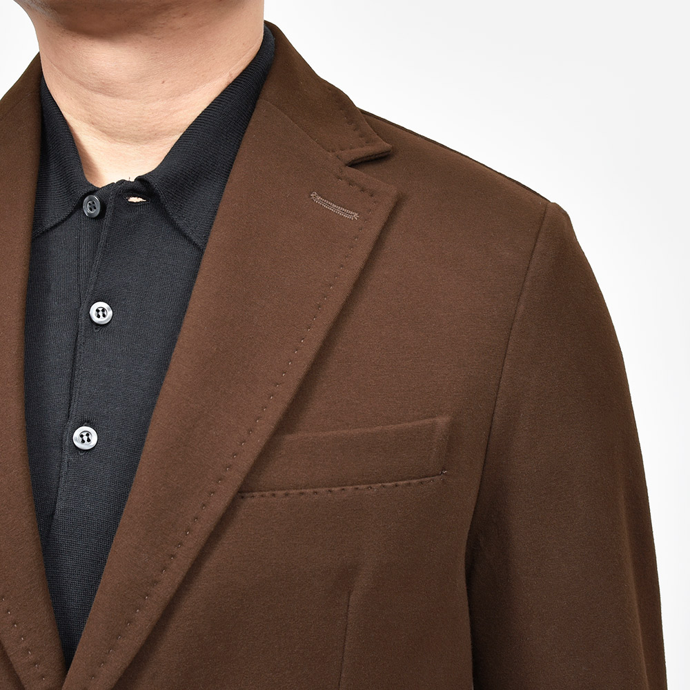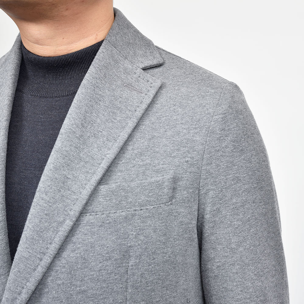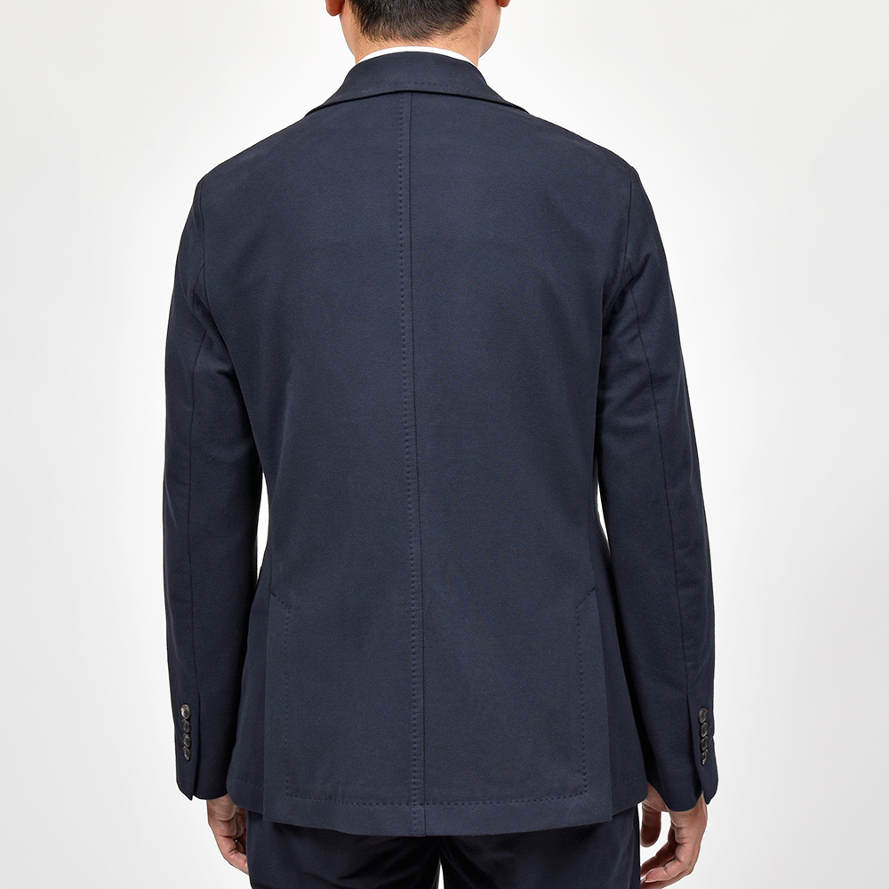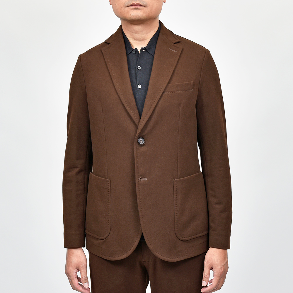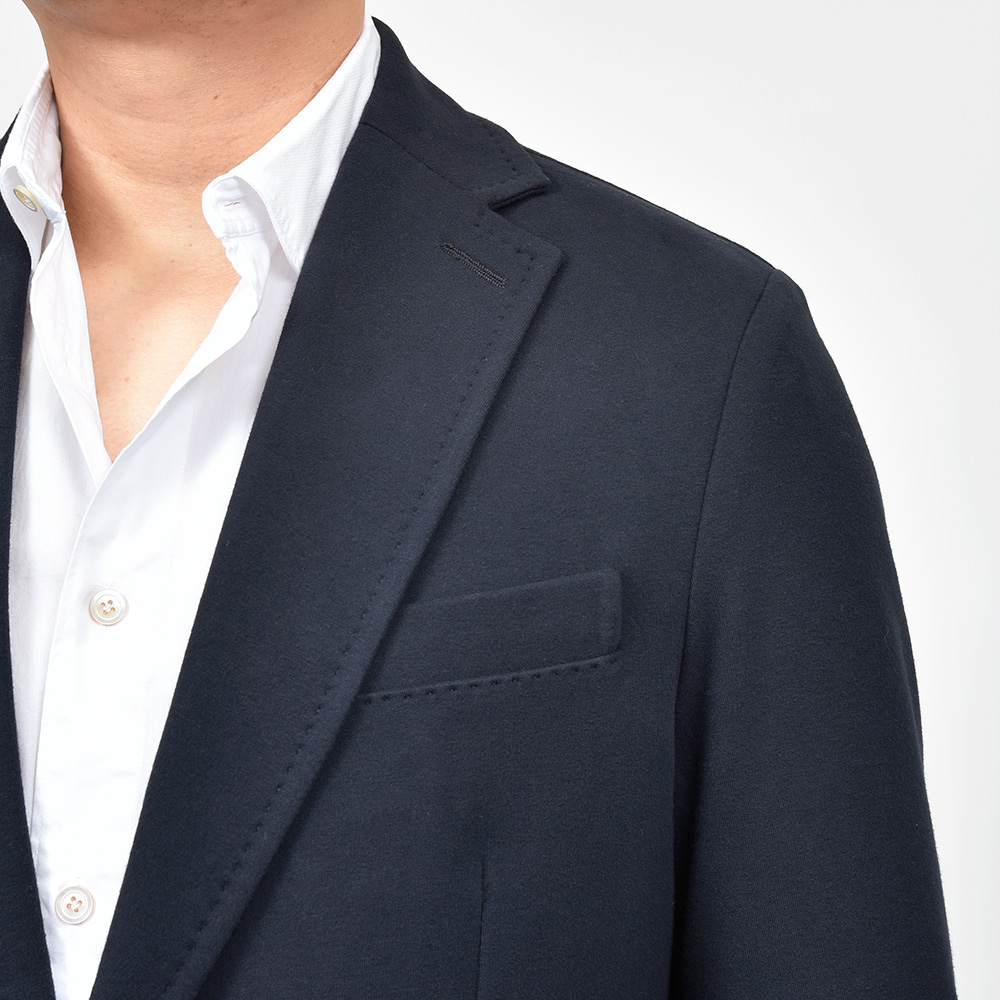 こちらは程よくタイトなシルエットに、フロントの2つボタンがジュアルなジャケットやセットアップとして非常に有能な働きをしてくれる定番モデルになります。