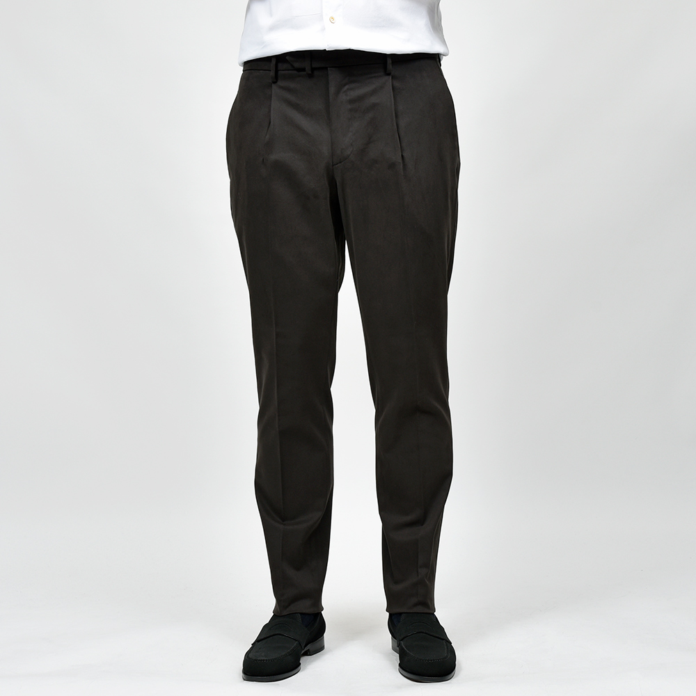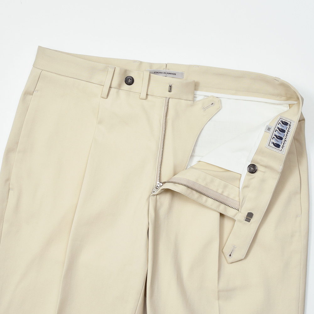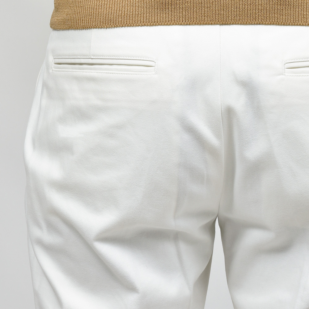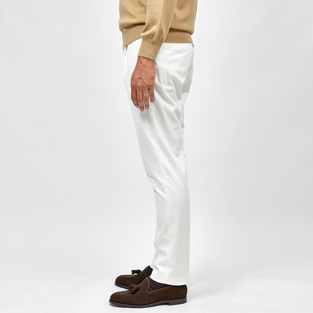 コチラは「SPACE-FIT(スペースフィット)」シリーズのモデル“DANTE(ダンテ)”。1プリーツの程よくゆとりを持たせた腰回りに、高めに設定された膝位置からのテーパードにより脚長効果のあるシルエットに仕上げた、上品な雰囲気を醸し出すシルエットによって、カジュアルからドレスまで様々なシーンで活躍してくれます。