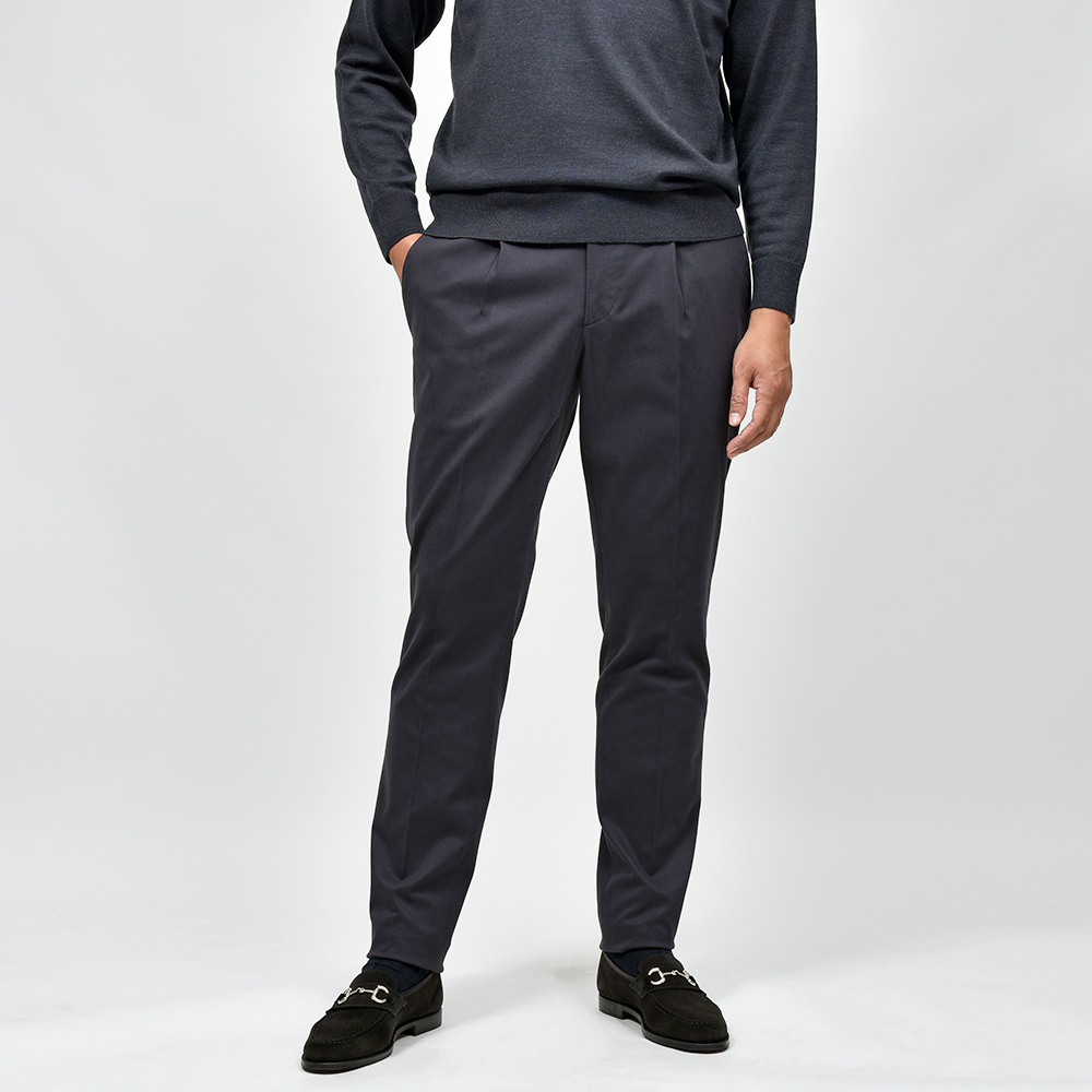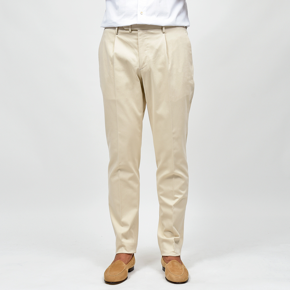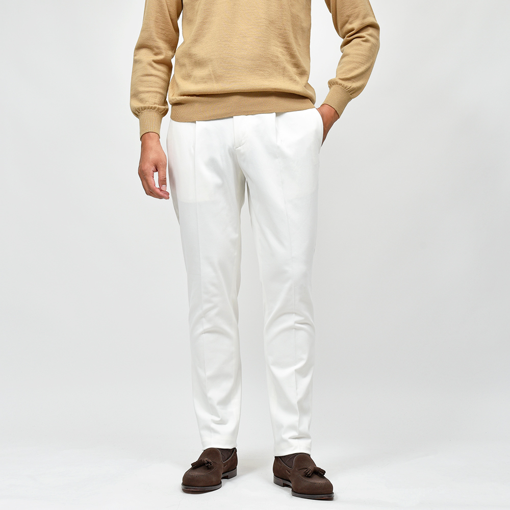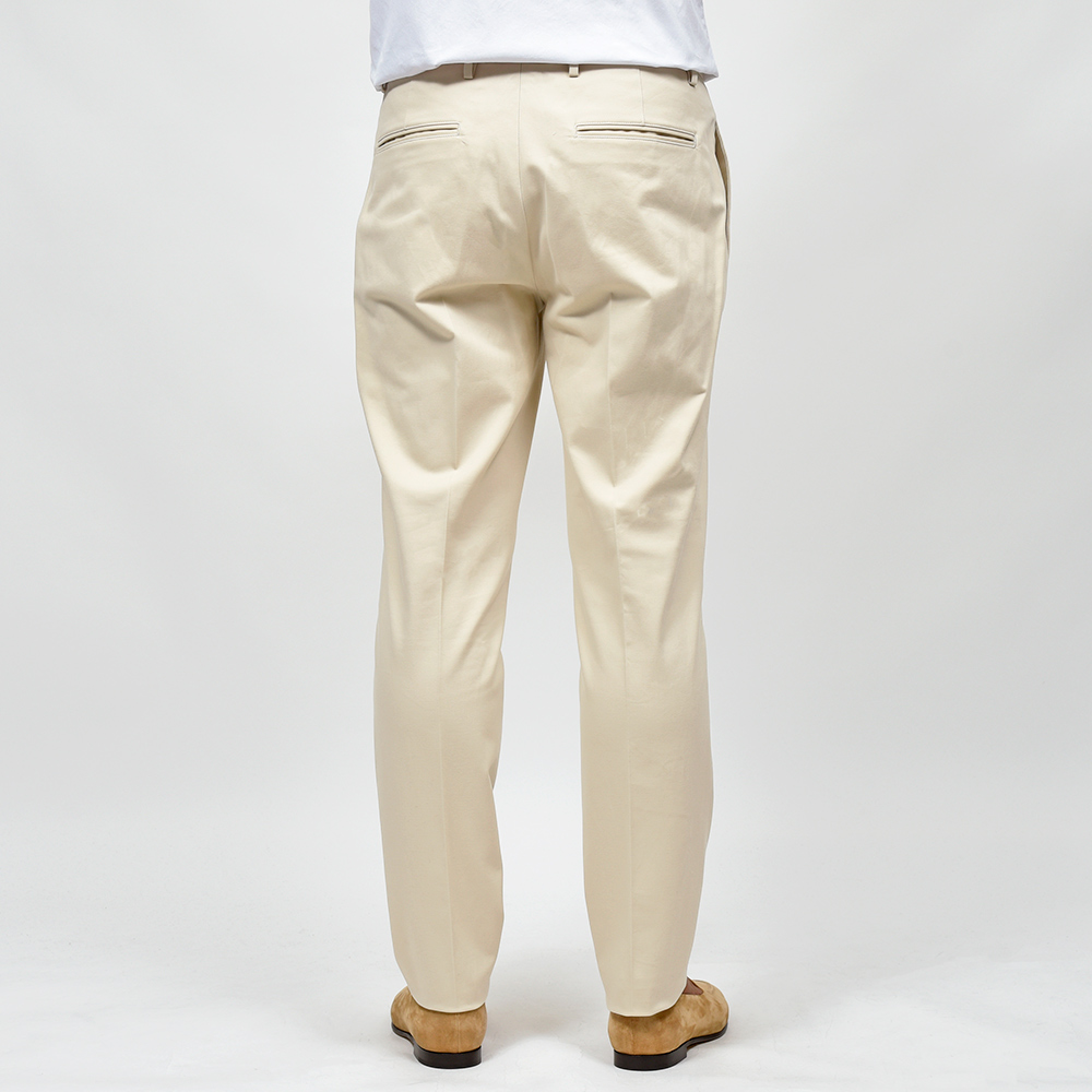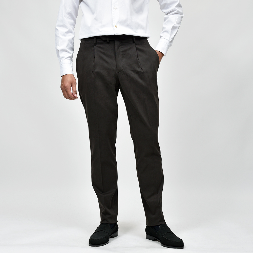 コチラは「SPACE-FIT(スペースフィット)」シリーズのモデル“DANTE(ダンテ)”。1プリーツの程よくゆとりを持たせた腰回りに、高めに設定された膝位置からのテーパードにより脚長効果のあるシルエットに仕上げた、上品な雰囲気を醸し出すシルエットによって、カジュアルからドレスまで様々なシーンで活躍してくれます。