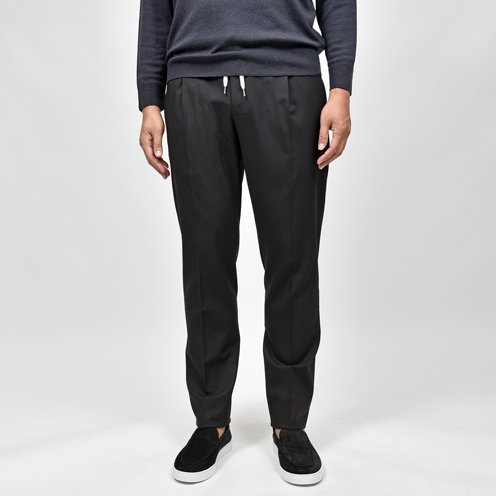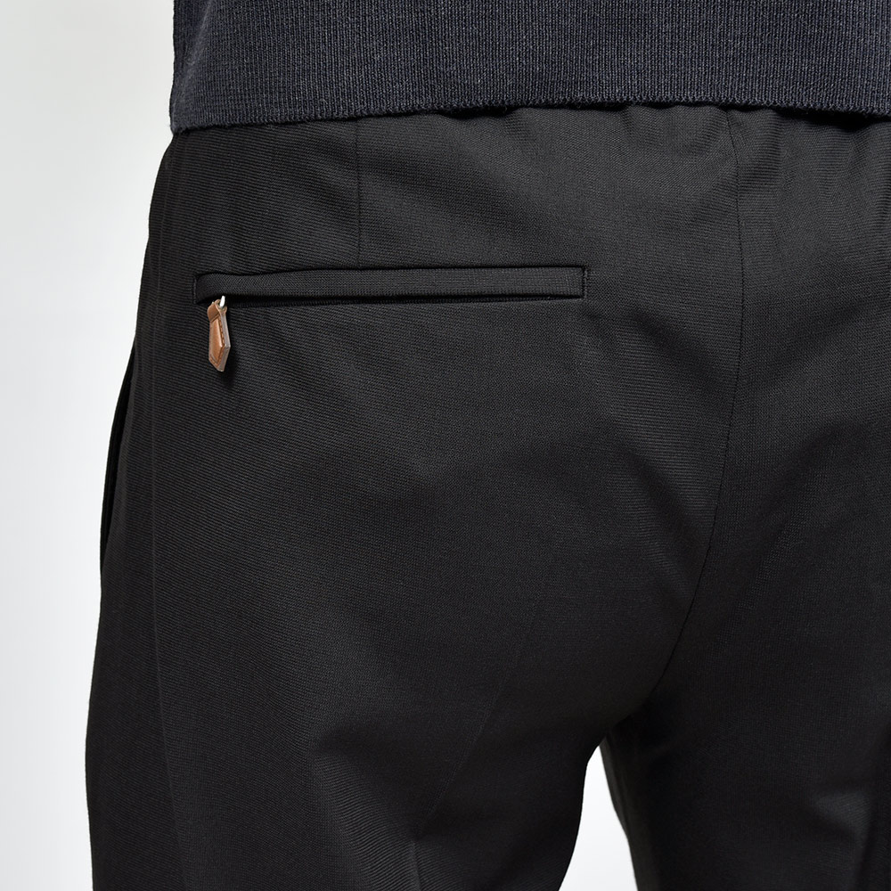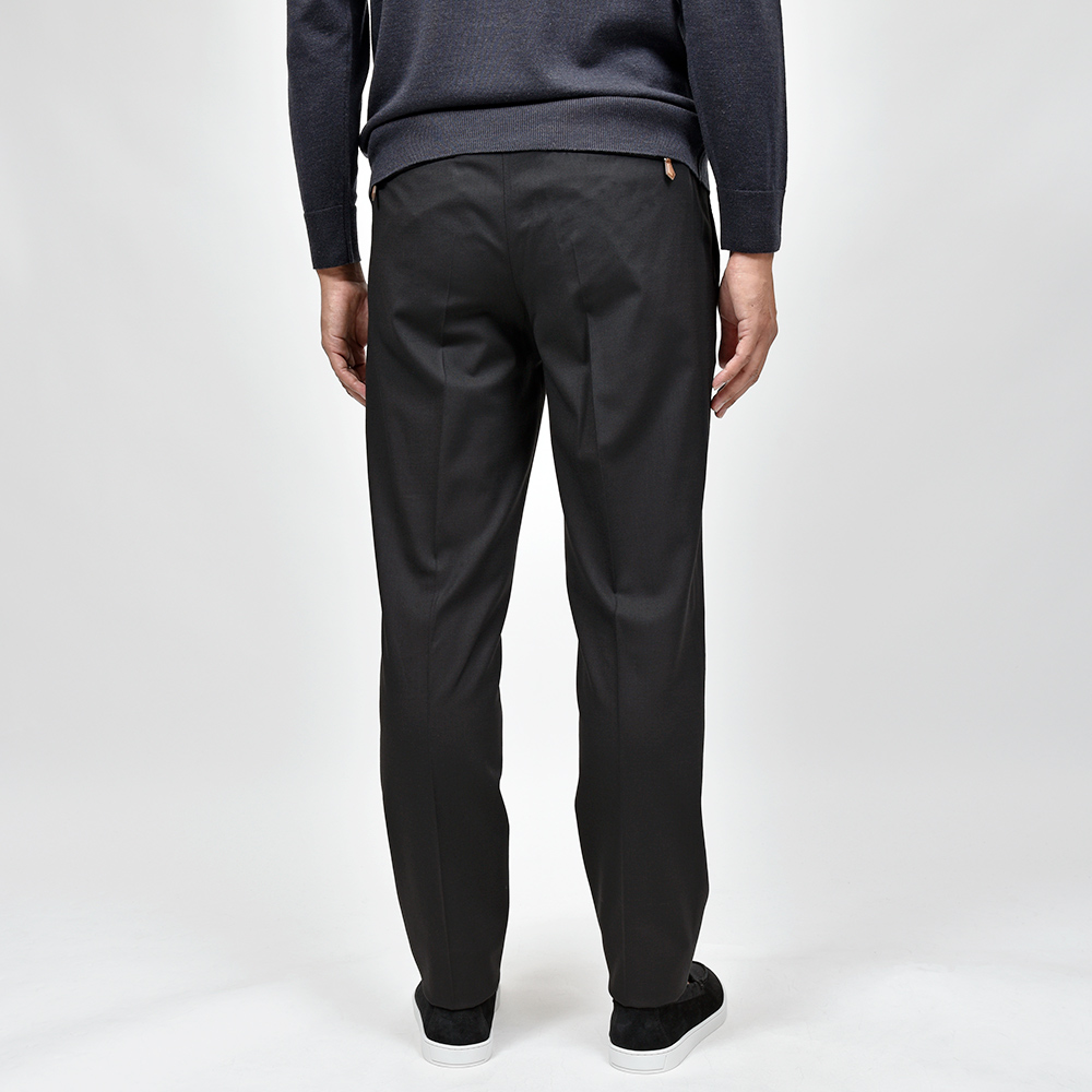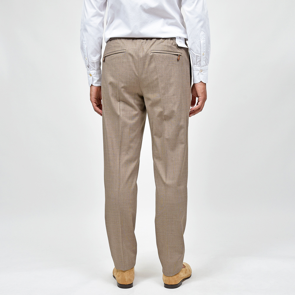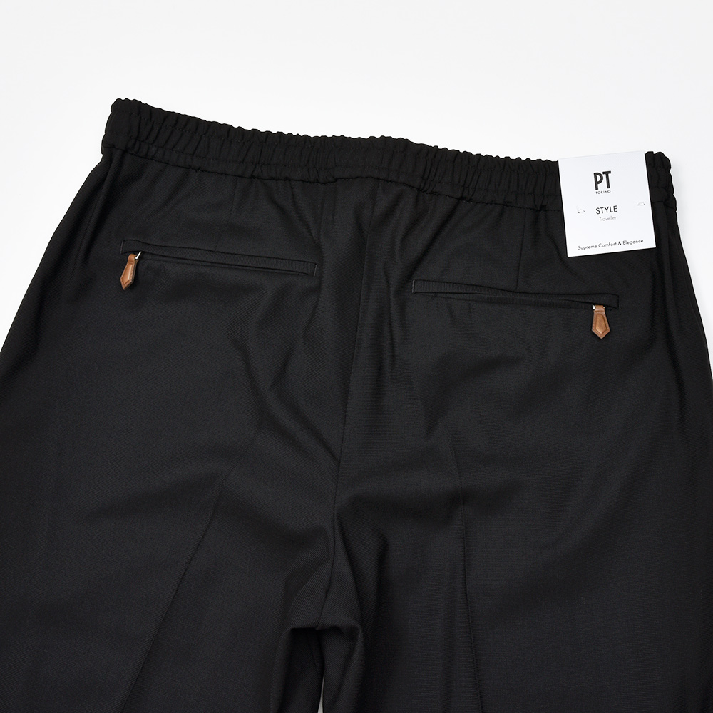 ウエスト部分がドローコード&シャーリング仕様の、程よいリラックス感あるシルエットが魅力の“SOFT FIT”。やや深めの股上に1プリーツ仕様が、程よい腰回りのゆとりを表現しています。しかしながら、テーパードを効かせることでスッキリとしたPT TORINOらしい上品なシルエット。また、バックポケットはジップ仕様となっており、レザーの持ち手が高級感をもたらせます。その為、他ではないワンランク上の雰囲気があるリラックスパンツとなっています。