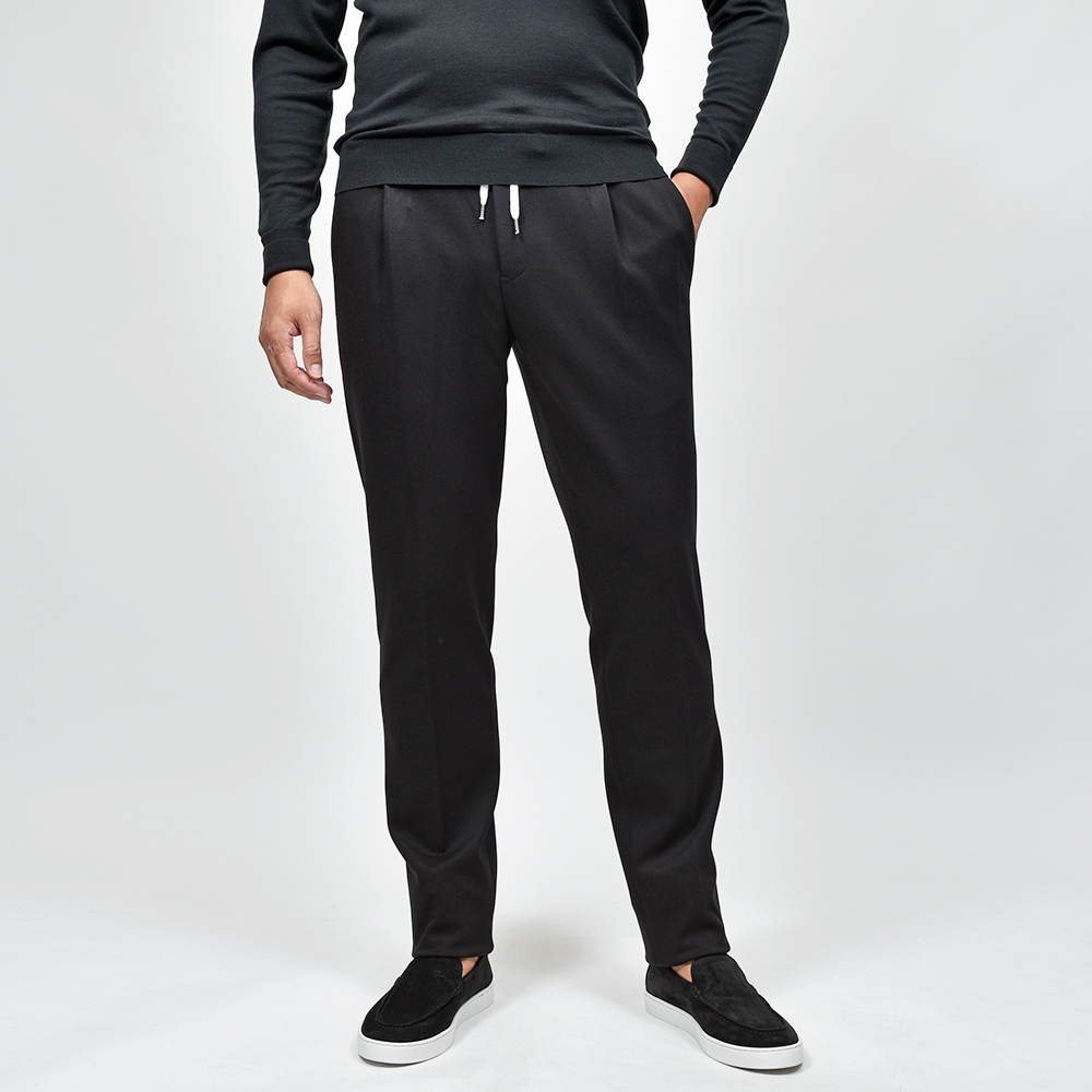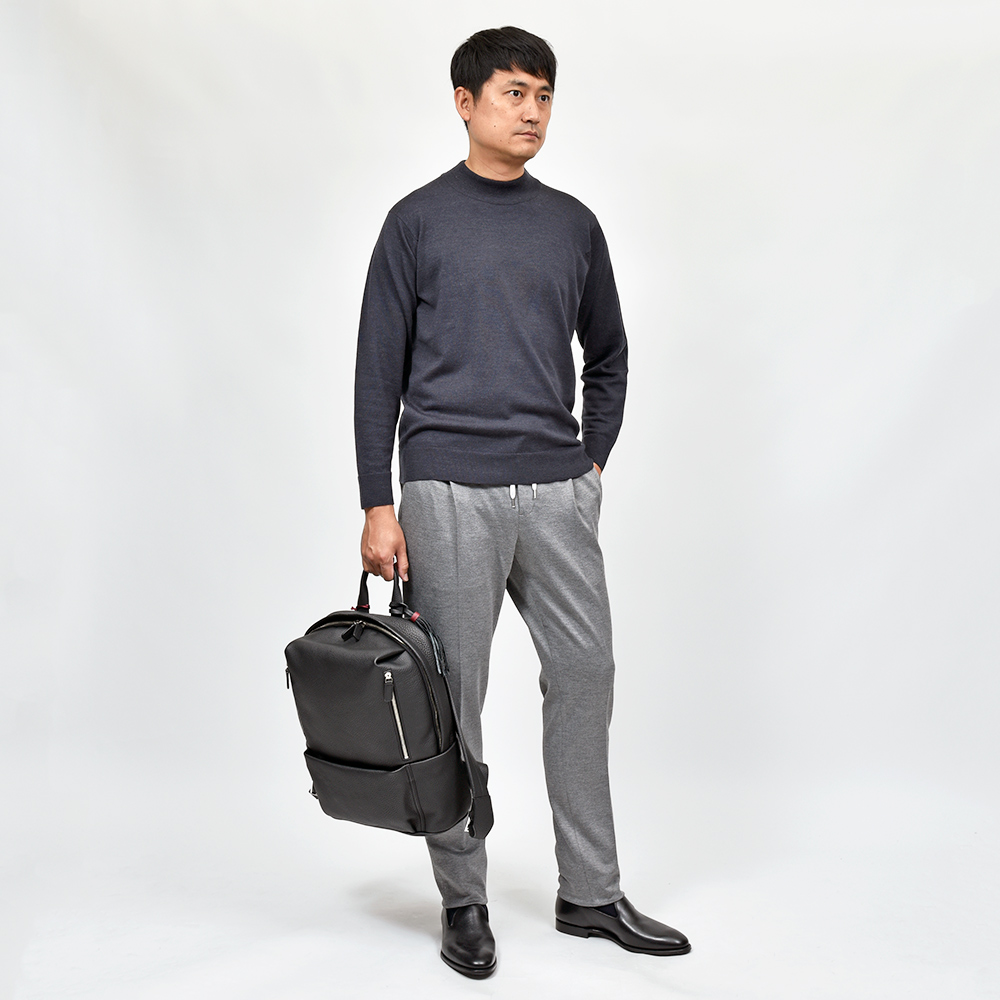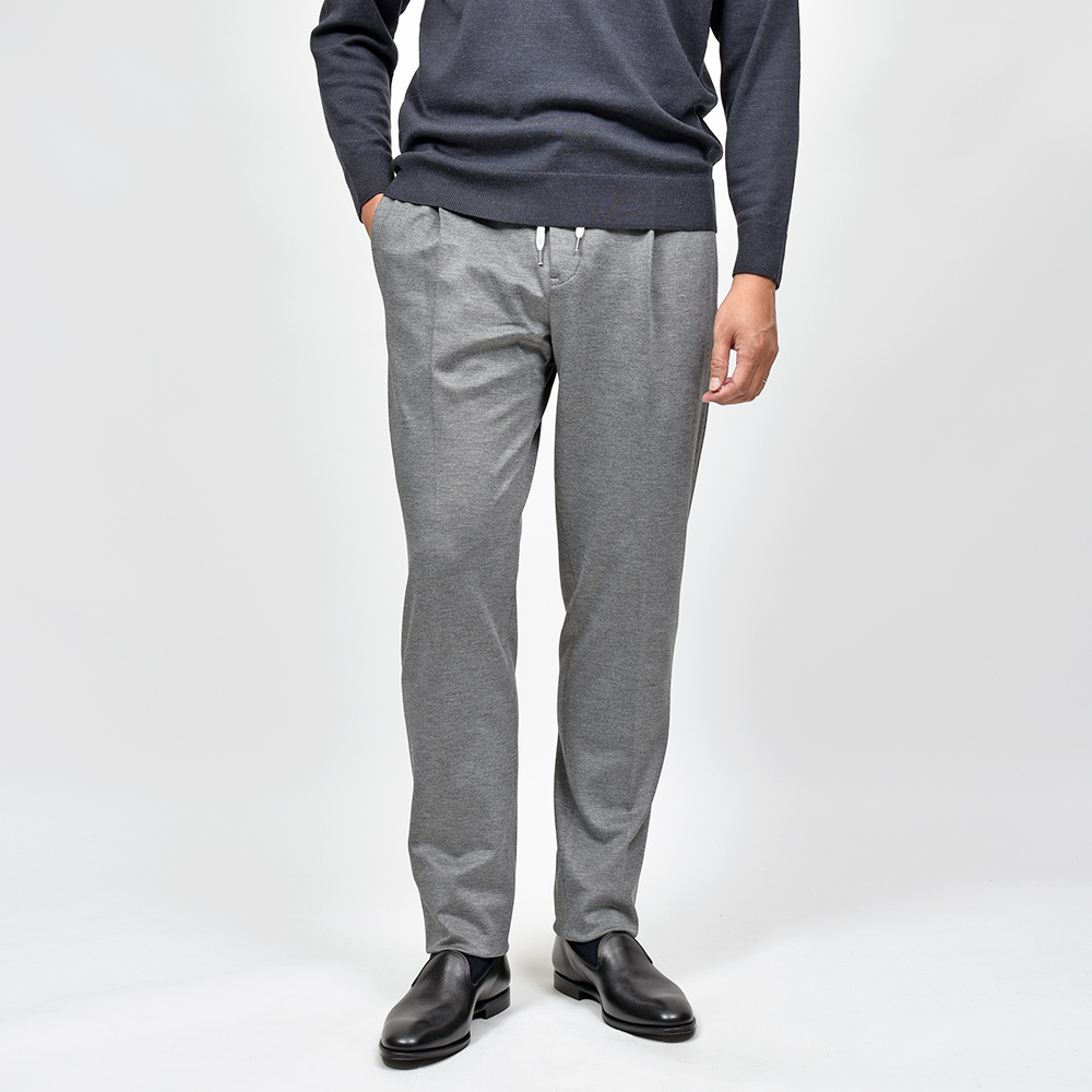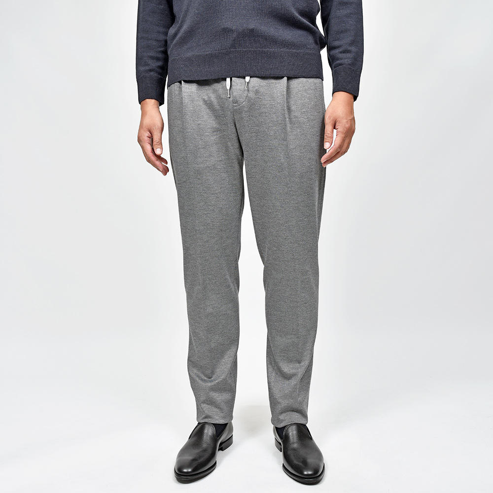 キレイめに見えるジャージーパンツは、今や様々なシーンで必要とされる新たなスタンダードと言える一本です。