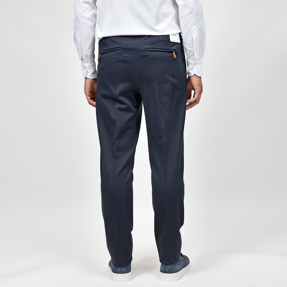 ウエスト部分がドローコード&シャーリング仕様の、程よいリラックス感あるシルエットが魅力の“SOFT FIT”。やや深めの股上に1プリーツ仕様が、程よい腰回りのゆとりを表現しています。しかしながら、テーパードを効かせることでスッキリとしたPT TORINOらしい上品なシルエット。また、バックポケットはジップ仕様となっており、レザーの持ち手が高級感をもたらせます。その為、他ではないワンランク上の雰囲気があるリラックスパンツとなっています。