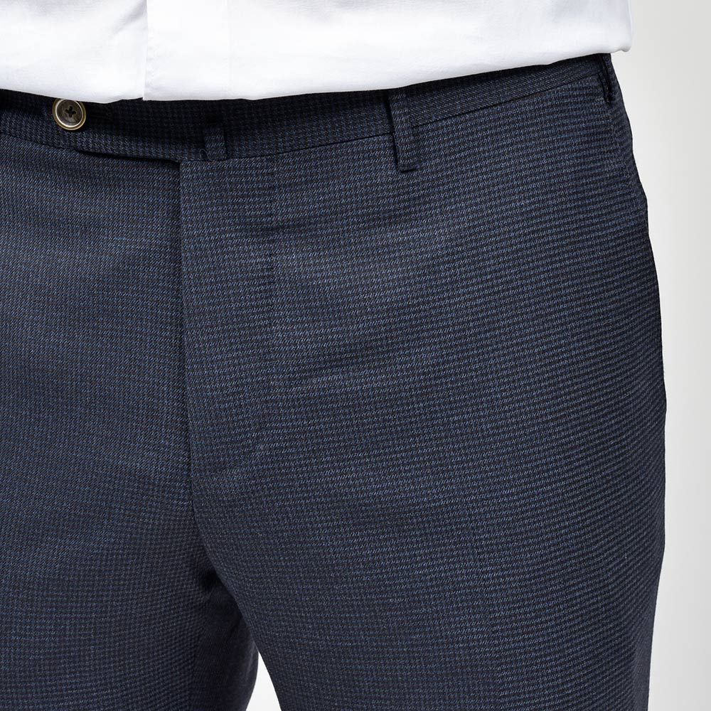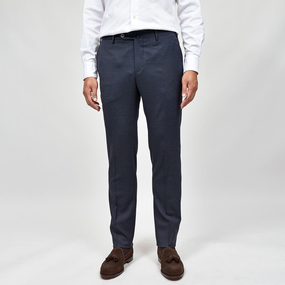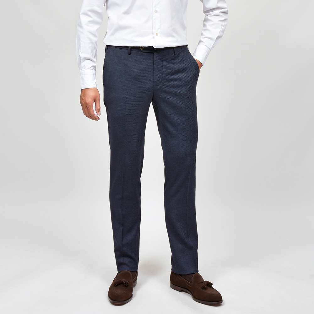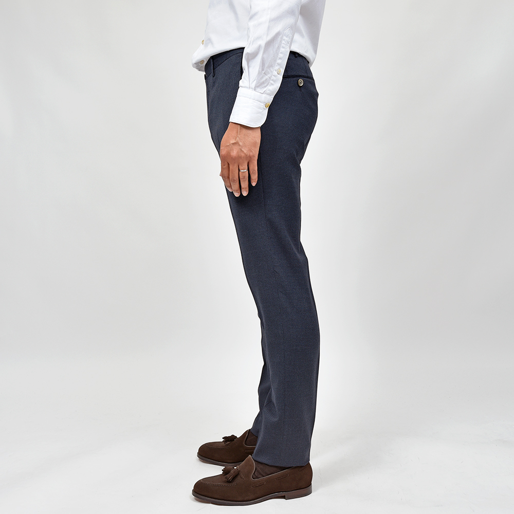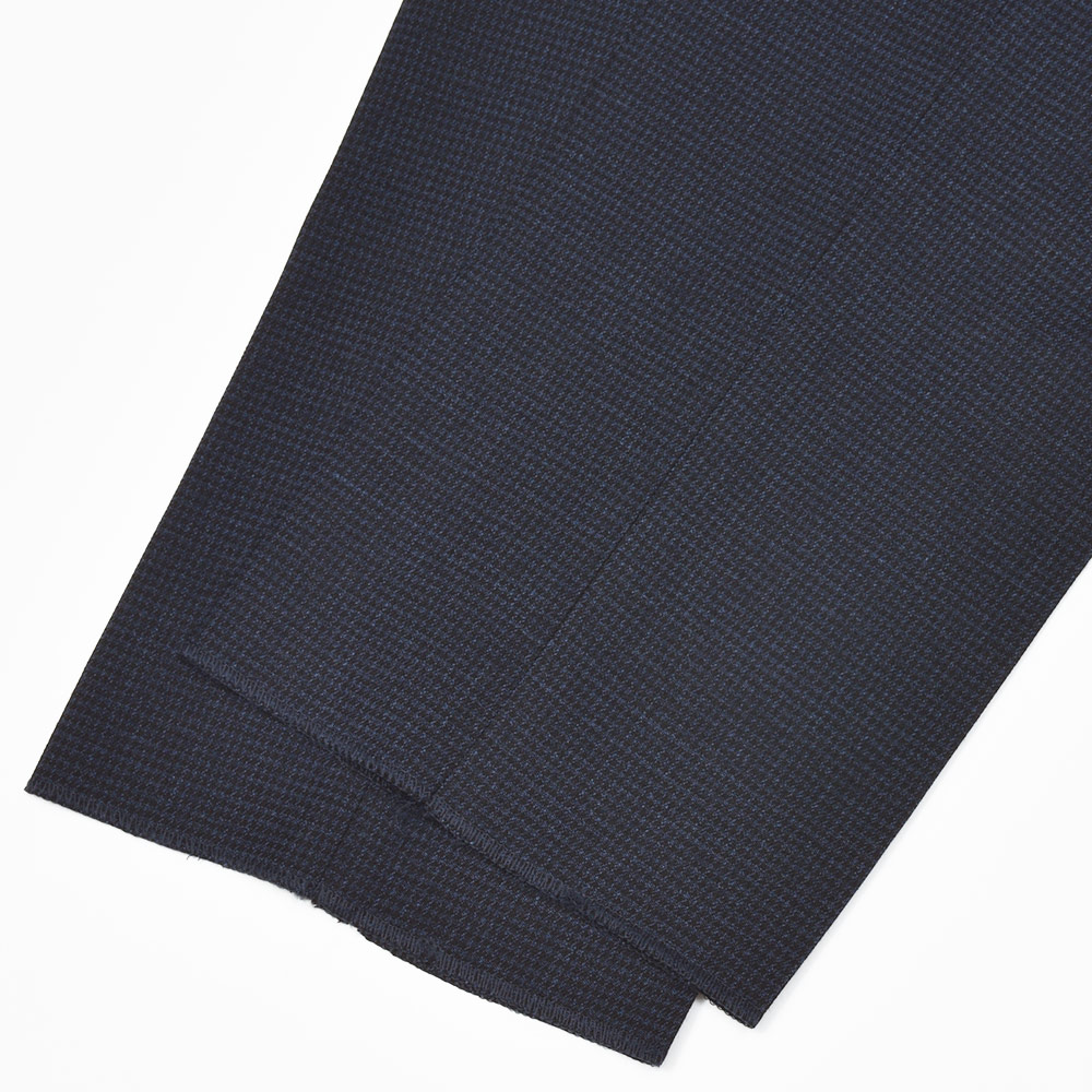 日本国内限定としてリリースされたこちらのファブリックは、目付け320gのハウンドトゥース。薄すぎず厚すぎない程よい生地に、少しストレッチが効いた穿き心地になります。あまり起毛感のない質感は、柔らかでしなやかなタッチでありながらも、高い弾力性を合わせ持つことでシワが入りずらい生地感です。そのため、車や電車・飛行機といった長時間座るシーンでもシワが気にならず、勿論デスクワークにもぴったりな一本。また、洗濯機で洗えることでデイリーユースに活躍してくれること間違いありません。