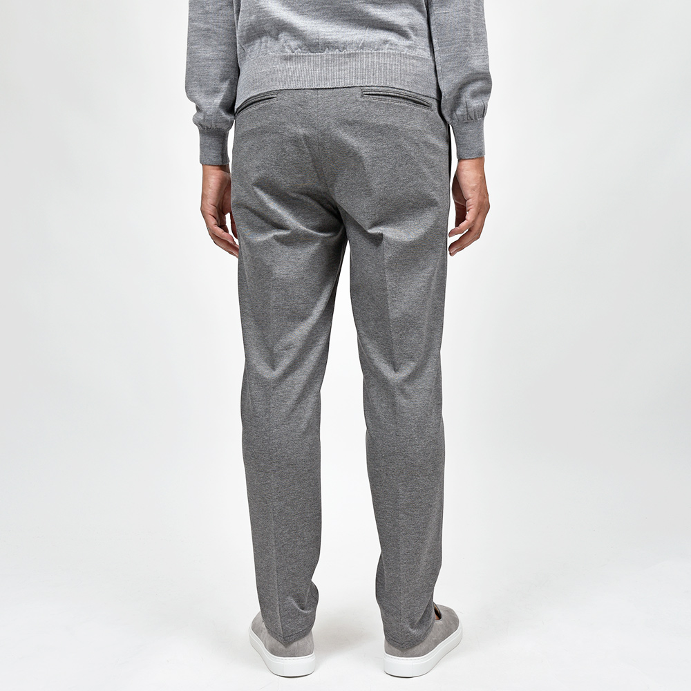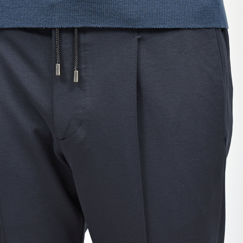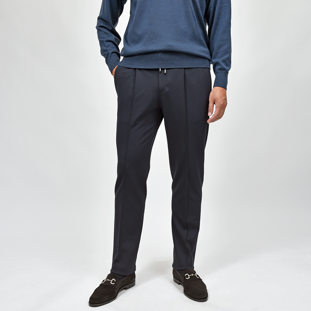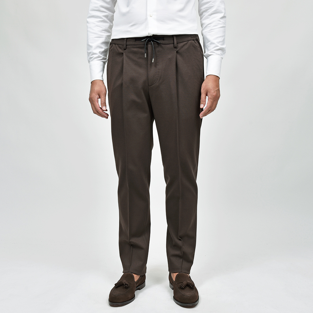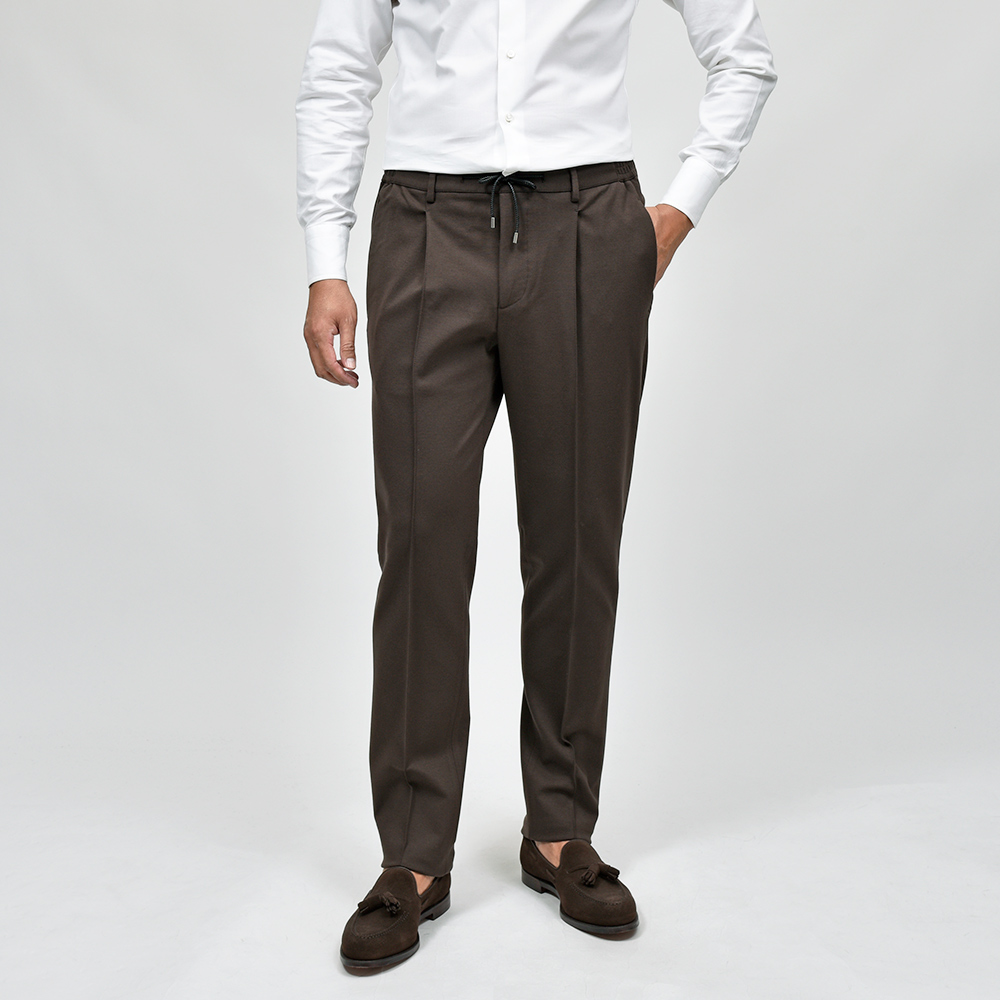 MASACCIOはフロントクリースをステッチで抑えることで、美しいラインがいつまでも続く永遠を約束された特別な一本です。ウエストのサイドにはゴムが入っており、ウエストは4cmほど伸縮してくれるリラックスした穿き心地。ドローコードは内側に隠すことができるため、ベルトを巻くとビジネスにも対応する、リラック顔にもドレス顔にも変化の効く万能なアイテムです。