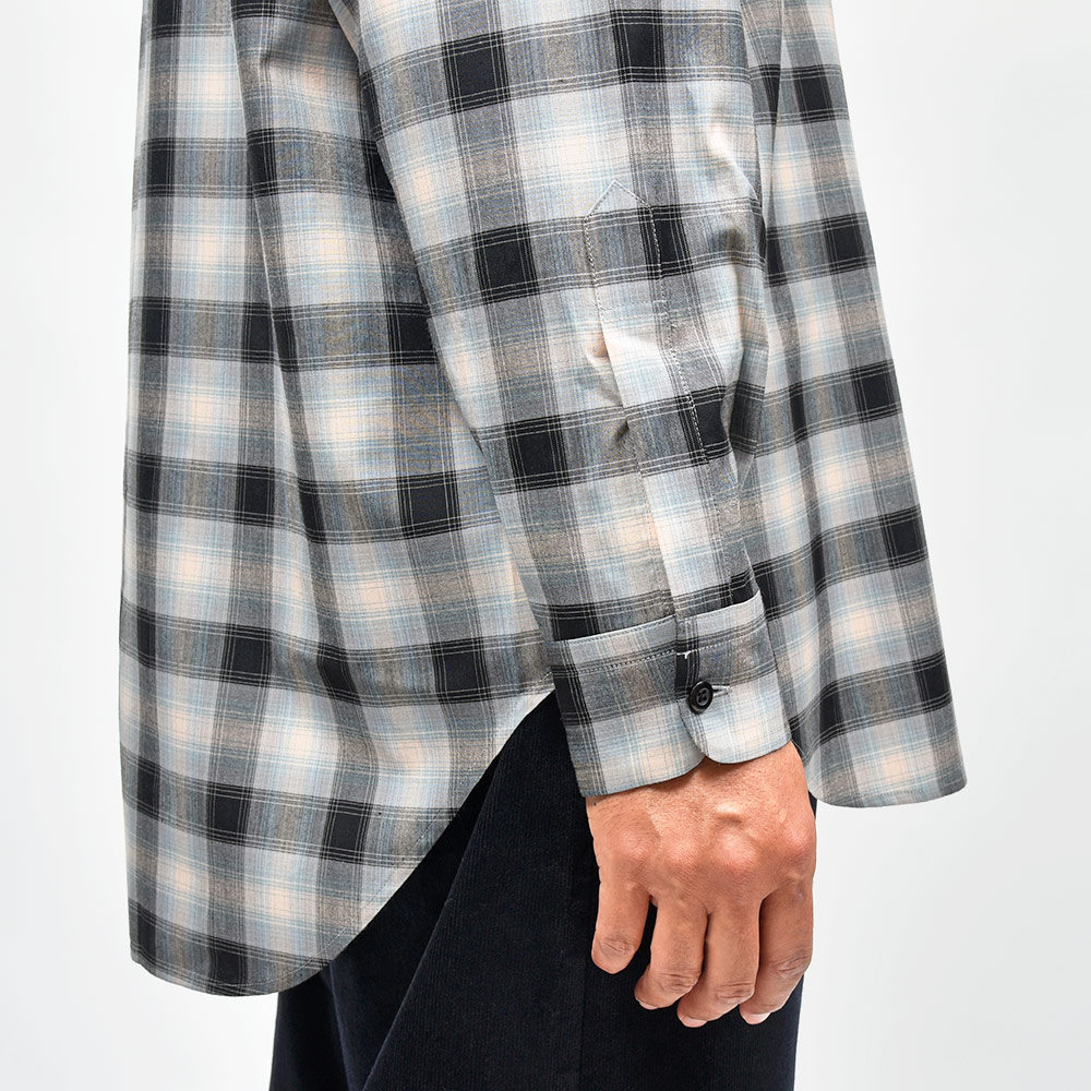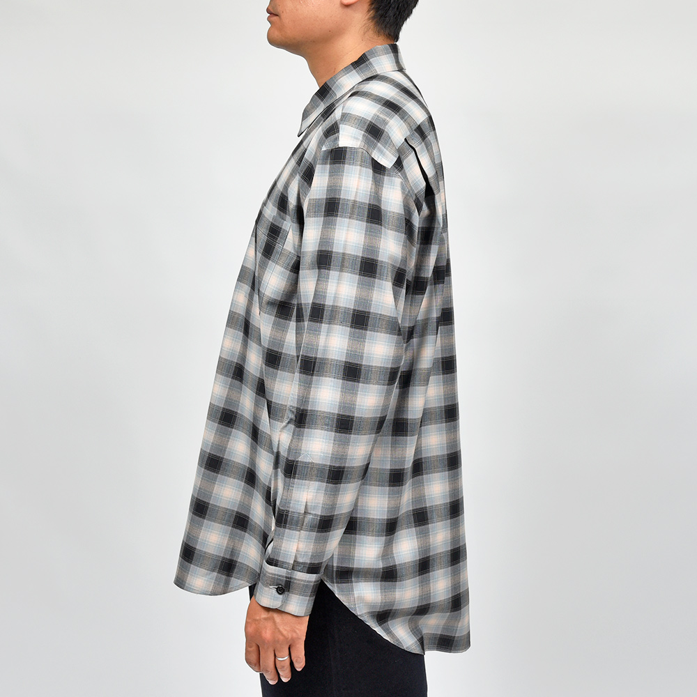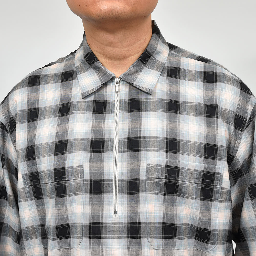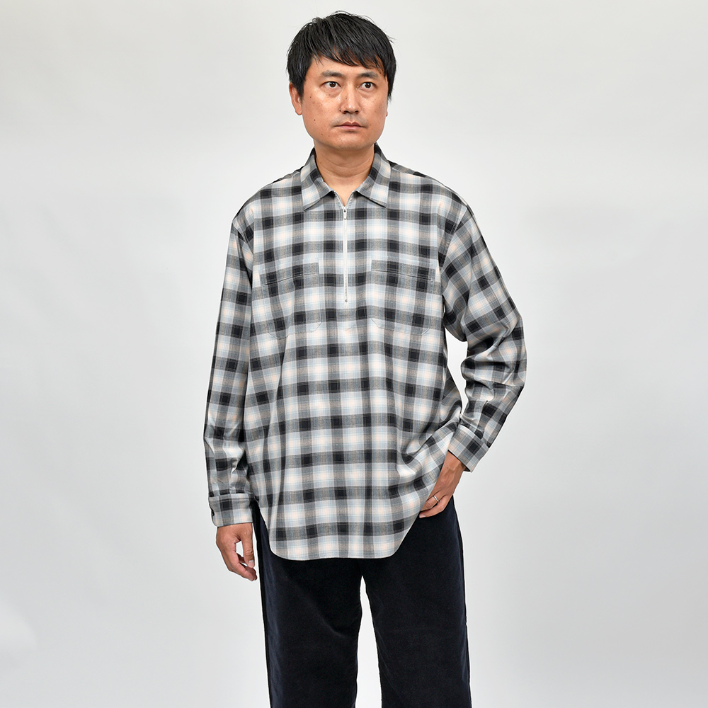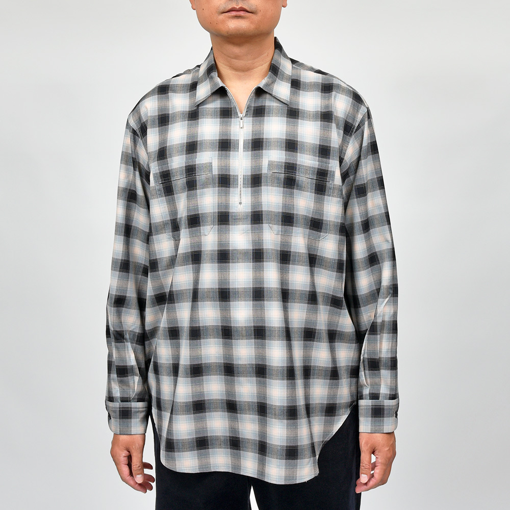 ウールレーヨン オンブレチェック ハーフジップ プルオーバーシャツ