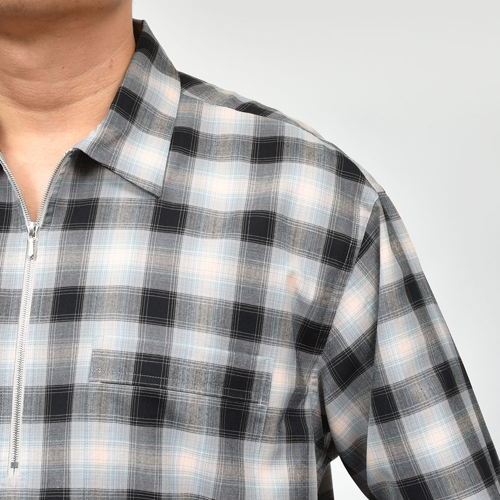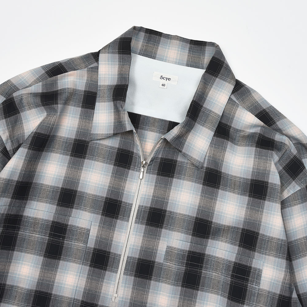 Wool×Rayon Ombre Check Half Zip Pullover Shirt