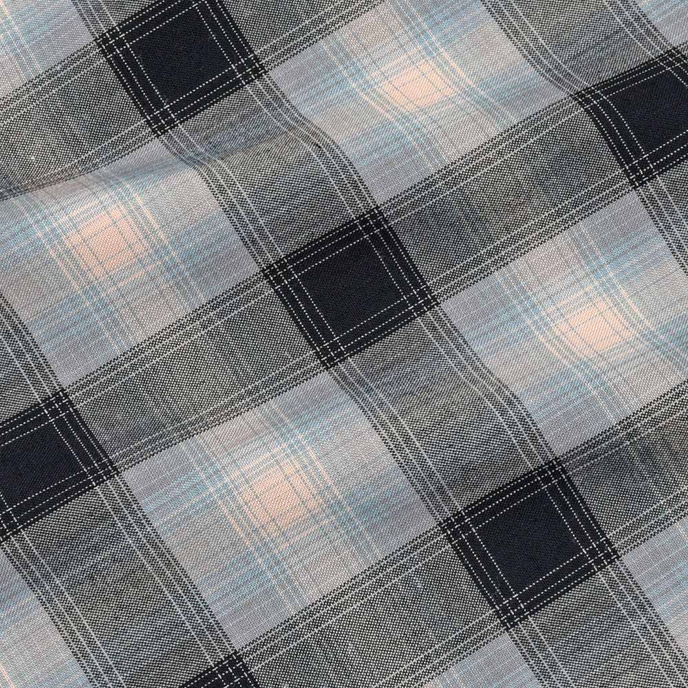 ウールとレーヨンの交織によるオリジナルの生地は、タテ糸に使用したSuper130’sウールによる柔らかく滑らかな手触りと上品な光沢が特徴です。ヨコ糸に使用したレーヨンはシルクのような柔らかさと光沢を持ち、吸湿性と通気性に優れています。ドレープ性が高く、しなやかな風合いが魅力です。オンブレチェックの伝統的なチェック柄にモダンなエッセンスを加えることで、クラシックとトレンドの両方を取り入れたデザインとなっています。