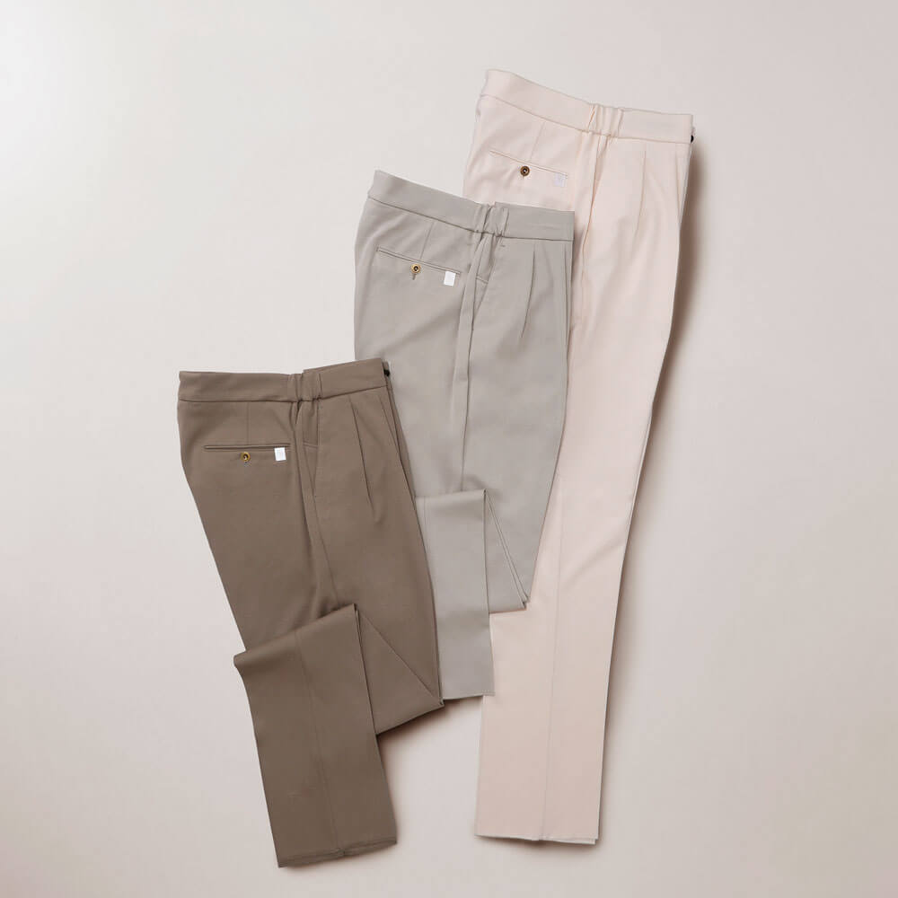 非常に希少なエジプト綿のFINX COTTONを、高密度に織り上げたコットンギャバジン。通常のコットンよりも繊維の長いFINX COTTONならではの光沢と、滑らかでしなやかなタッチが特徴です。さらにワッシャー加工を施すことで生まれる程よいシワ感が立体的な表情を加え、カジュアルかつリラックスした印象を与えてくれます。