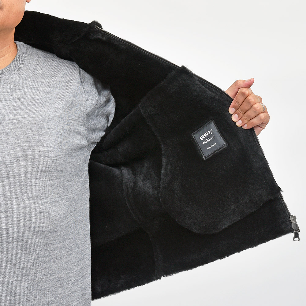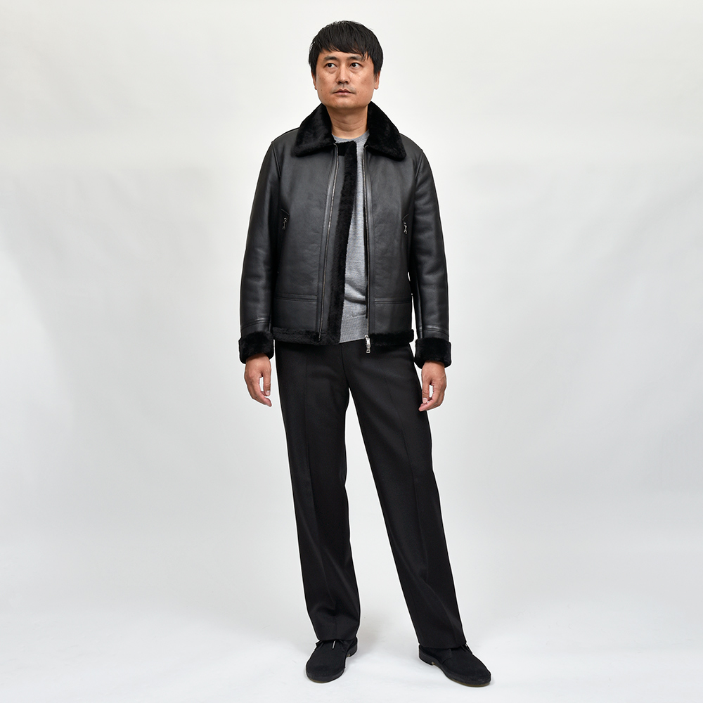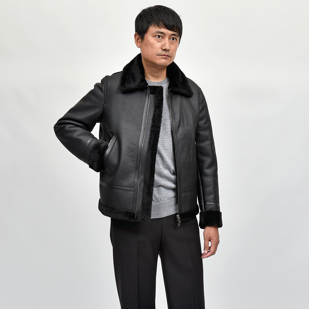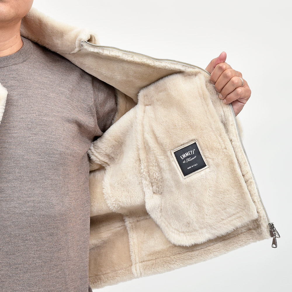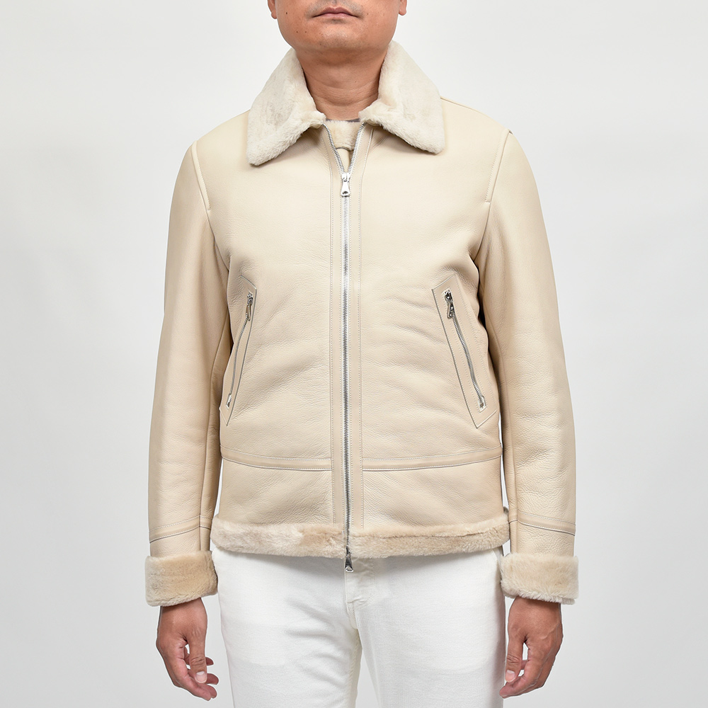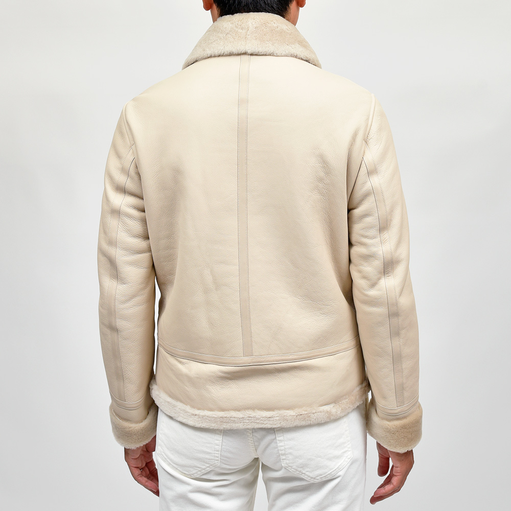 通常ラグジュアリーブランドで使用されているクオリティのレザーを、限りある着数分だけオーダーできる“SPレザー”シリーズ。こちらはEMMETI社では通常取り扱っていない、ハイグレードなムートン素材になります。柔らかくもっちりとした革の風合いに、ストレートヘアーを使用したラグジュアリーな雰囲気。さらに上質なムートン素材ですので軽く非常に着やすい重量となっています。