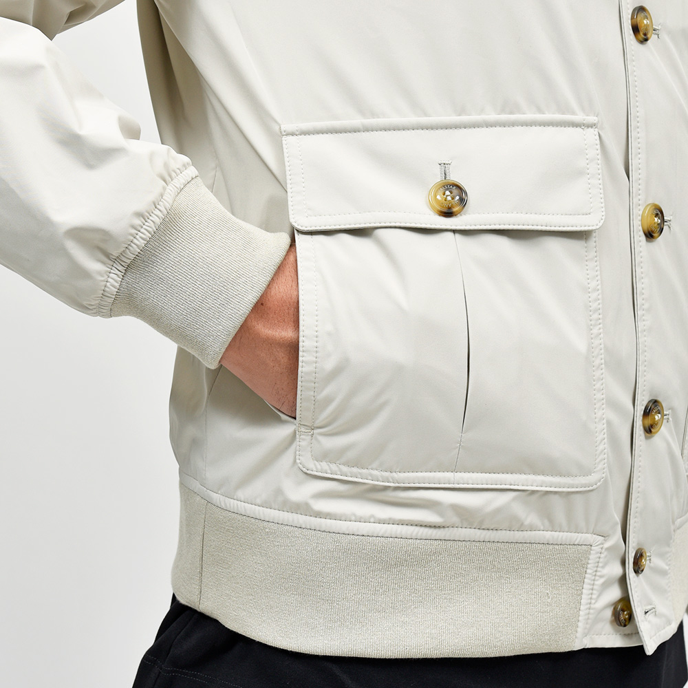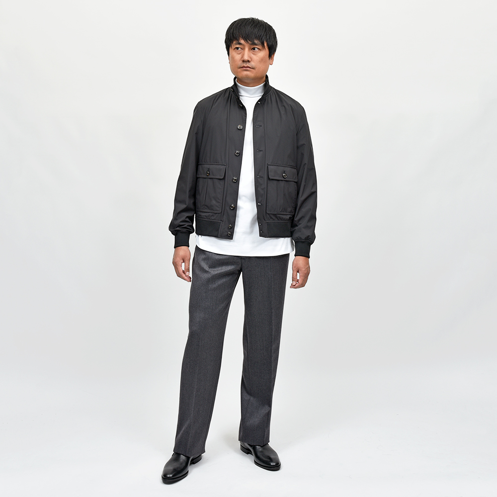 1911年創業の歴史を持つMILANOブラン“Valstar(ヴァルスター)”。アメリカ軍の夏用フライトジャケットのA1タイプに似ているこちらの『Valstarino(ヴァルスタリーノ)』は、リブブルゾンの原型と称されています。こちらは、撥水性と通気性を備えた超軽量ポリエステル素材を使用。シワにもなりにくく、リブも通常よりも薄手のものを使用していますので、右前身頃の裏地に取り付けられているポケットに折り畳んで収納することができるため、パッカブルとして非常に重宝する一品です。