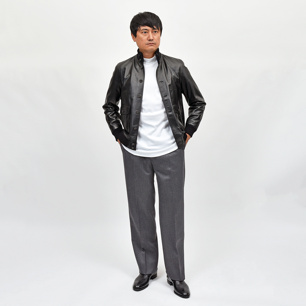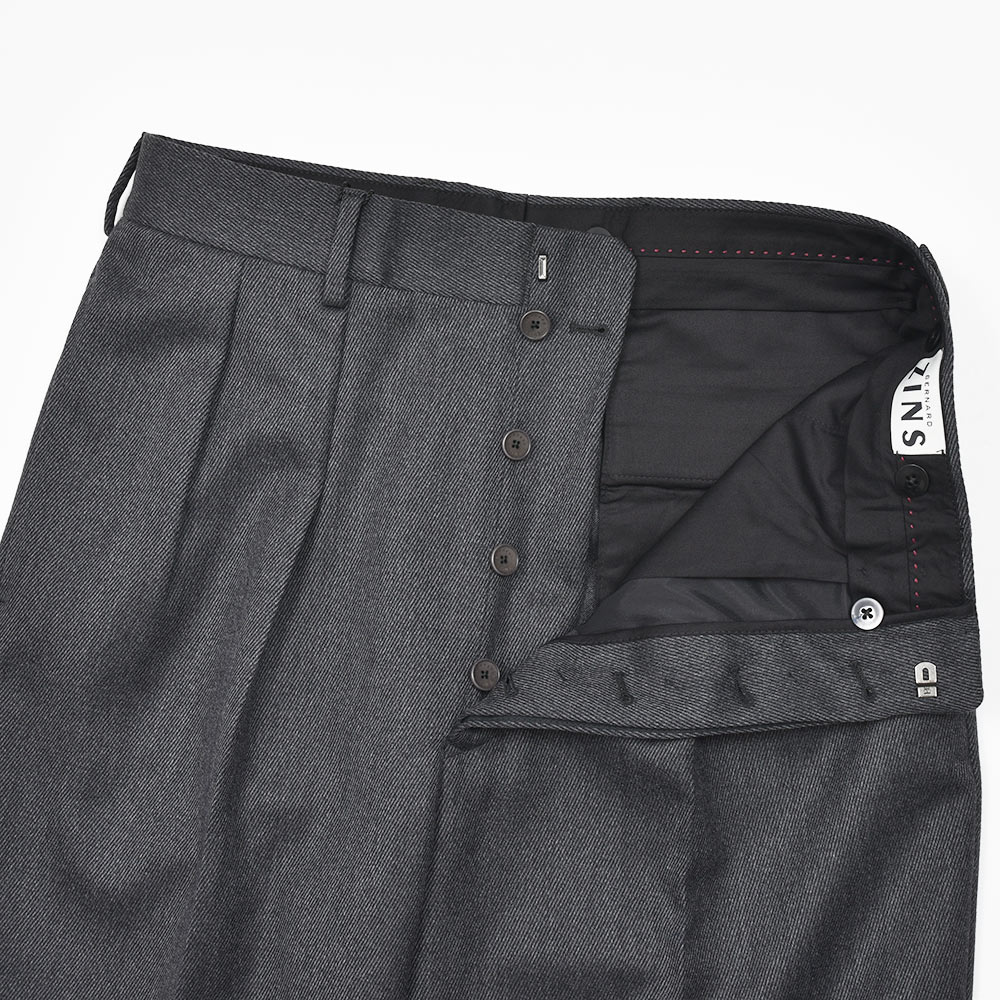モデルは1970〜80年代パリを代表するのセレクトショップの一つHEMISPHERES(エミスフェール)が、BERNARD ZINSに8番目に別注したモデルの復刻“H8(エイチ8)”。ringでは定番の“HUBERT(ユベール)”に比べ、少し股上が深く、少し裾幅が広くなり、よりシックでリラックスしたフレンチトラッドらしい風雅な雰囲気を醸し出します。