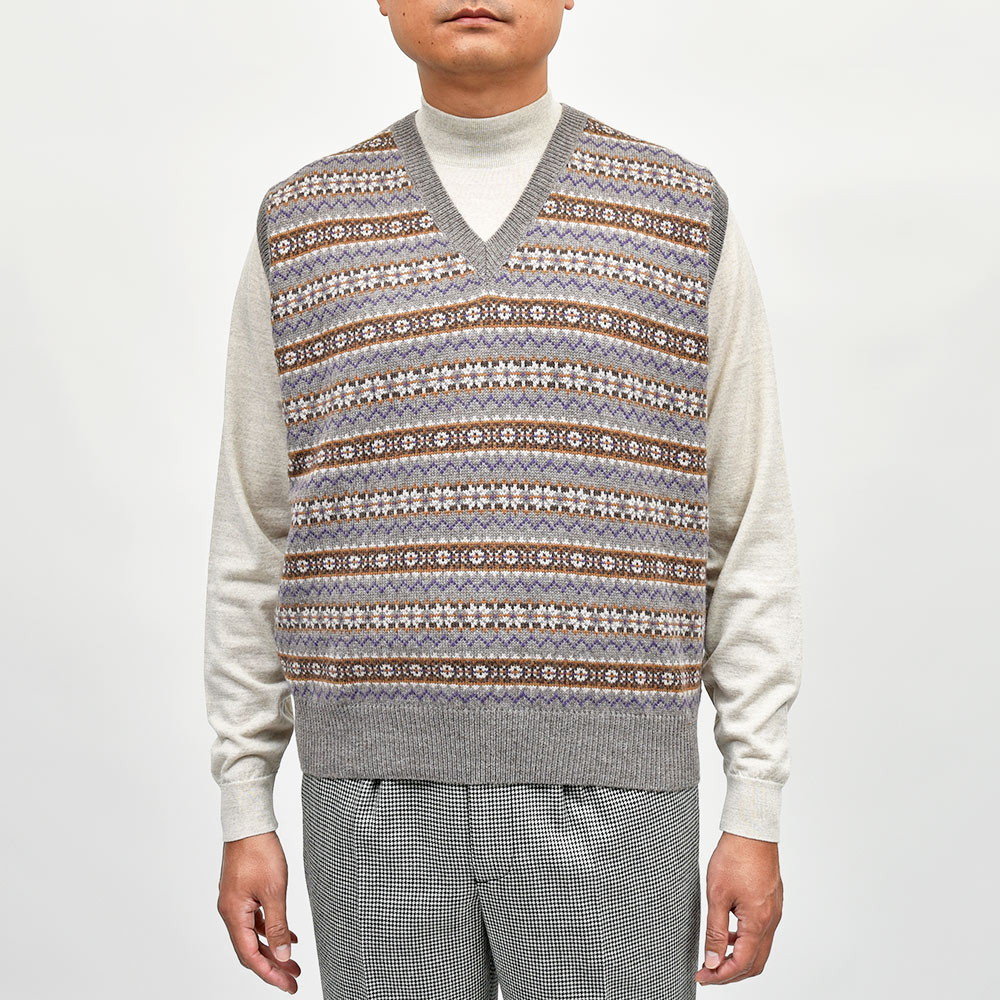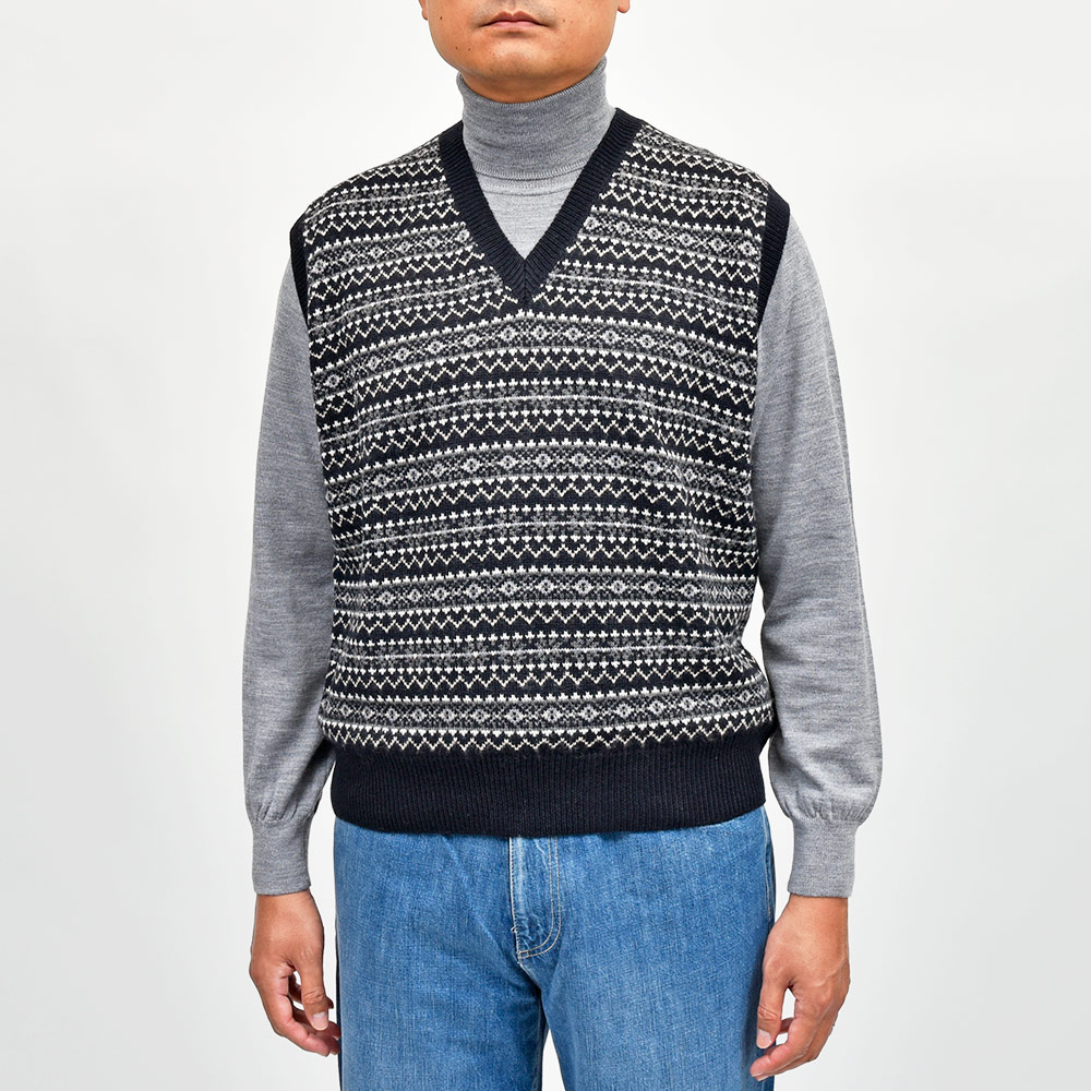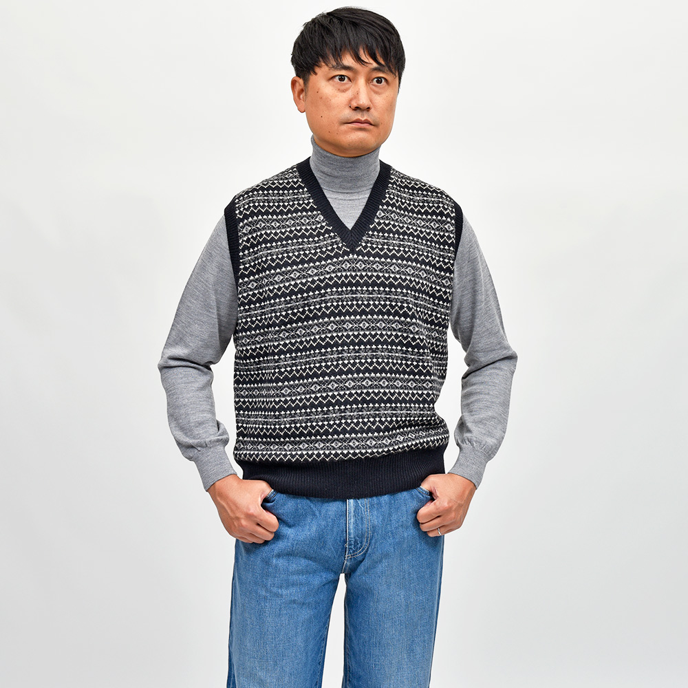 ウール フェアアイル Vネック ニットベスト