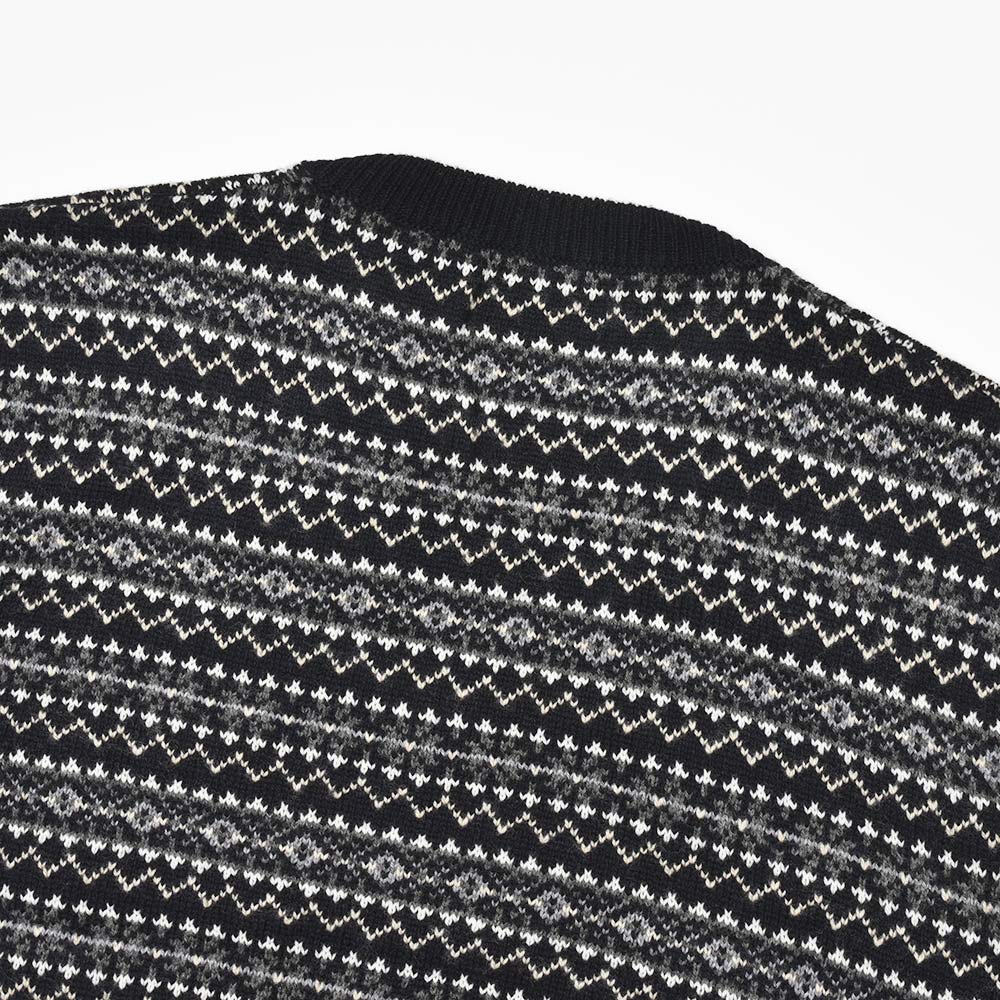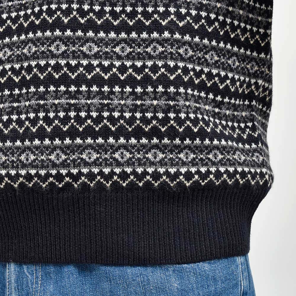 ウール素材を使用したフェアアイルニットは、ふんわりとした柔らかなタッチ。多色使いでありながらも派手になりすぎない塩梅はスタイリングに組み込みやすく、いつものスタイルにアクセントを加えてくれる一枚です。また、現代的なゆとりのあるフィッティングですので、同じようなシルエットのシャツなどとも合わせやすくなっています。