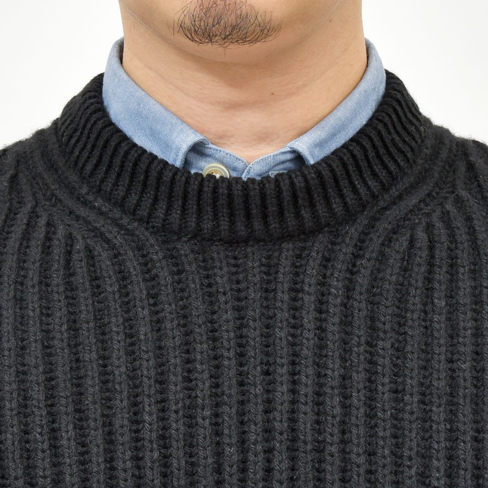 氏曰く、「クラシックなフィッシャーマンニットをベースに現代的なシルエットとディテールで再構築、伝統的な作りを活かしながら、ざっくりと着られる長袖のTシャツを作ったイメージ」とのことです。