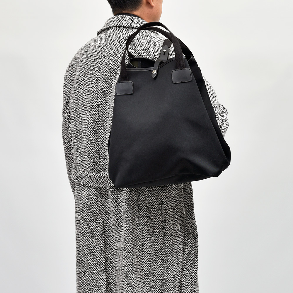 こちらのモデル“ONE SHOULDER SLING”は、トートバッグとワンショルダースリングバッグの2WAY仕様。また、内側に取り付けられているスナップボタンを留めることで、簡単にバッグのデザインを変えることができます。素材は耐久性の高いラバーボンディングコットン地と、ブライドルレザーを組み合わせたクラフトマンシップの感じられる、イギリスブランドらしい質実剛健な佇まい。カメラバッグに採用する生地ならではの防水性を備え、雨や汚れにも強く、荷物がたっぷり入るバッグは、経年変化を楽しみながら長く付き合うことのできる逸品です。