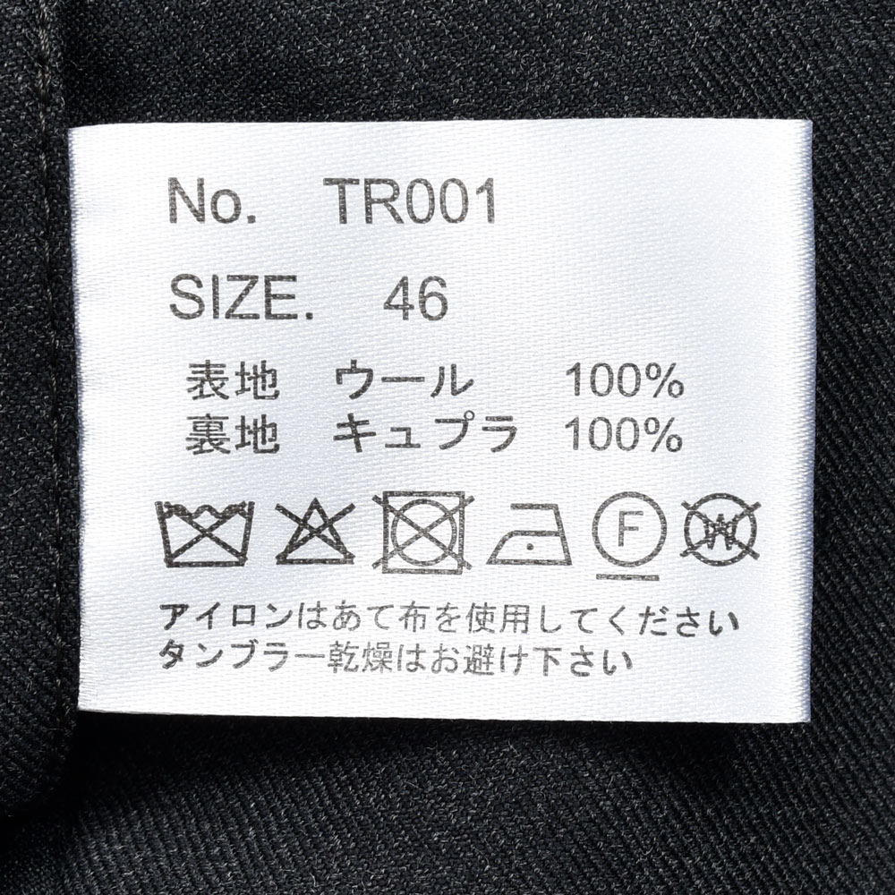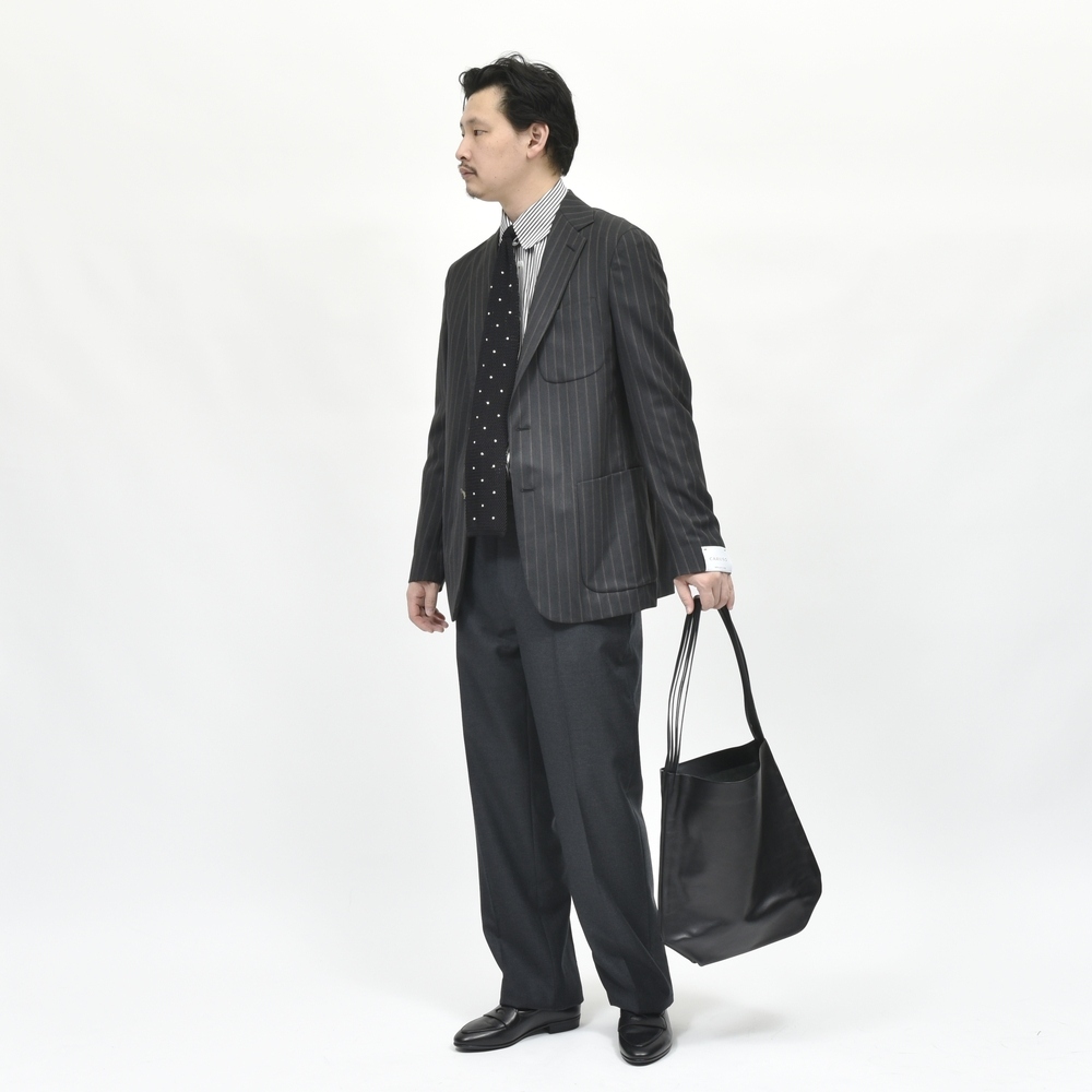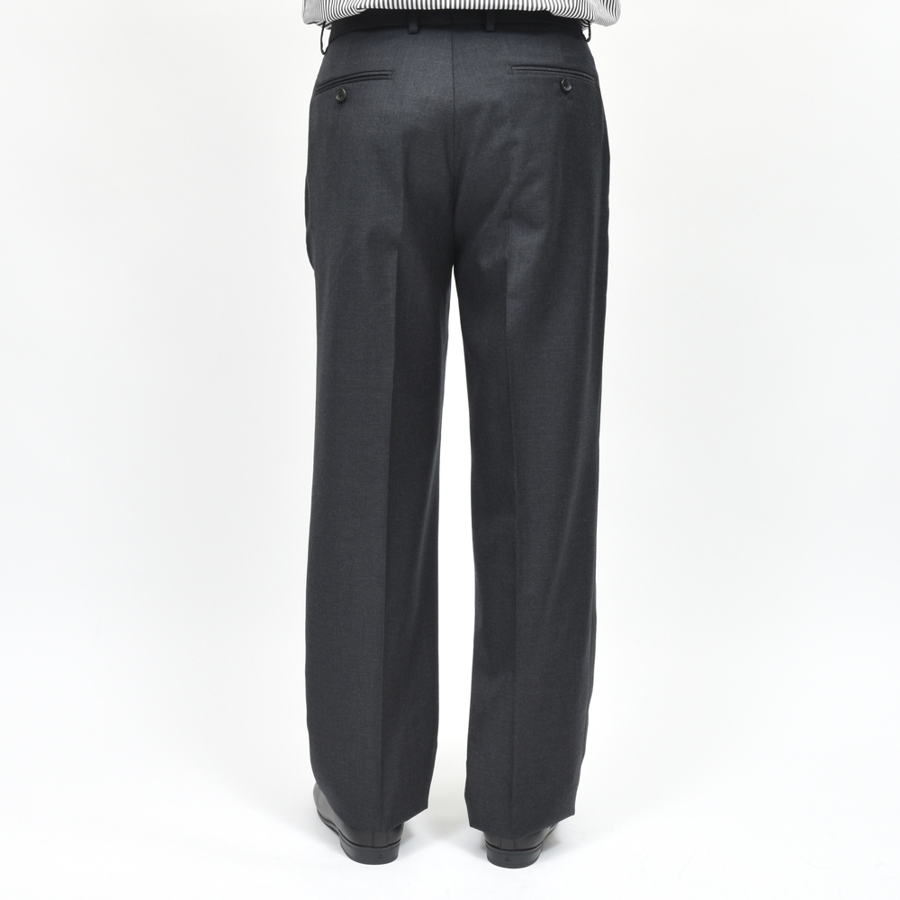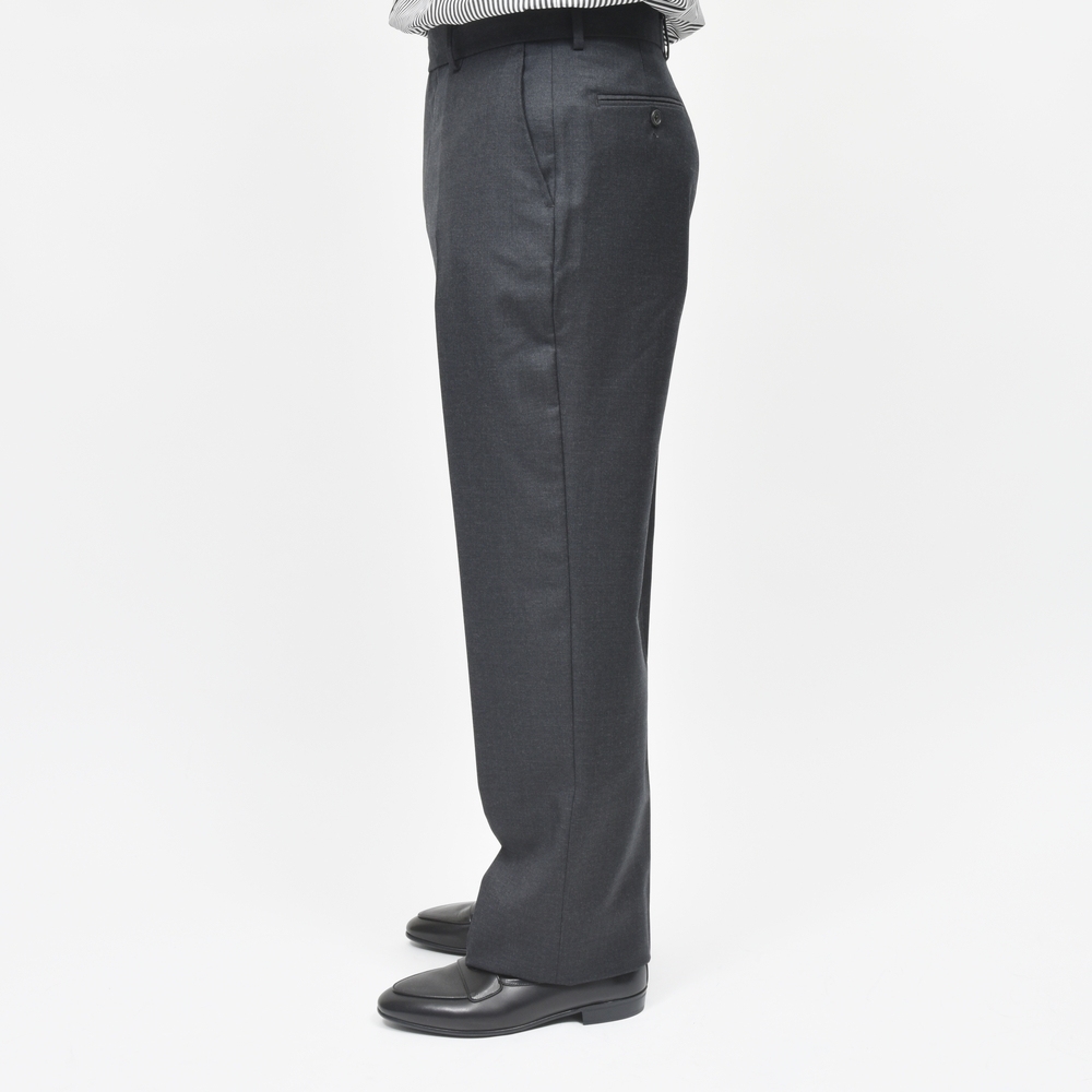 260g/mでしなやかさと耐久性、復元性のバランスに優れたファブリックなんですが、ストレートシルエットを美しく表現するためには強いドレープは必要ありませんので、適度に落ちるこのクオリティの生地が選ばれています。