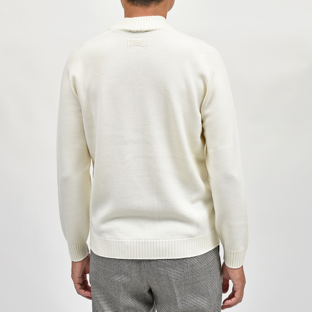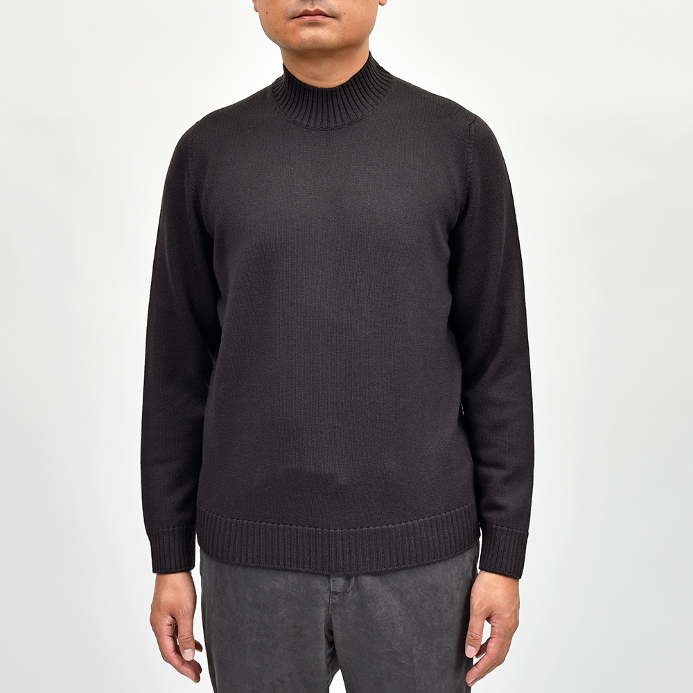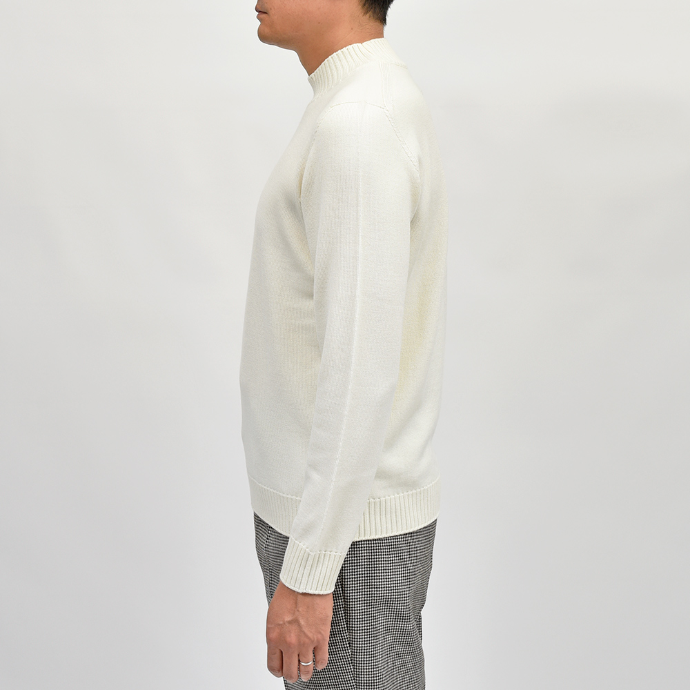Drumohrの代名詞として確固たるポジションを築いている、エクストラファインメリノウールを使用した“8ゲージ”シリーズ。ジャケットのインナーにも使用できる少しライトなミドルゲージは、言わずもがなの汎用性でココンチを代表する新たな人気アイテムとなりました。様々なアウターとも良好な関係のモックネックニットは、一枚で着ても良し、インナー使いでも良しの、この一枚があれば無類の汎用性を発揮してくれます。また、ホールガーメントで編み上げられることでストレスのない着用感とフィット感を生んでいます。
