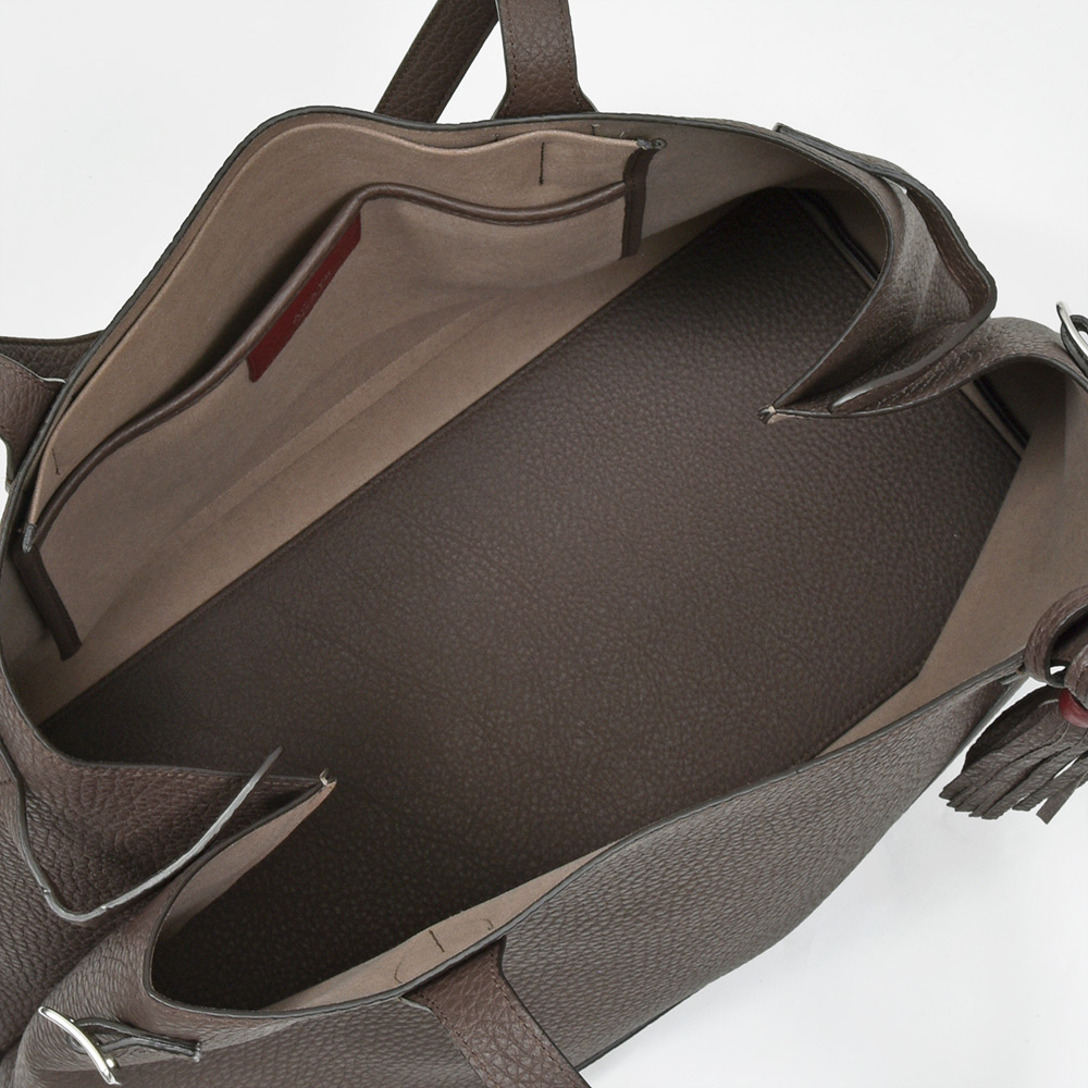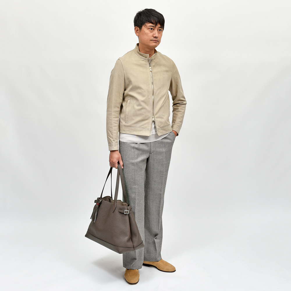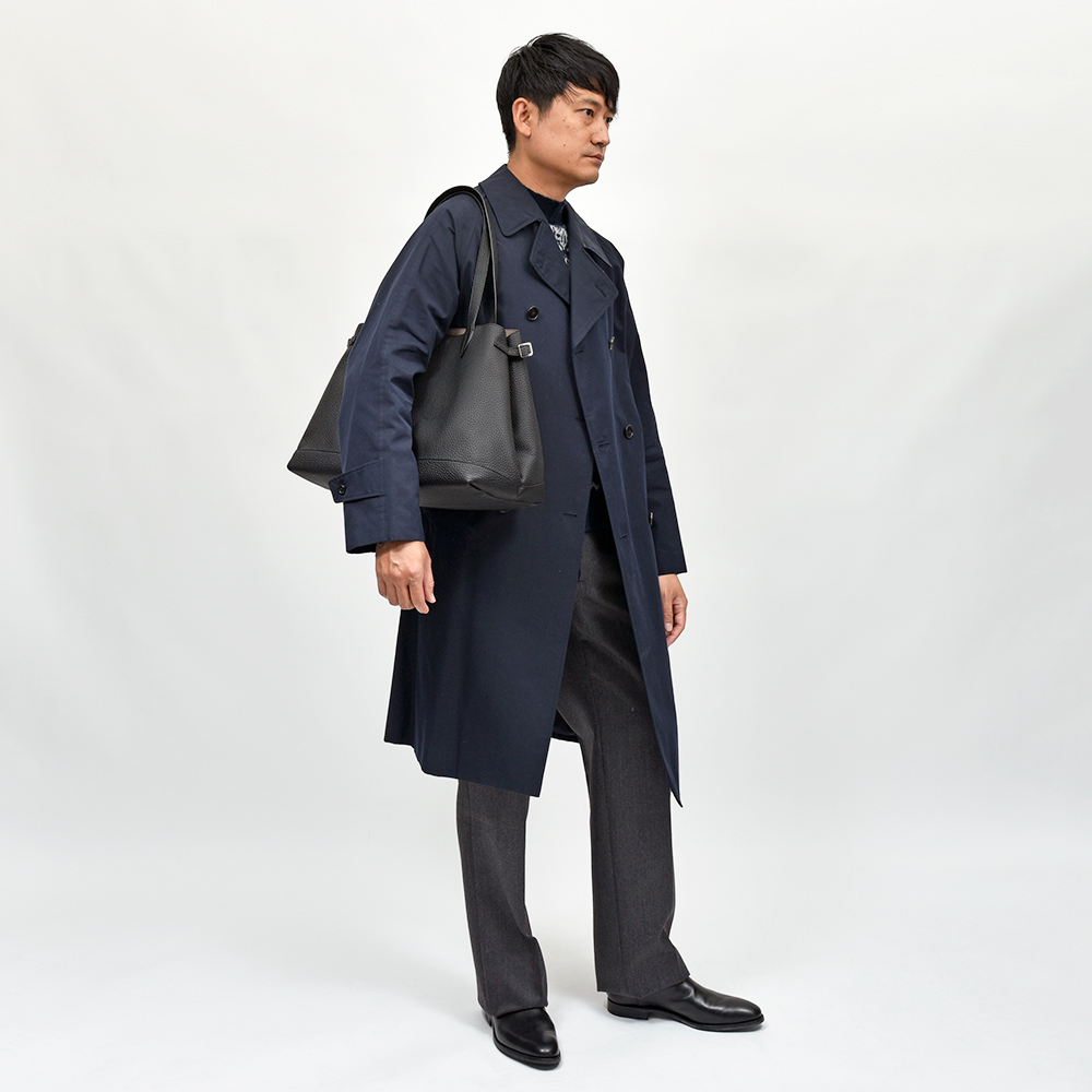 ACATEで人気の気軽に使いやすいトートバッグのモデル“LODOS(ロドス)”。デザインをマイナーチェンジしたこちらのモデル“LODOS2(ロドス2)”は、より洗練された上品な雰囲気を香らせています。芯地を使わずに、表革と裏地の人工スエードをボンディングすることで本体の軽さを生み、またしなやかさがある事でバッグ自体のフォルムと相まって柔らかな雰囲気を作り上げています。ACATE特有のナチュラルシュリンクレザーを使用した上質な質感は、大人の装いをより一層高めてくれる期待感が膨らみます。