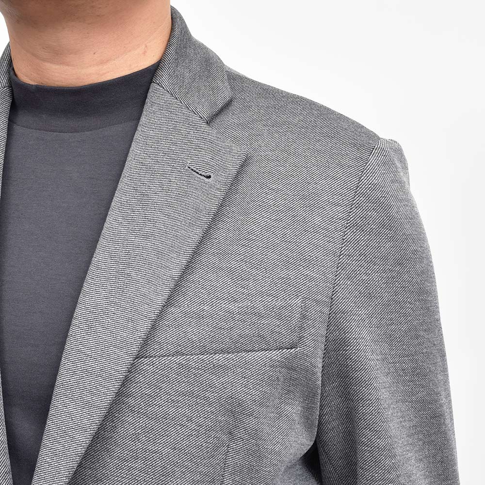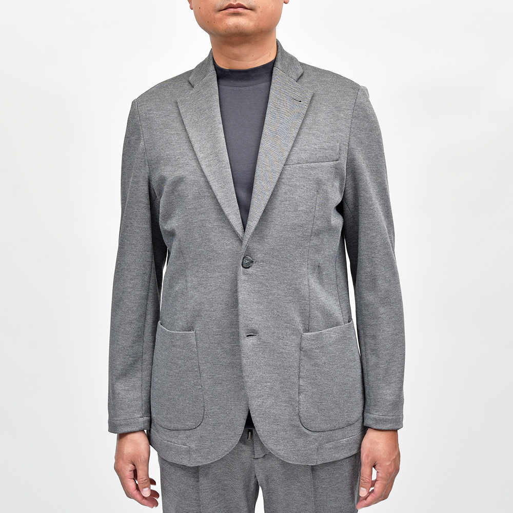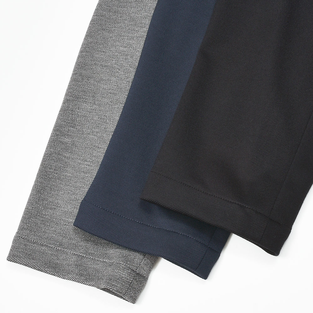 目付け520gのジャージー生地は、昨年に新登場した“カルゼジャージー”になります。ツイル織りよりも畝の感覚が広く表情が作りやすいカルゼ織りのようなジャージーは、言わずもがなのジャージーらしい着心地はそのままに、スポーティーさを抑えた見え方になります。また、自宅で水洗いできるため、デイリーユースには打って付けの機能を兼ね備えています。