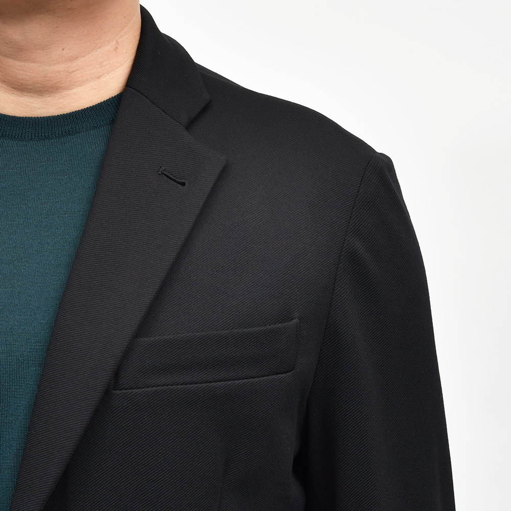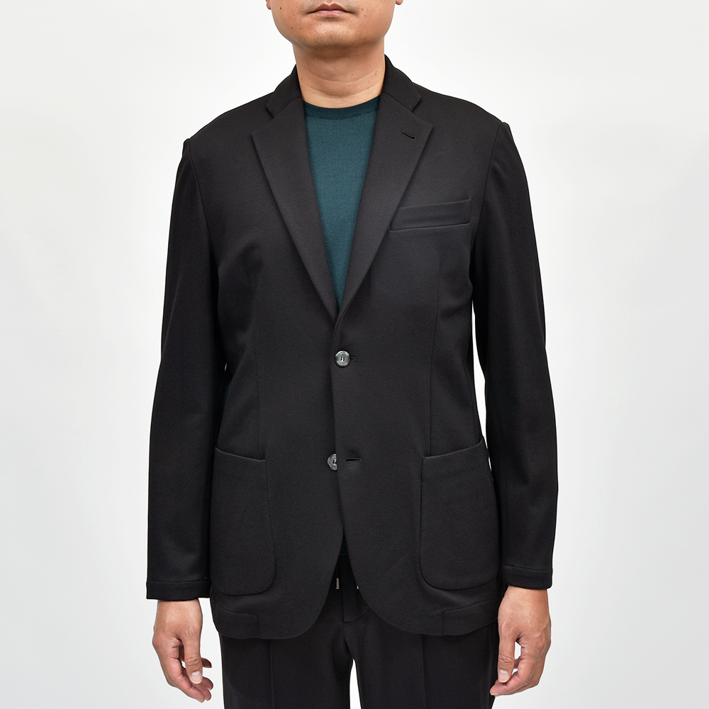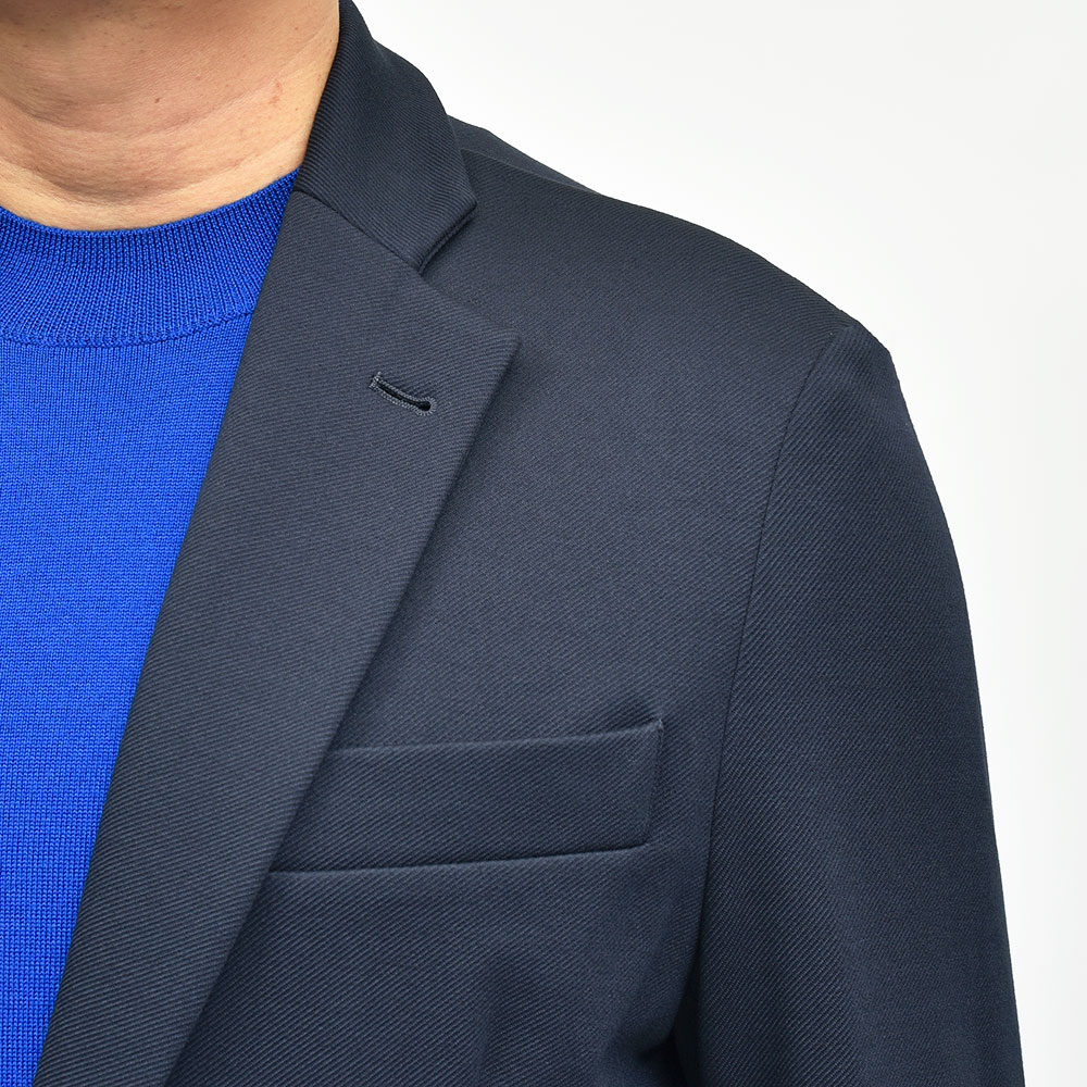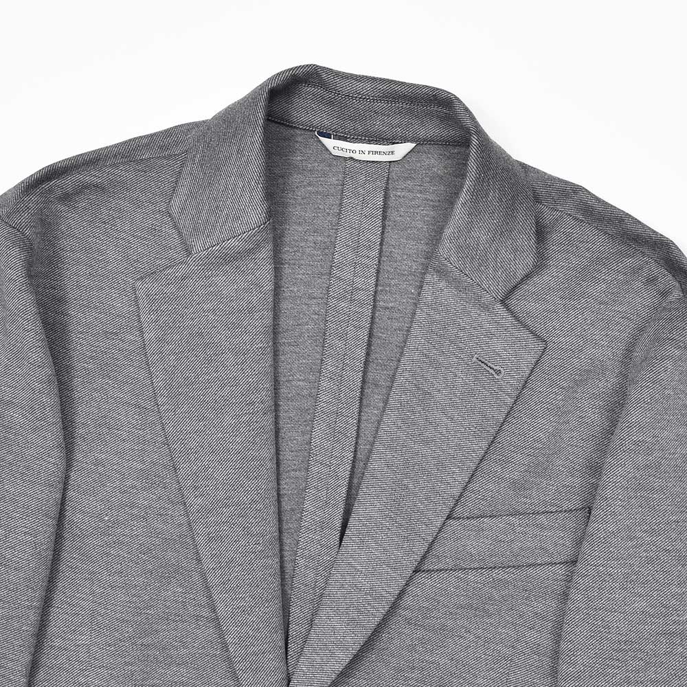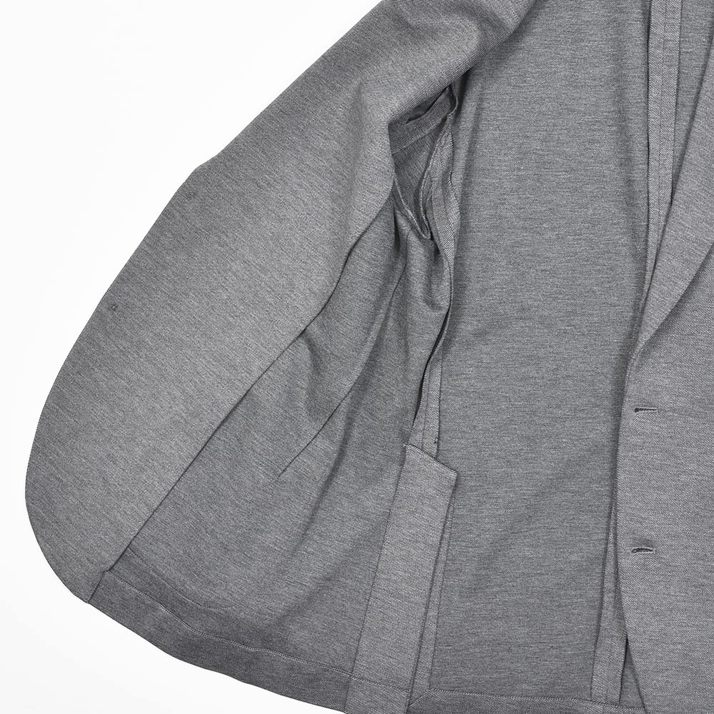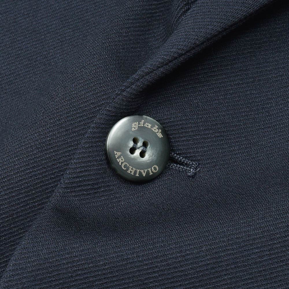 giabsarchivioのジャケットラインのモデル“STROZZI(ストロッツィ)”。イージーなパンツを得意とするブランドですので、ドレスライクなジャケットではなく、アンコンで裏地もない筒袖仕上げで、あくまでも気軽に羽織れる仕上がりとなっています。しかしながら、現代の実情を見ているとこのくらいのジャケットで十分というシーンはよくある事ですので、デザイナーの中新井氏らしい痒い所に手が届く一品です。