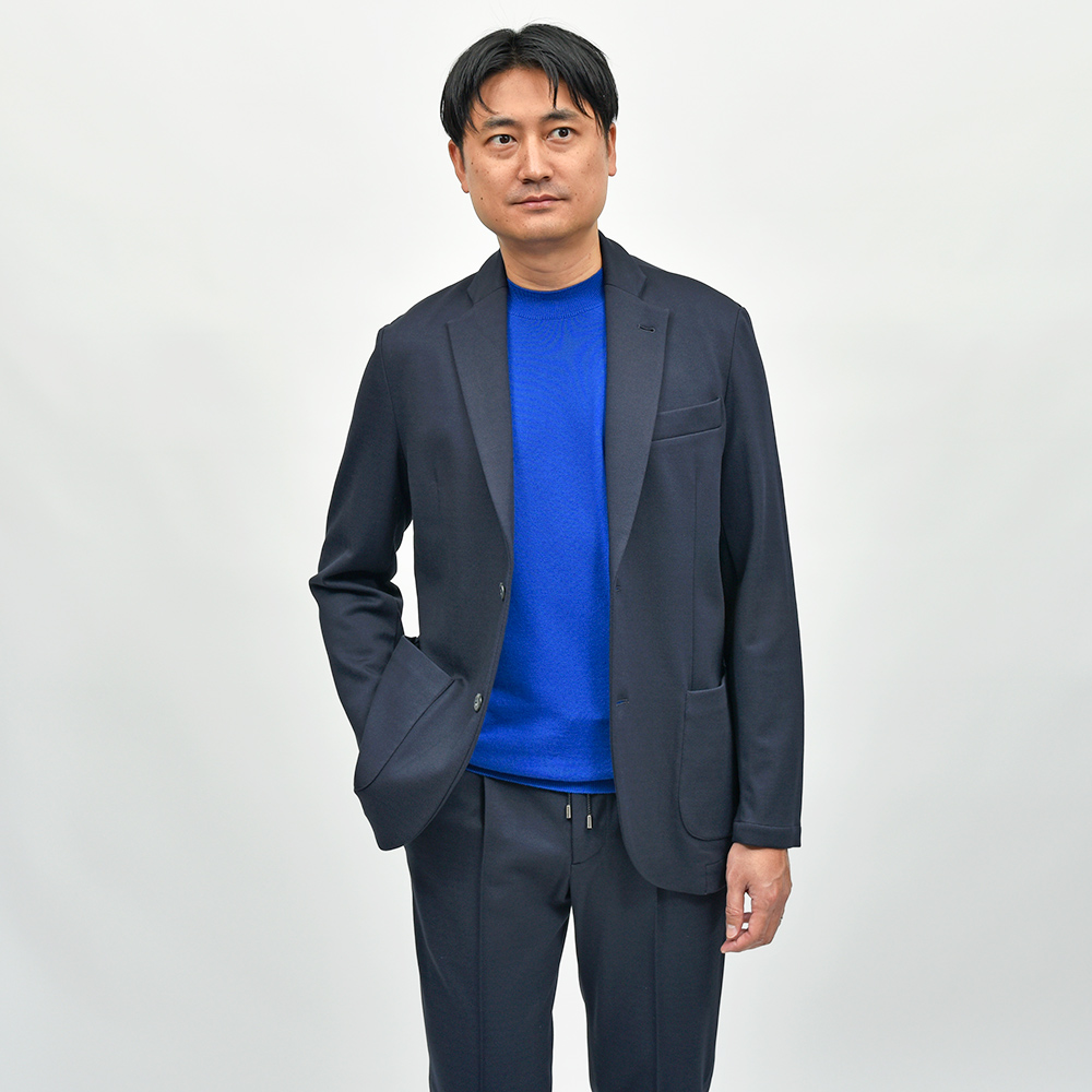 サイズ50でインナーにカットソーを着て、肩幅・身幅共に程よくゆとりのあるややリラックスしたサイズ感です。スッキリとスリムな印象で着るならサイズ48でも問題ありません。個人的にはドローコードパンツとも相性の良いサイズ50が好みです!