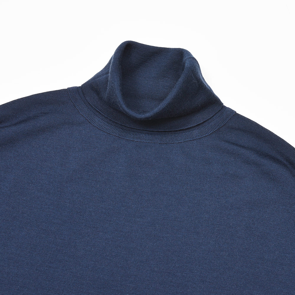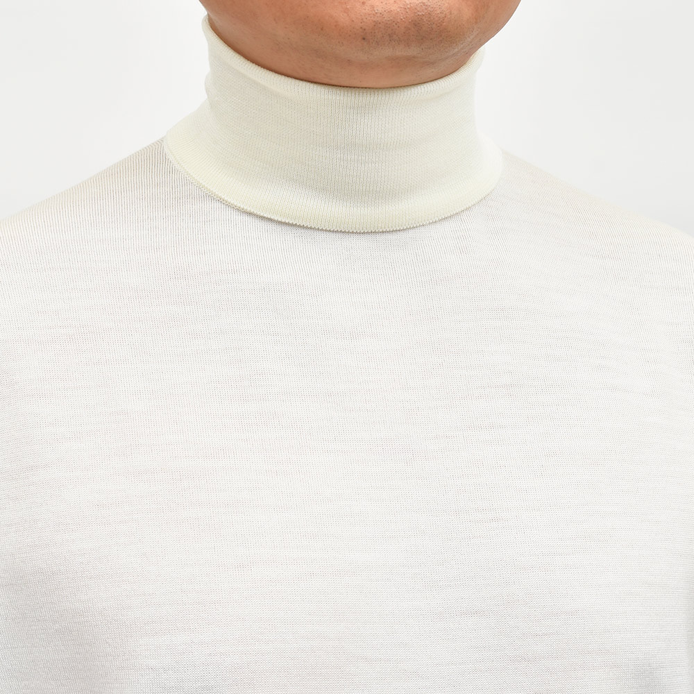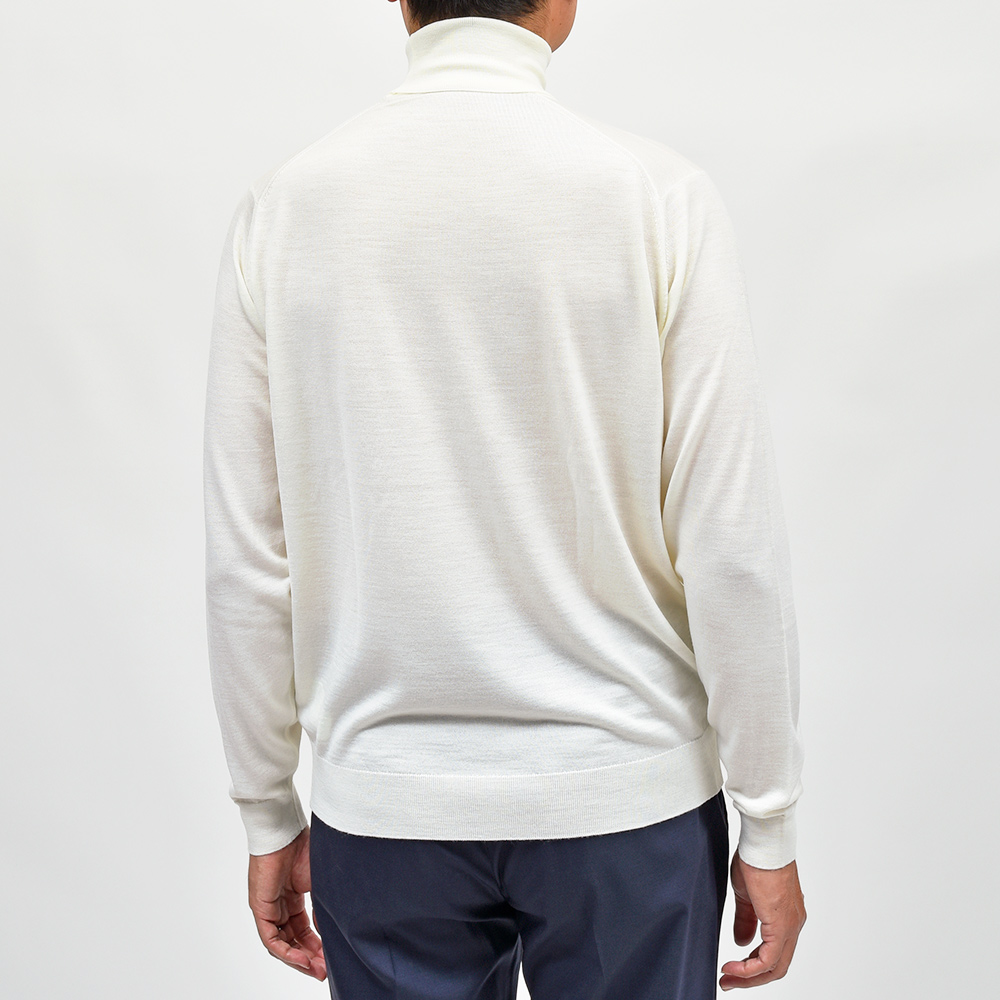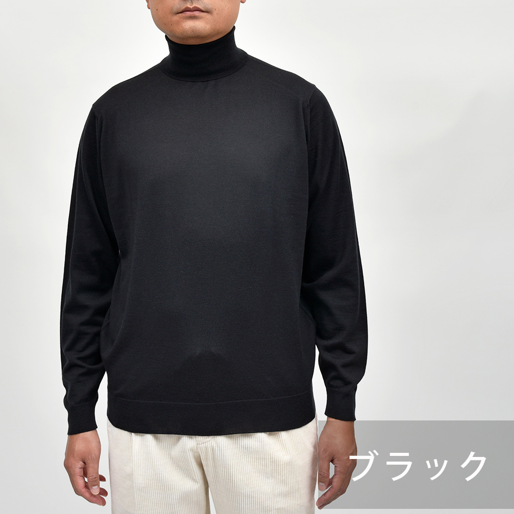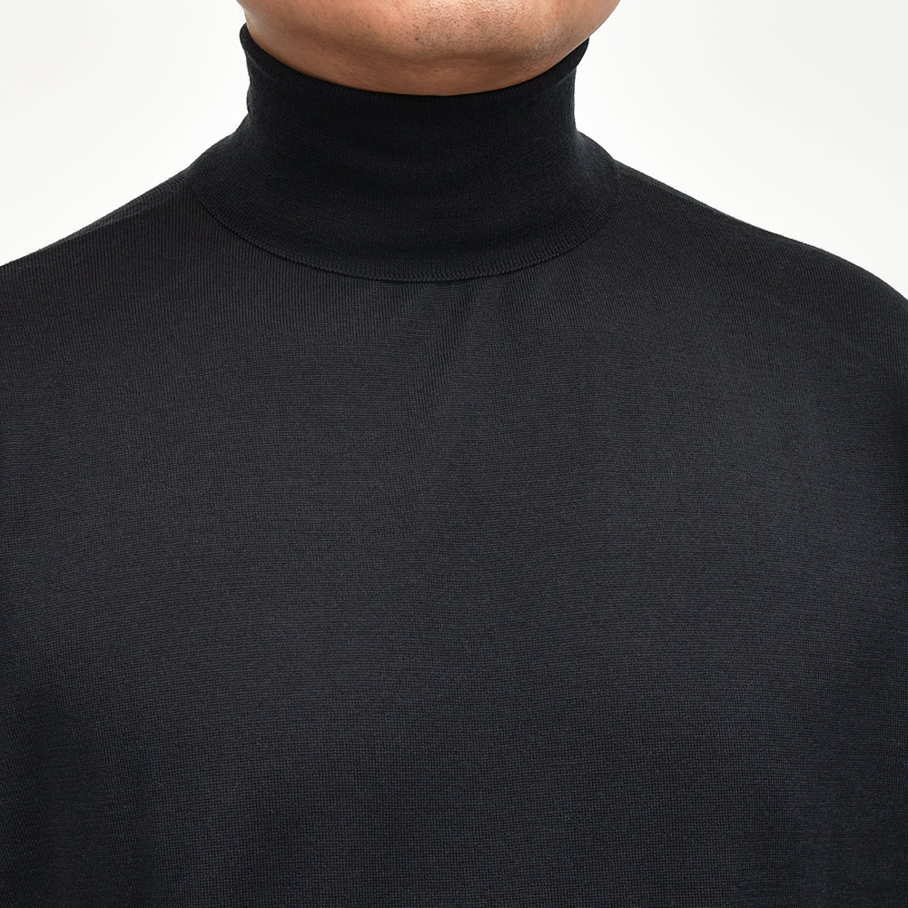滑らかで仄かな光沢感を放ち、非常に手触りの良いエクストラファインメリノウールを使用した、定番ハイゲージの30ゲージシリーズ。やや透け感のあるハイゲージは、ジャケットなどのインナー使いは勿論のこと、サイズ感を少しゆったりめにすれば一枚で着用しても雰囲気のあるスタイルになります。JOHN SMEDLEYでは定番のタートルネックニットモデル“LEVINE”は、ネックが高過ぎず低過ぎない日本人にも合いやすい設定となった汎用性の高い一品です。