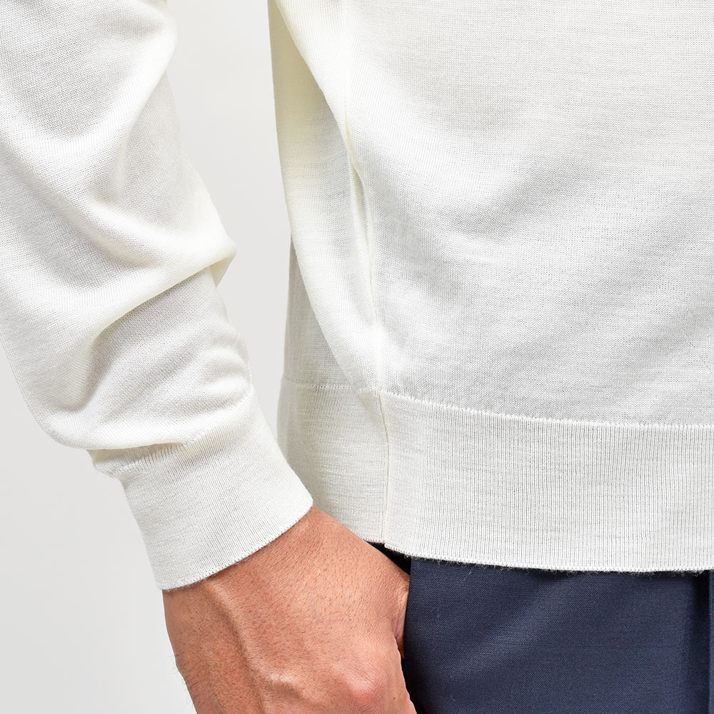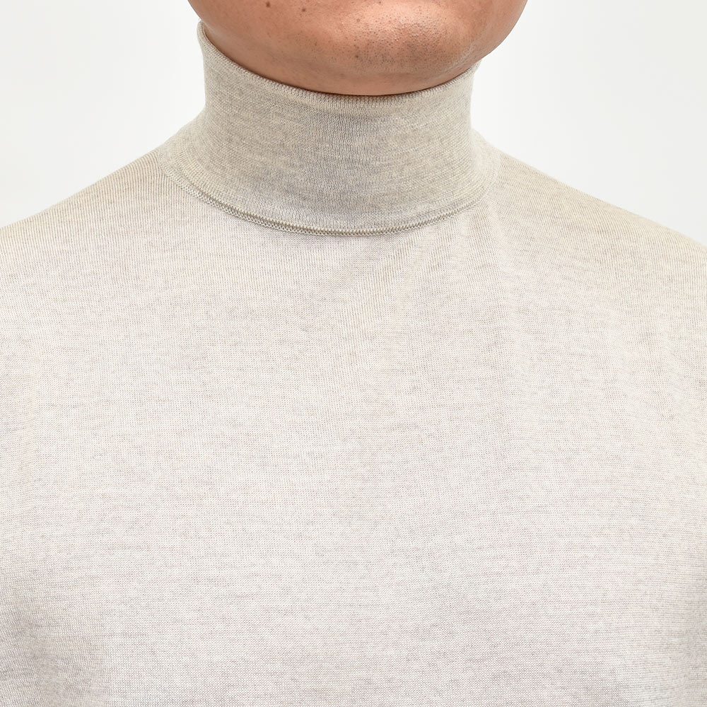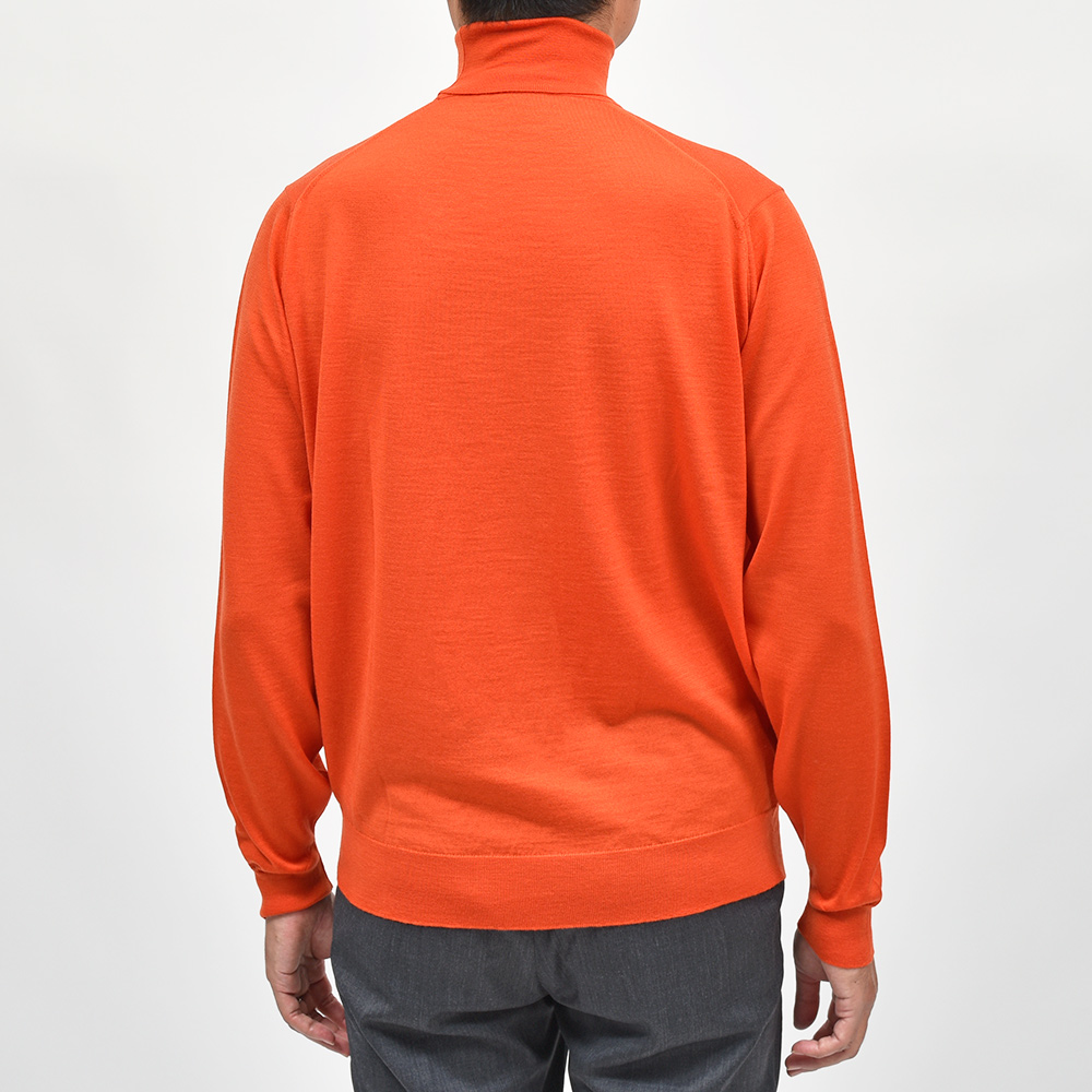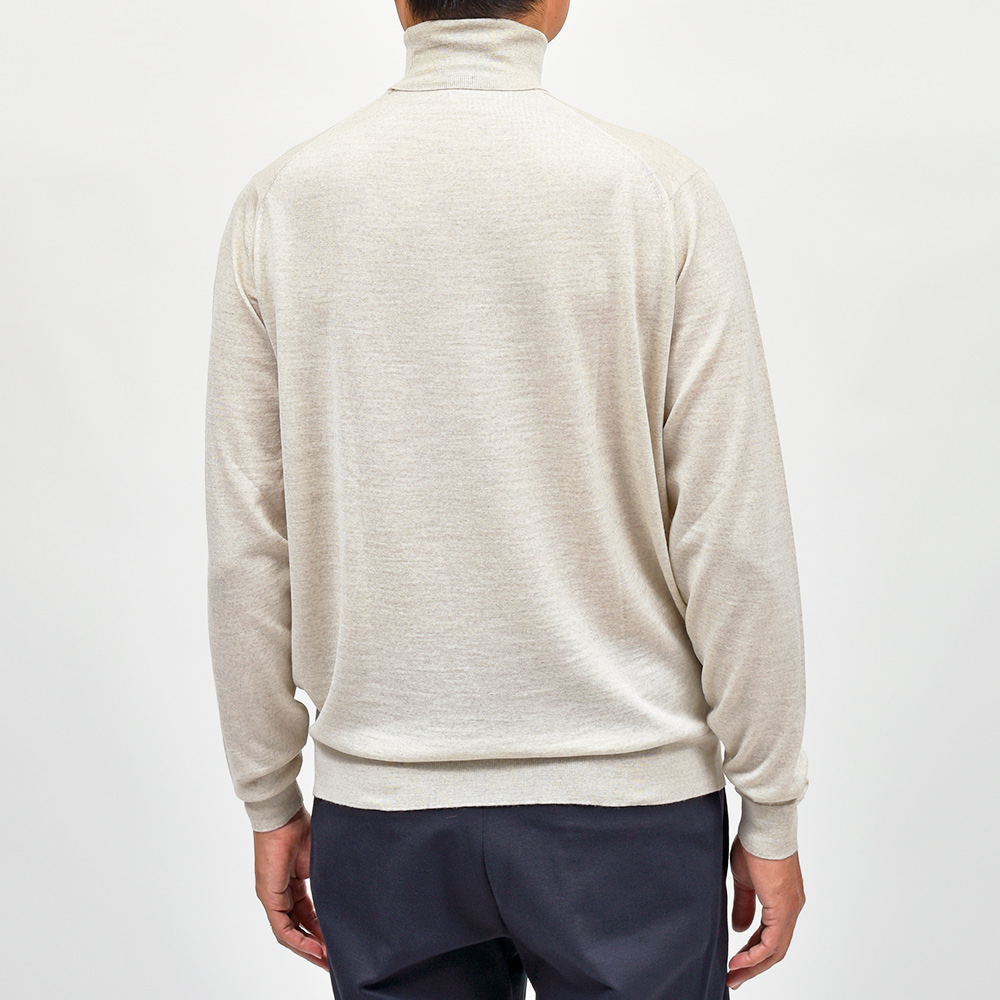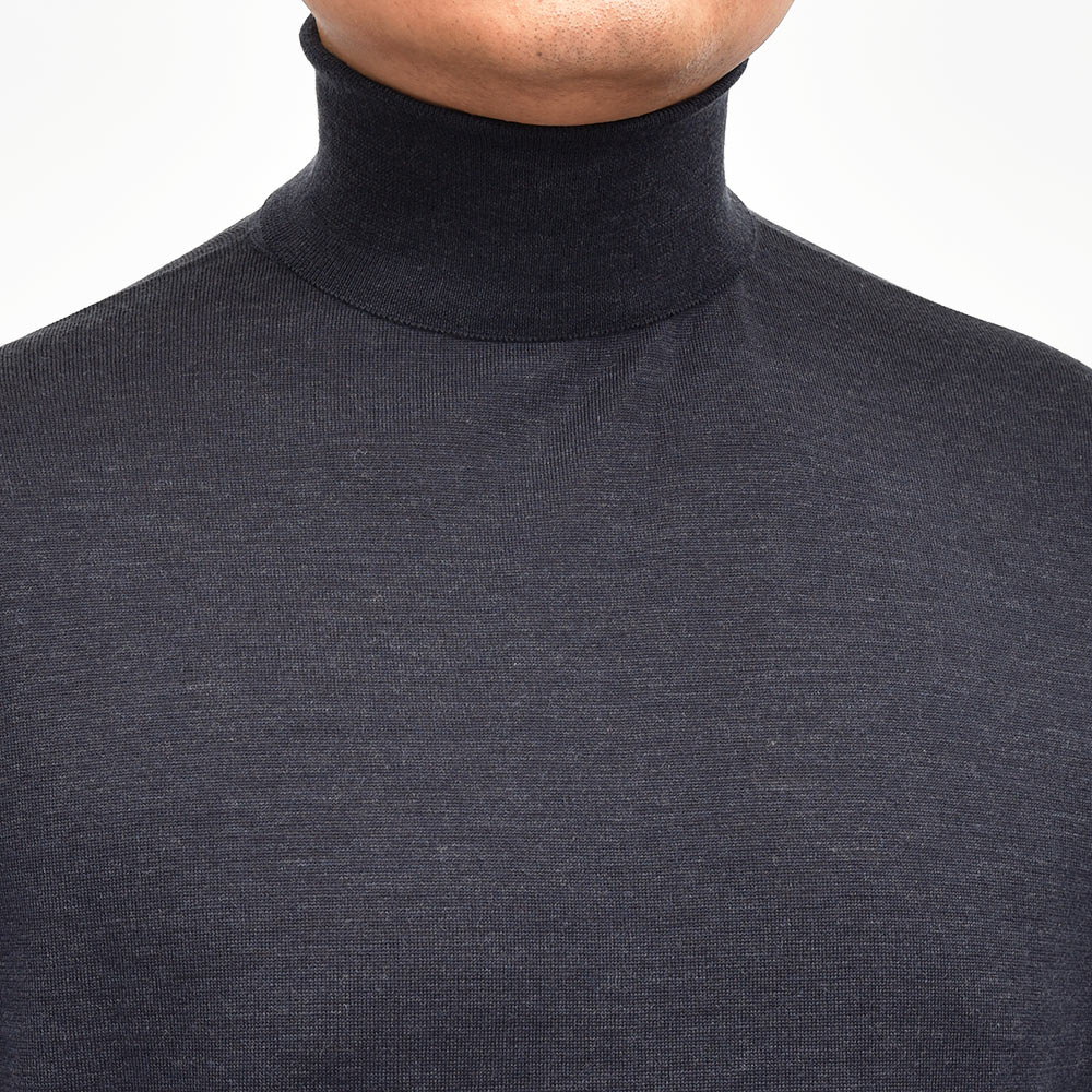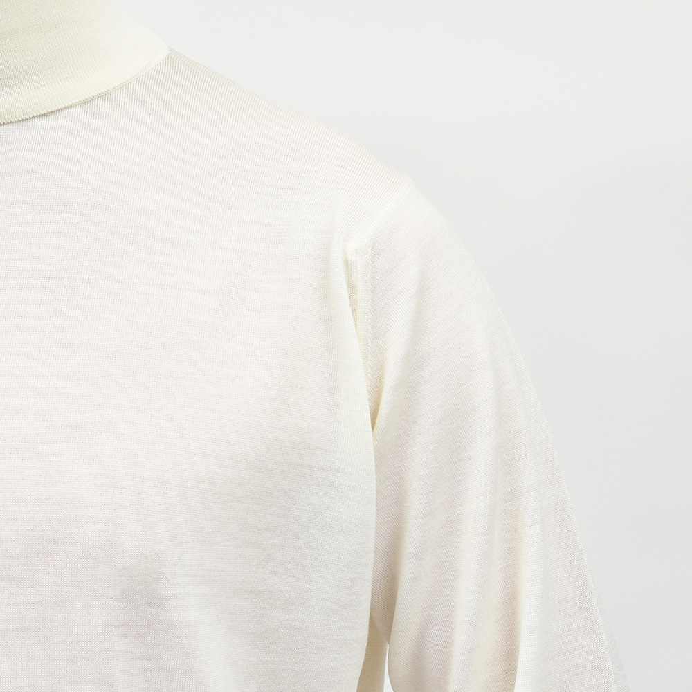 滑らかで仄かな光沢感を放ち、非常に手触りの良いエクストラファインメリノウールを使用した、定番ハイゲージの30ゲージシリーズ。やや透け感のあるハイゲージは、ジャケットなどのインナー使いは勿論のこと、サイズ感を少しゆったりめにすれば一枚で着用しても雰囲気のあるスタイルになります。JOHN SMEDLEYでは定番のタートルネックニットモデル“LEVINE”は、ネックが高過ぎず低過ぎない日本人にも合いやすい設定となった汎用性の高い一品です。