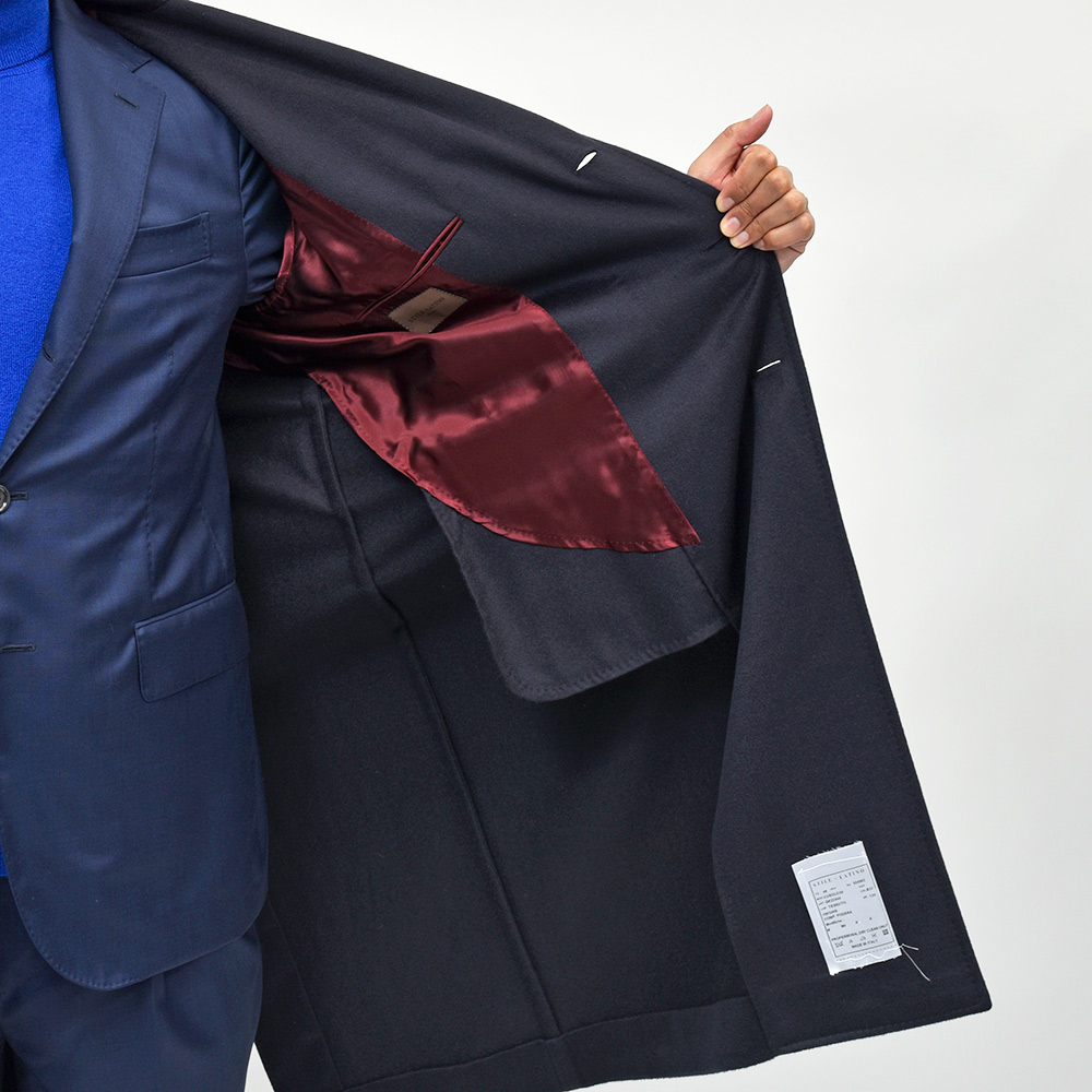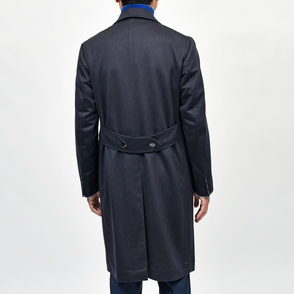 軽やかなカシミヤ素材はモデルEOLOの軽やかな仕立てと相まって、コートが揺れ動く度に目を惹きつけるエレガントな雰囲気を感じさせます。