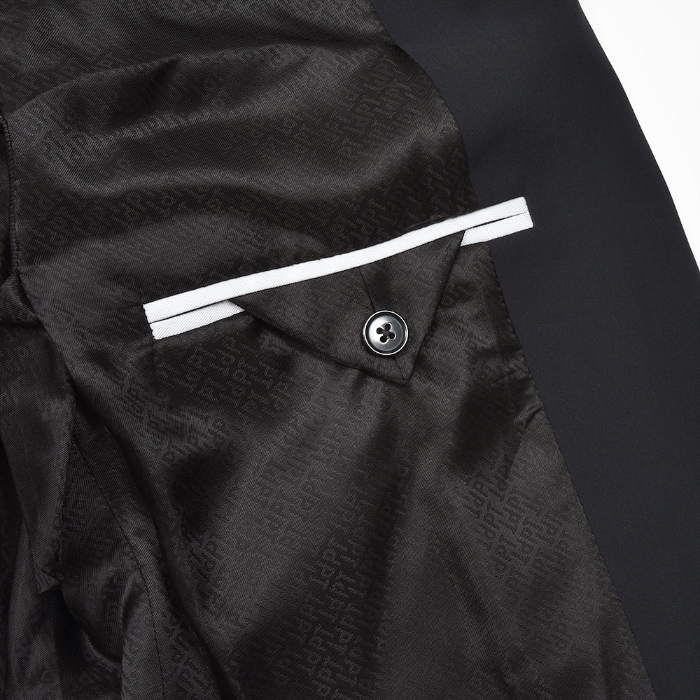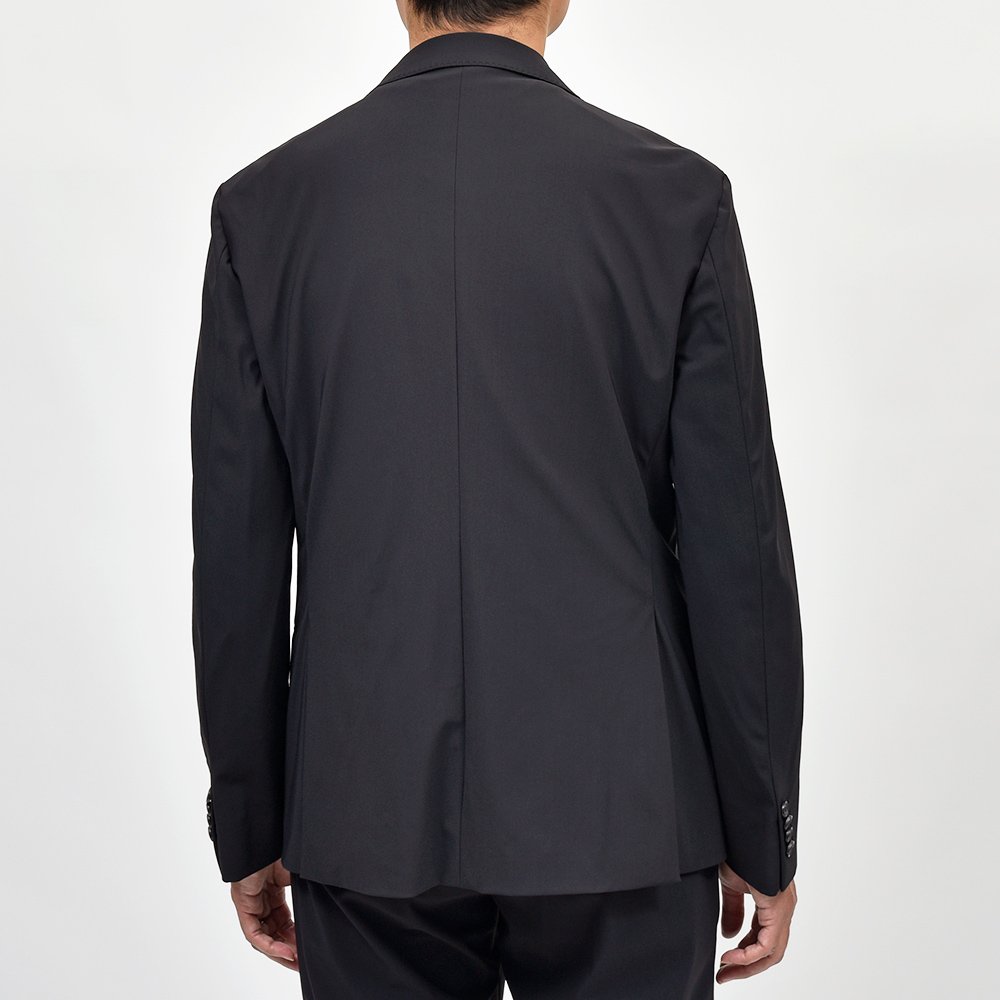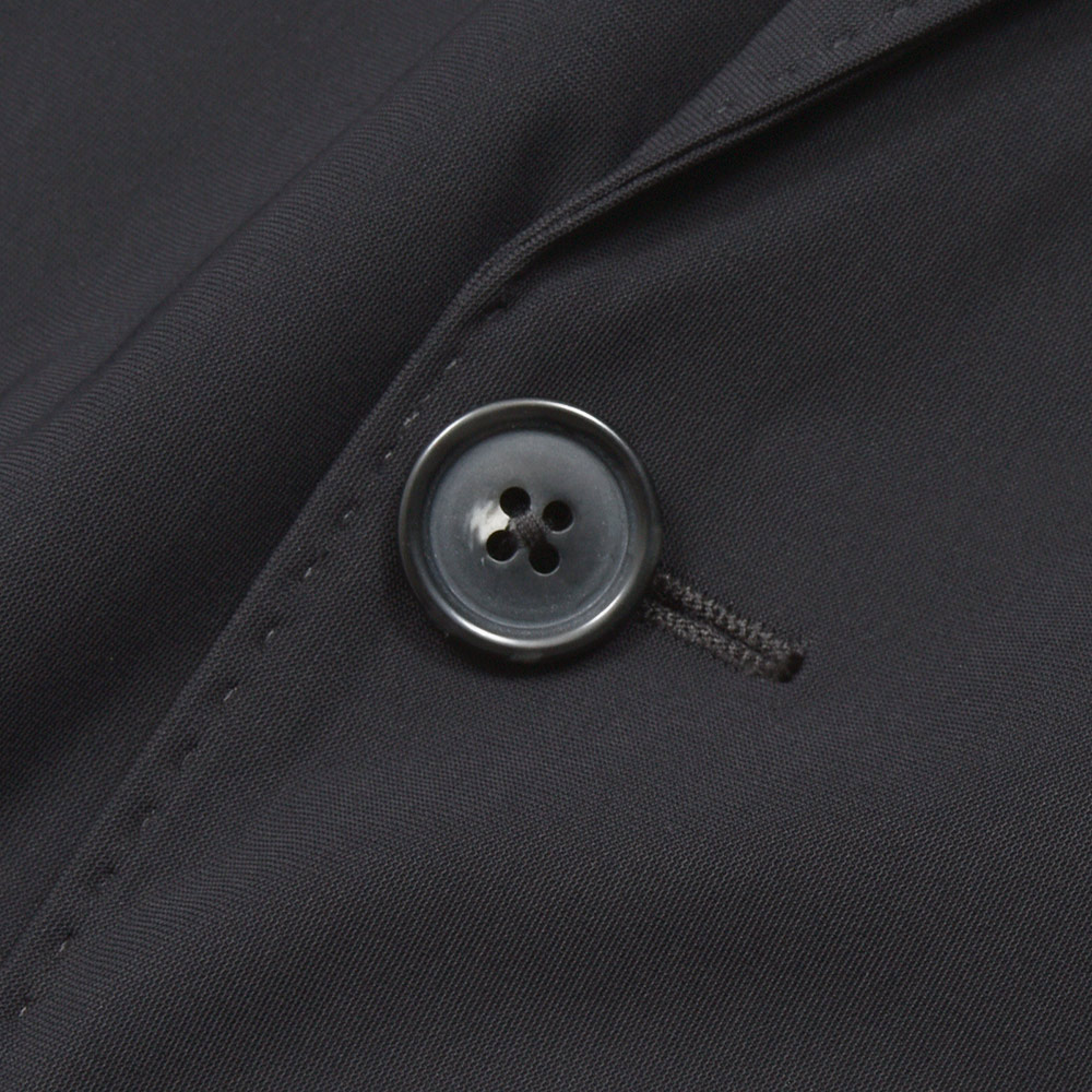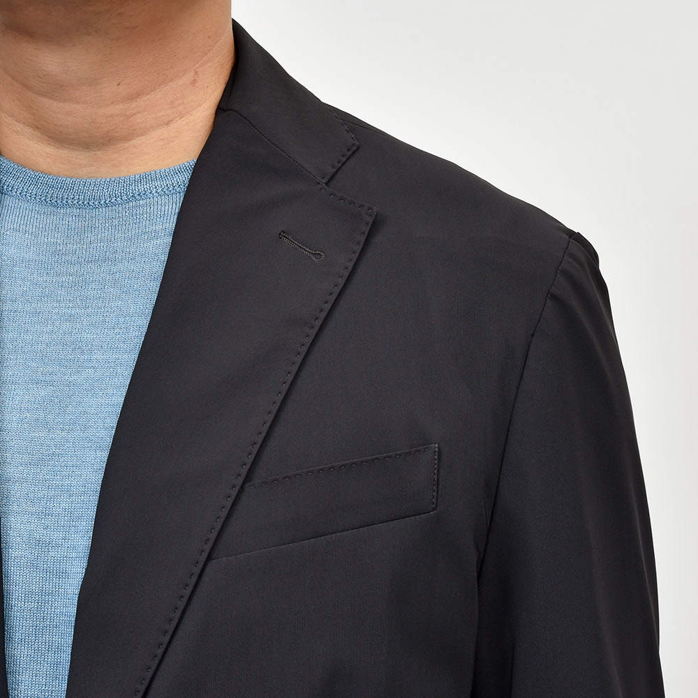 モデルは2つボタンにシングルジャケット。広すぎないモダンな印象のラペル幅に、フラップポケットと袖の本切羽仕上げは本格的なジャケットの仕立てです。
