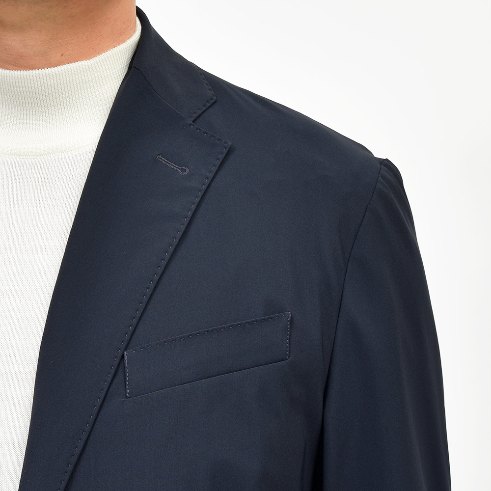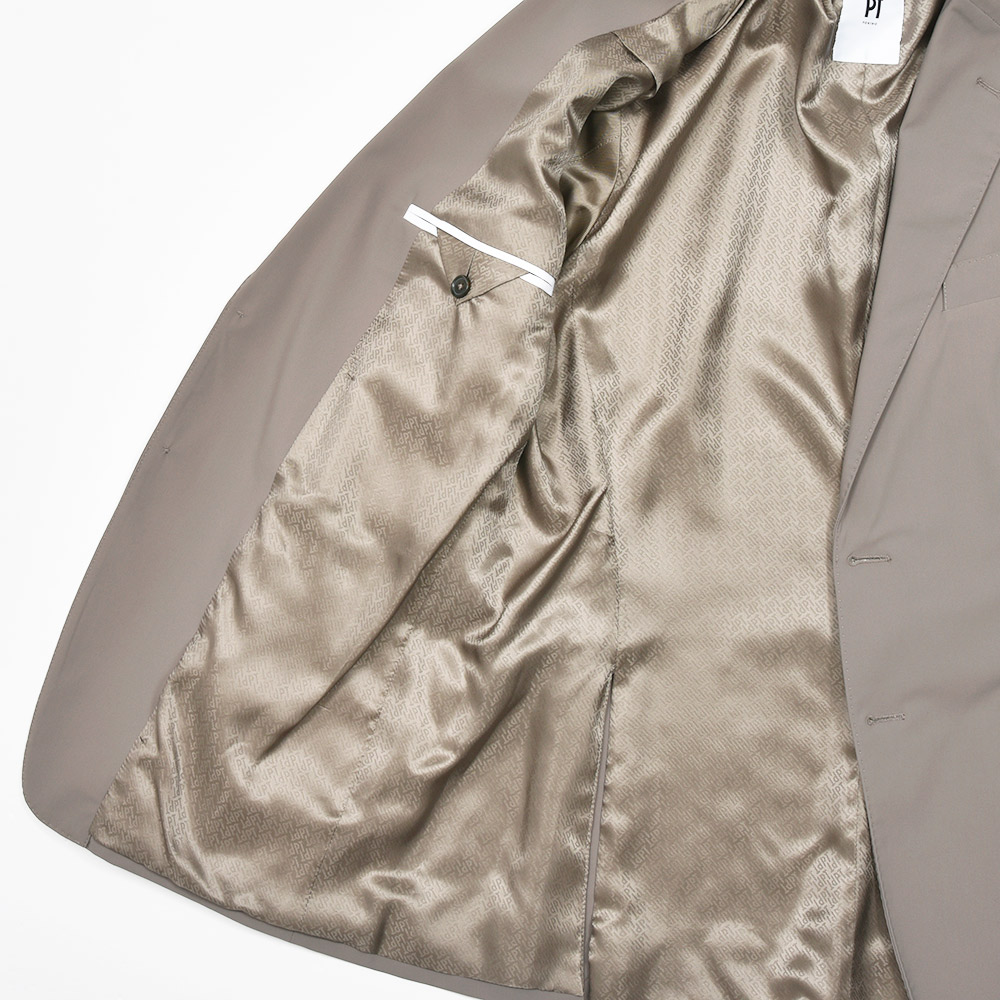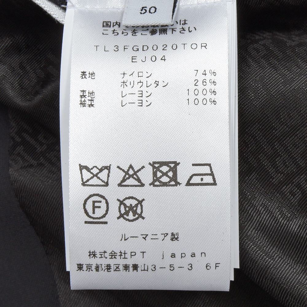こちらは春夏シーズンよりも少し生地を厚くした、目付け370gの秋冬シーズン用のナイロンストレッチファブリックになります。秋冬用と言いましても地厚とまではいかない、柔らかでしなやかな生地感ですので、春先でも問題なく着用することができます。また、ドライなタッチのパッカブル素材に、360°ストレッチ、形状回復、速乾といった様々な機能性を持った超ハイブリッド素材。スポーティーな印象の強いナイロン素材ですが、光沢感を抑えた質感にPT TORINOならではの上品な雰囲気がほんのりとドレスライクな顔を覗かせてくれます。