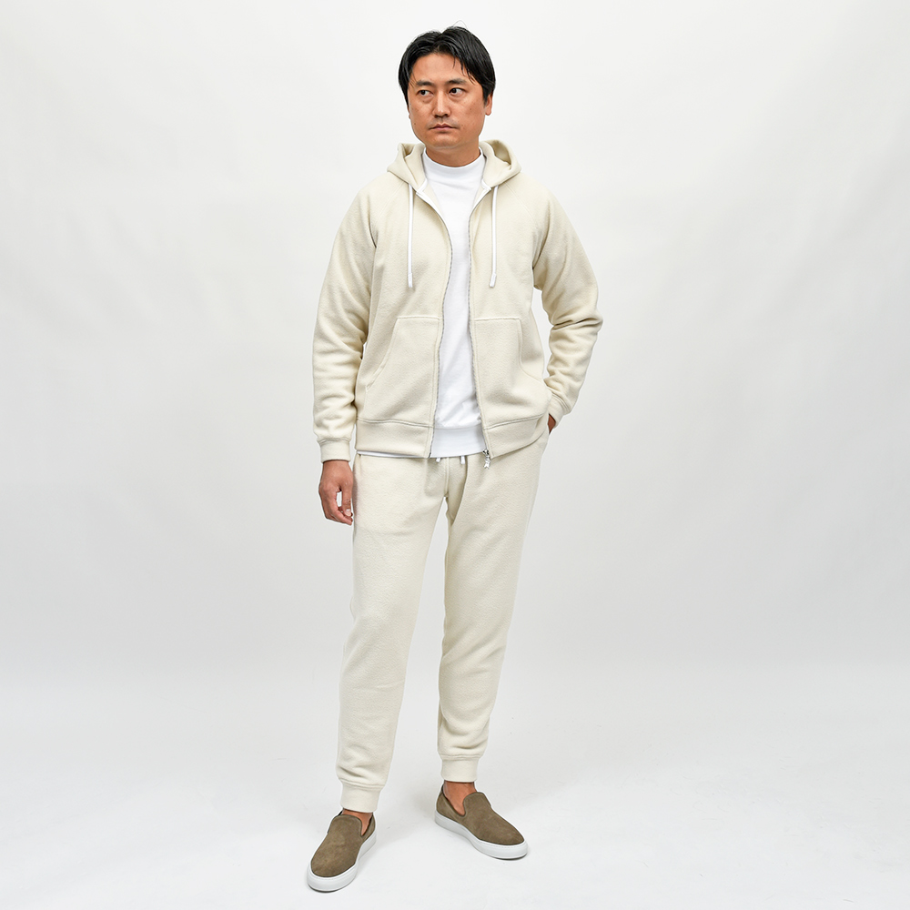 こちらのパーカーは、パンツ(別売)とセットアップでお使いいただけます。