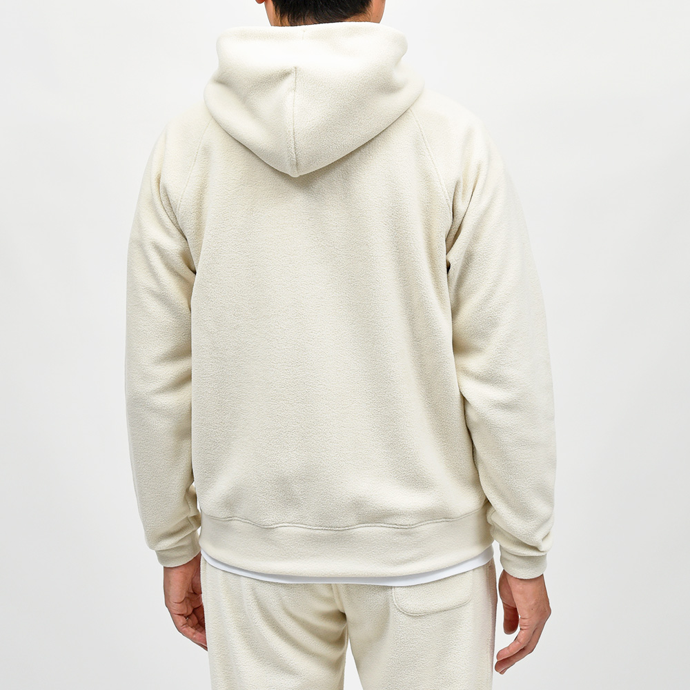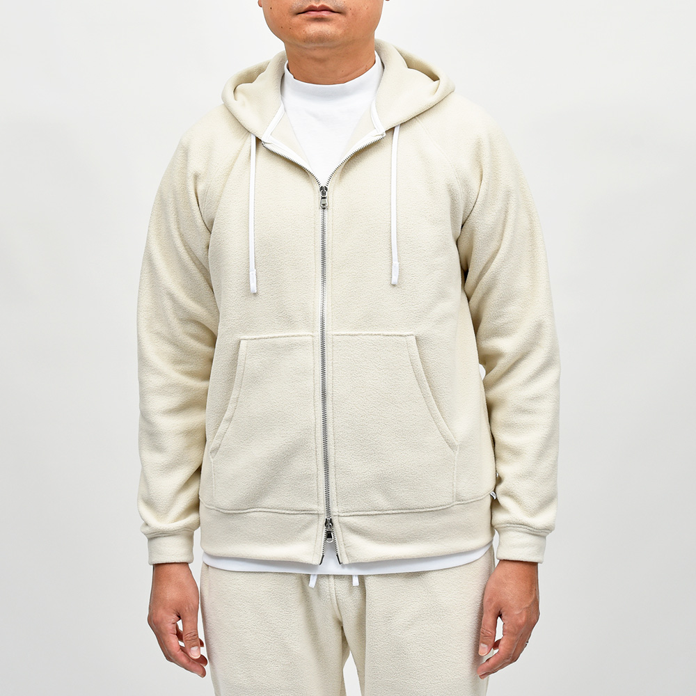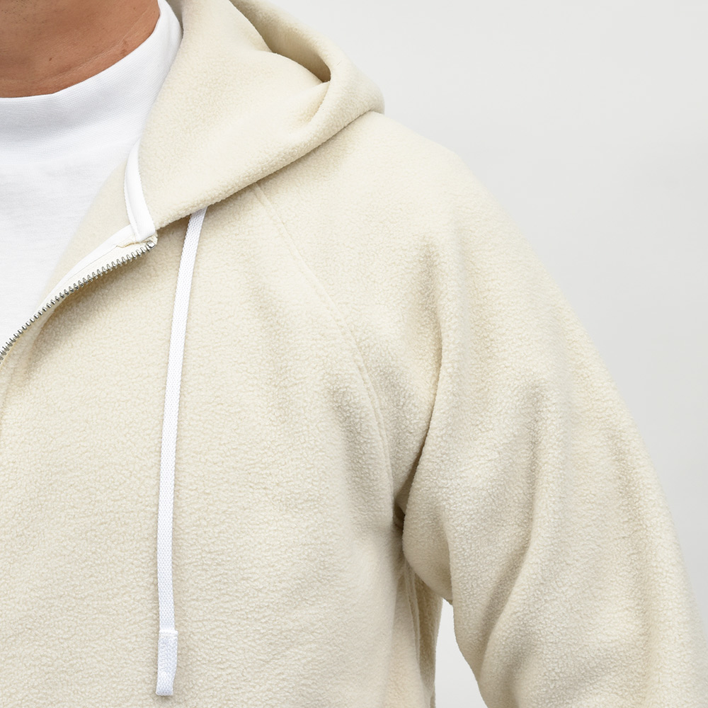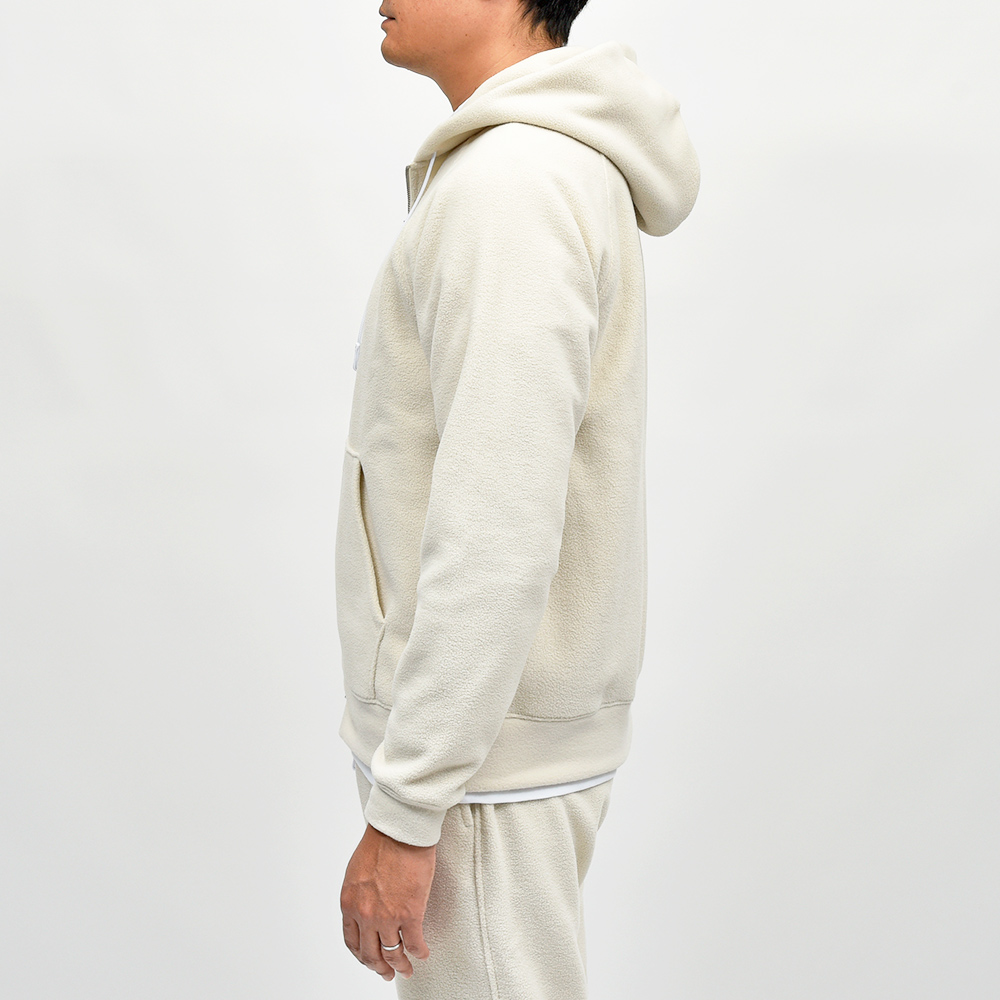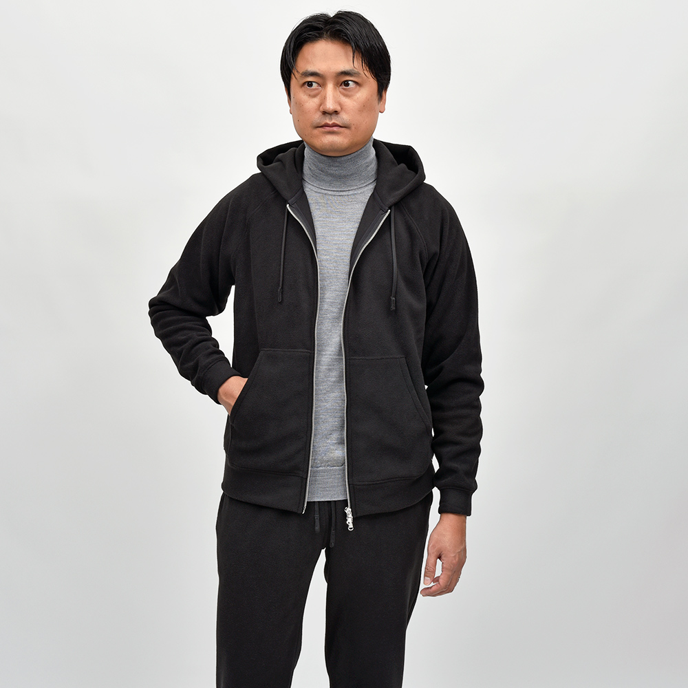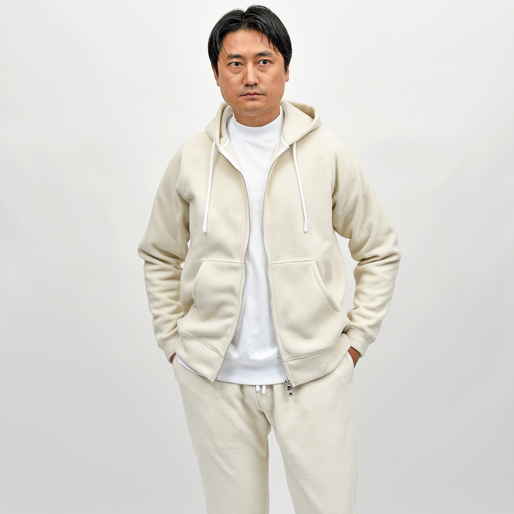 今シーズン新登場した“パイルスポーツ”と名付けられたこちらのフリース素材は、非常に軽く柔らかなボアフリースになります。質感の良いフリース素材のためカジュアル感を抑えた上品な雰囲気が特徴です。また、フリースらしい高い保温力は冬場のちょっとした外出や、ダウンベストなどアウターとのレイヤードによって、高いファッション性を発揮してくれる一着と言えます。