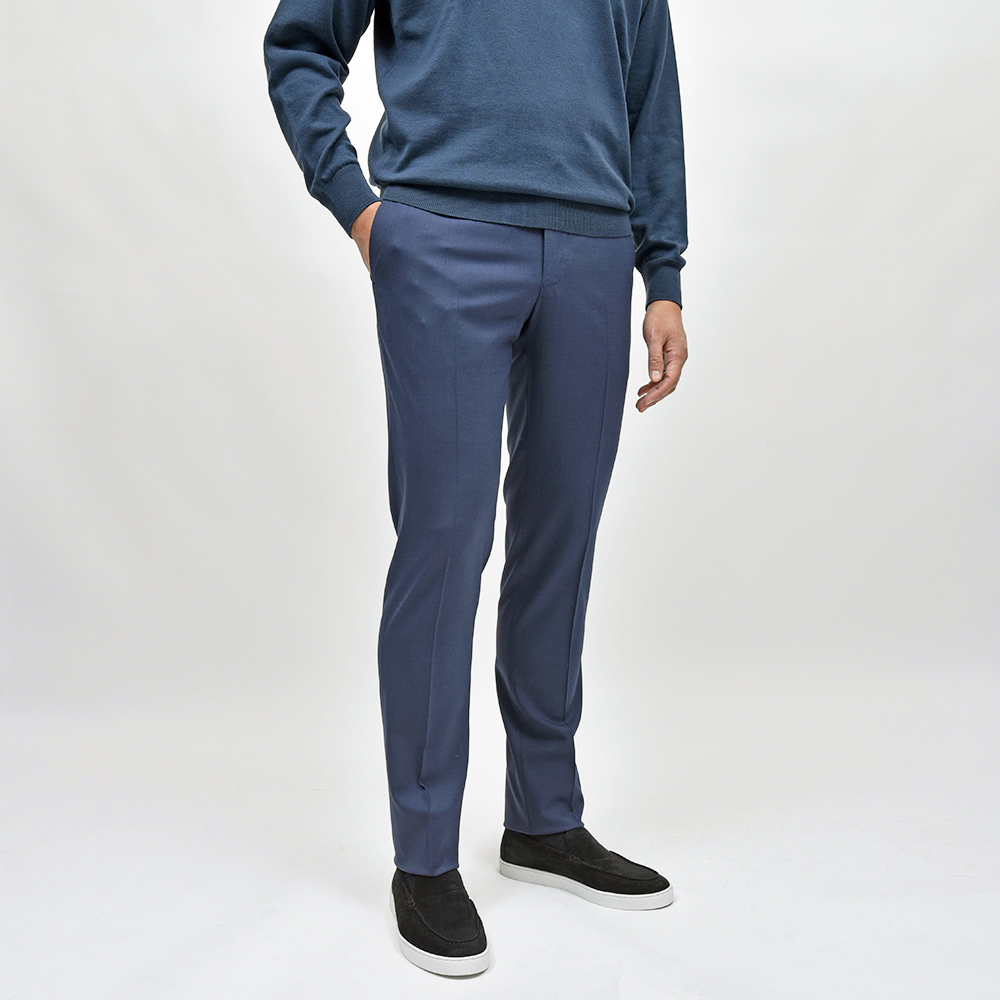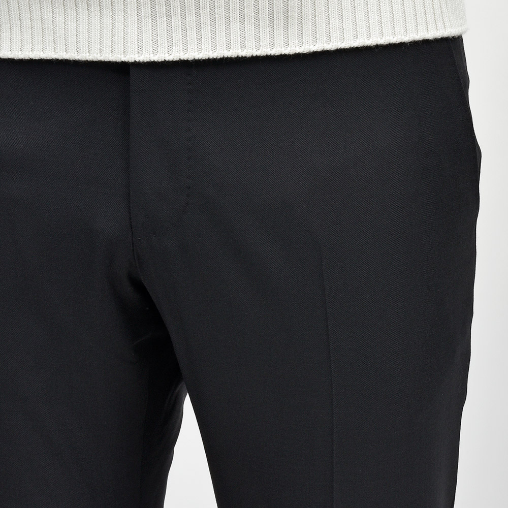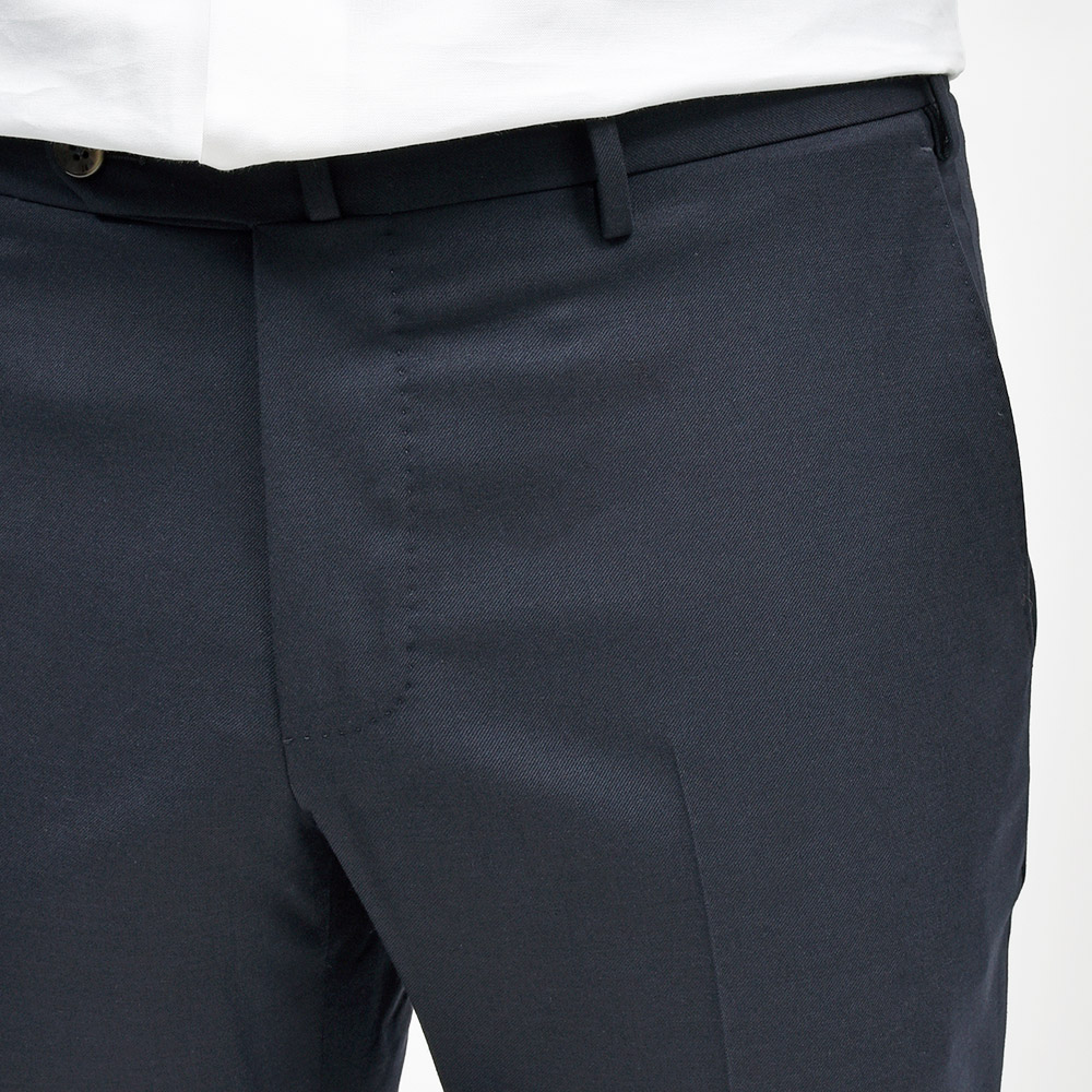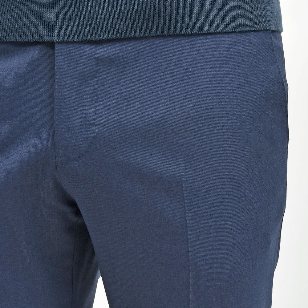 とりあえず一本ワードローブに必要なサージ生地のスラックスは、誰の目から見ても美しいシルエットを誇るこの名品であれば安心安全です。