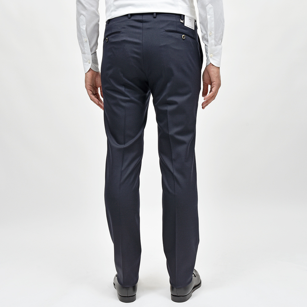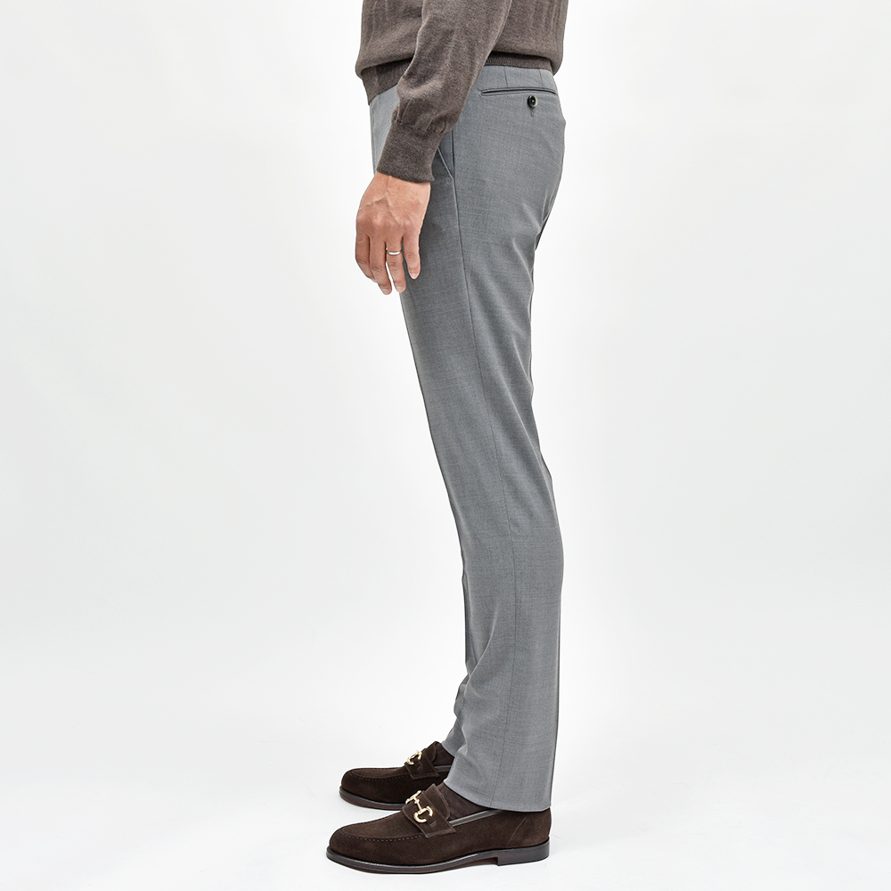 一度穿くとやめられないビジネスパンツの金字塔”TRAVELLER”シリーズ。こちらは、目付270gのシーズンを問わず通年で着用できるサージ生地を使用したドレスパンツになります。言わずもがなのストレッチ性は、羽が生えたかのような軽さのある穿き心地。使用されている素材は上品な艶感を持ち、柔らかで通気性に優れ、またシワになりにくく、立ったり座ったりを繰り返すビジネスシーンにおいて必須となる機能性を備えています。そして何よりも自宅の洗濯機で洗うことができ、アイロンをかける事でシワも簡単に伸びます。