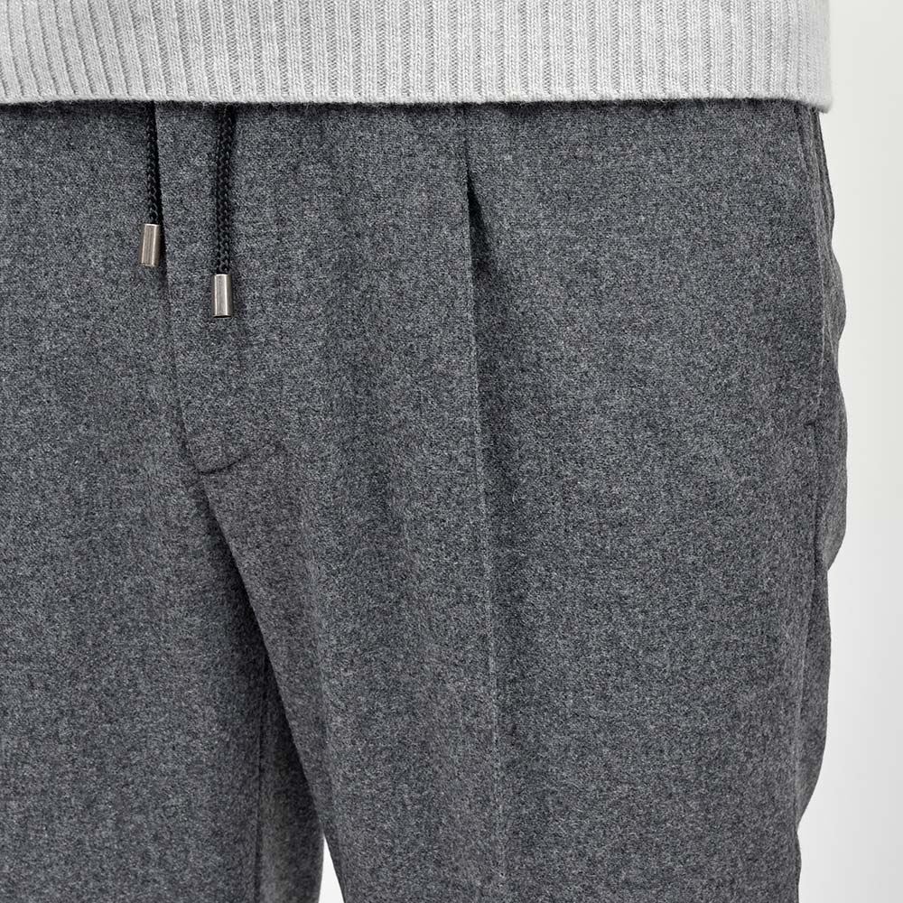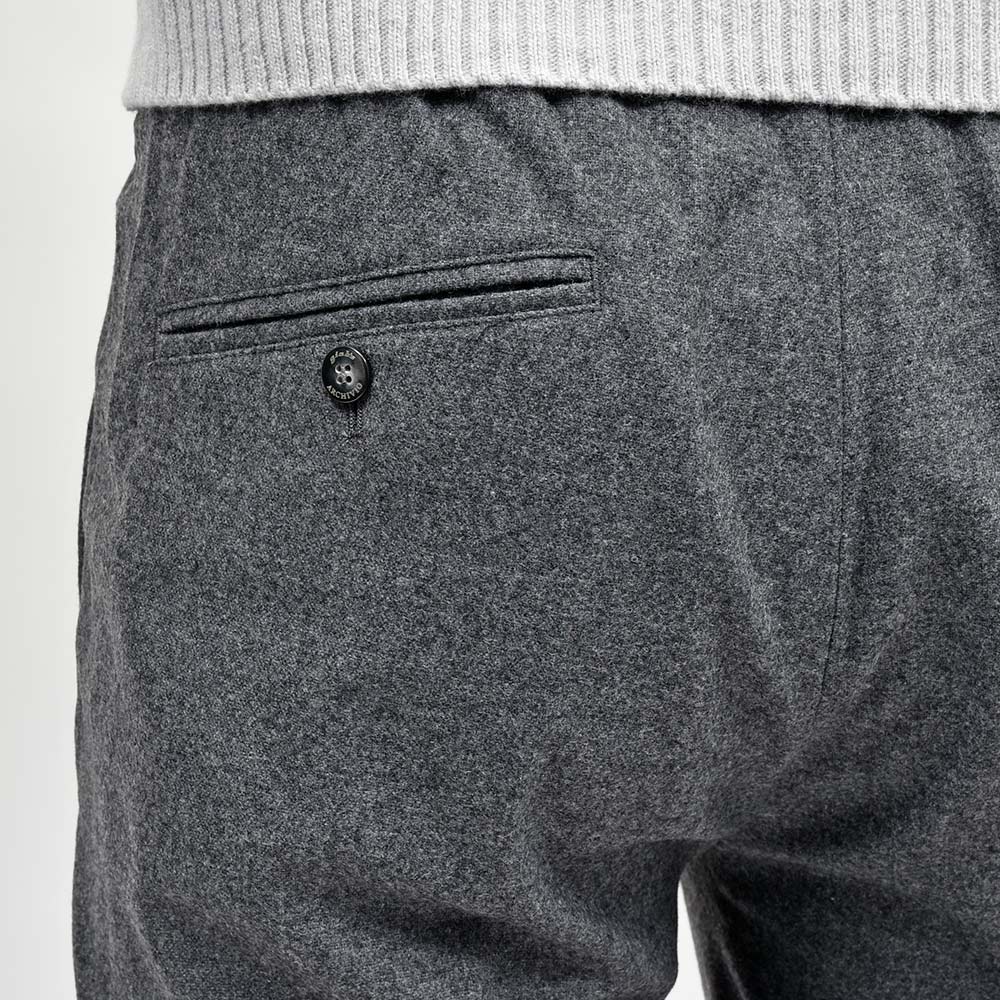 目付け310gのメランジを効かせたコチラの生地は、ジャガード織りのライトフランネルがウォーム感を感じさせる、ココンチで毎年人気の定番ファブリックになります。平織りでおられた生地は凹凸感が生まれ、メランジと相まってシンプルでありながらも確かな存在感を発揮。さらに、素材はウォッシャブルウールを使用し水洗いが可能となっているため、自宅で気軽にウールパンツのケアができるのは嬉しい限りです。
