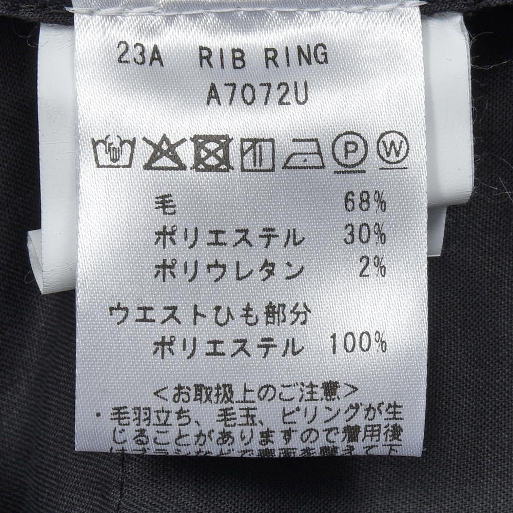 MASACCIO(マサッチョ)をベースに別注を行い、今なおヒットし続けるモンスターアイテム(当社比)、“ring(通称リングッチョ)”。こちらは別注第二弾となる、“RIB ring(リブリング)”になります。“ring(通称リングッチョ)”をベースとしたこちらは、ラグジュアリーな雰囲気が漂うイントレチャートのドローコードや、1プリーツとMASACCIOの代名詞である永久クリースはそのままに、裾をリブ仕様に仕上げました。また、マーベルト部分は“TIZIANO(ティッツィアーノ)”のベルトループなしのシャーリング仕様を採用したハイブリットな一品となっています。