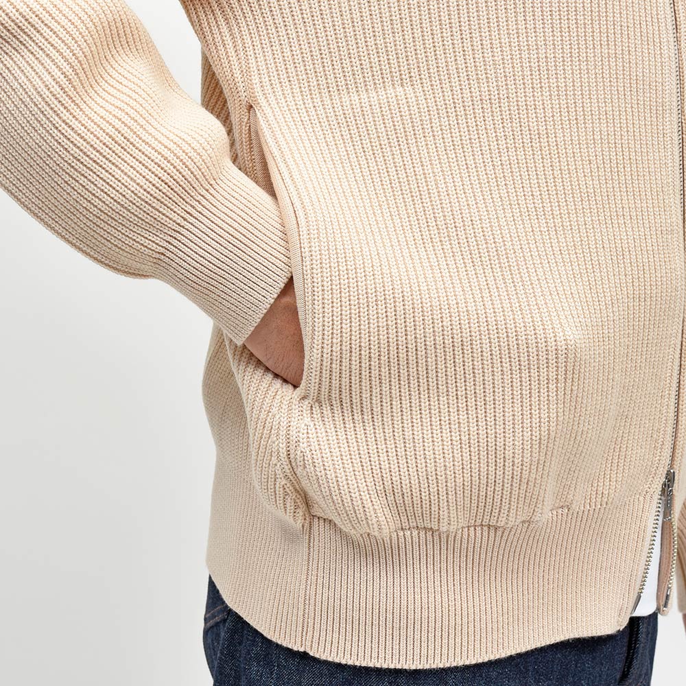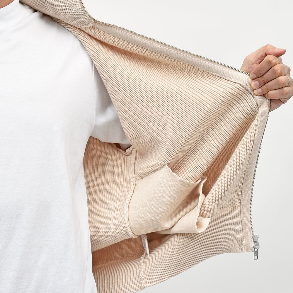 エクストラファインメリノウールを使用した7ゲージの畦編みドライバーズニット。シルクのような光沢感とカシミヤのような滑らかな肌触りを持つ高級ウールを贅沢に編み込んでいます。毛玉が起きにくく、また手洗いで洗濯ができる汎用性。こちらは片畦編みすることで軽量化し、日常使いしやすい一着となっています。