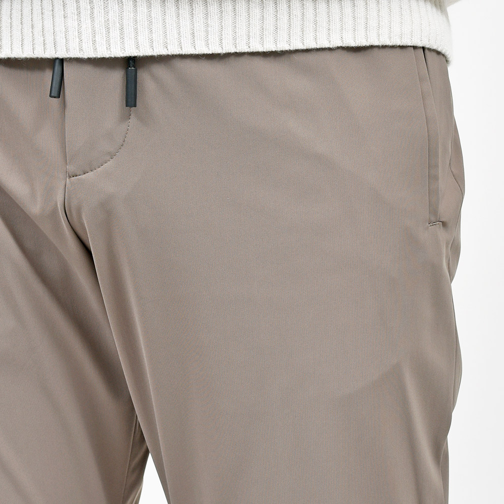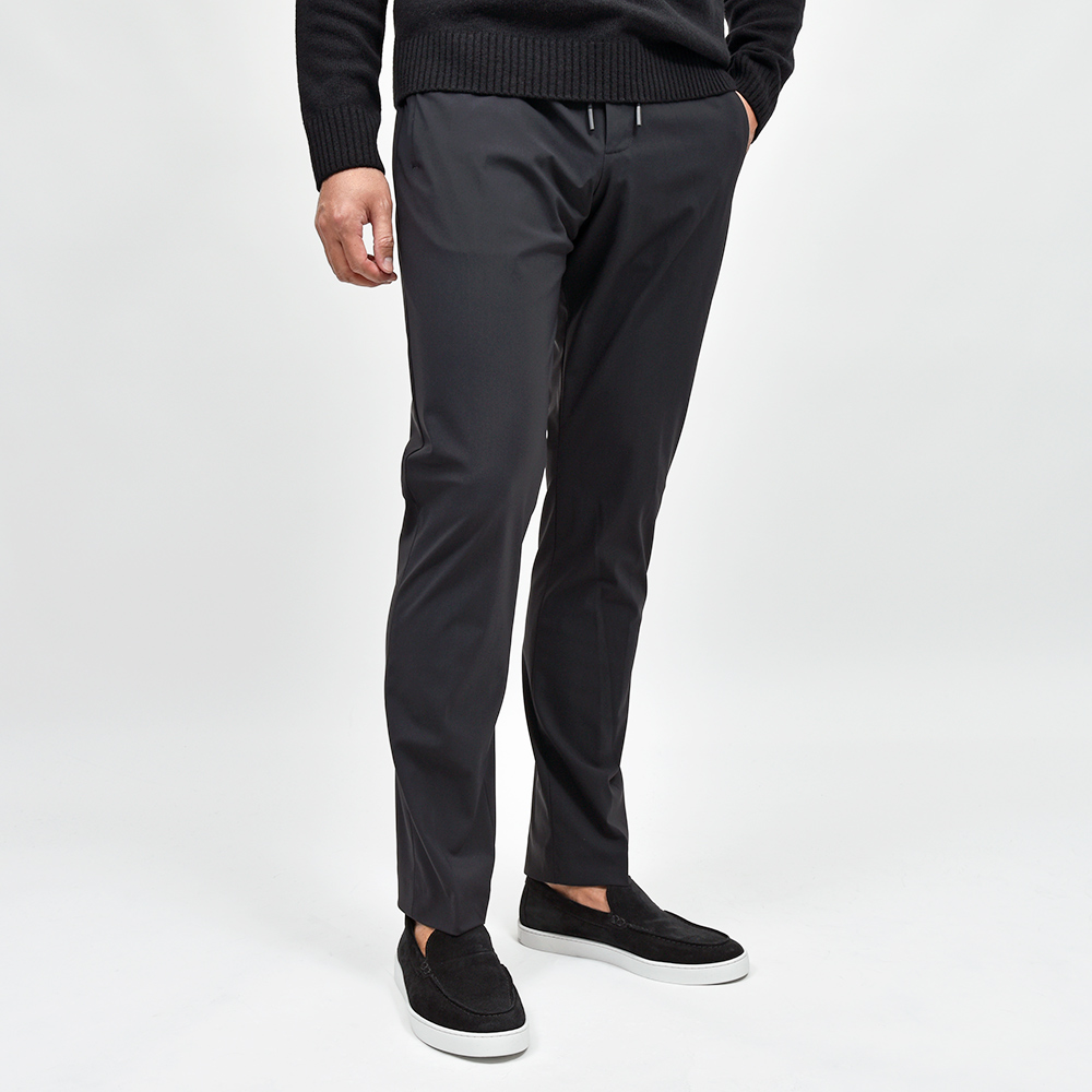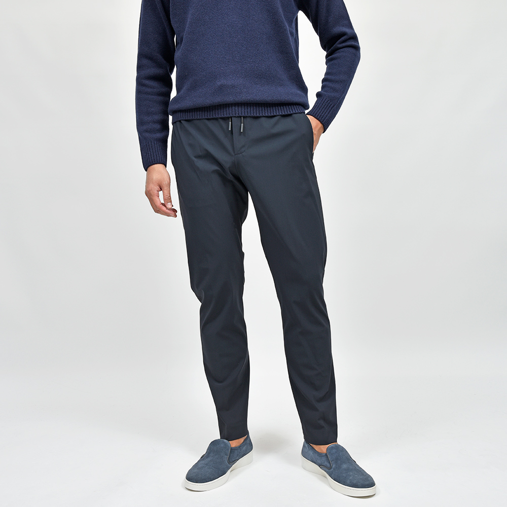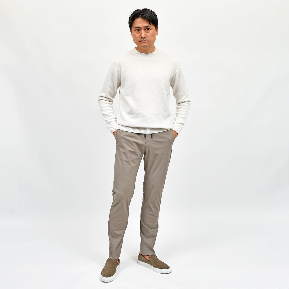 モデル“OMEGA”はドローコードが付いたシャーリングパンツ。Activeシリーズの中ではワタリや裾幅に少しゆとりを持たせたフィッティングは、カジュアルなスタイリングには打って付けなリラックス感が漂います。PT TORINOらしい美しいシルエットが上品さを維持しつつ、実用的なシャーリングパンツに仕上がっています。