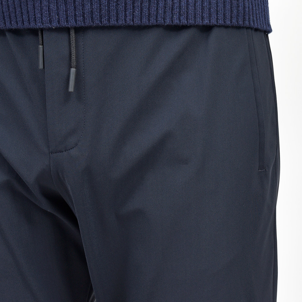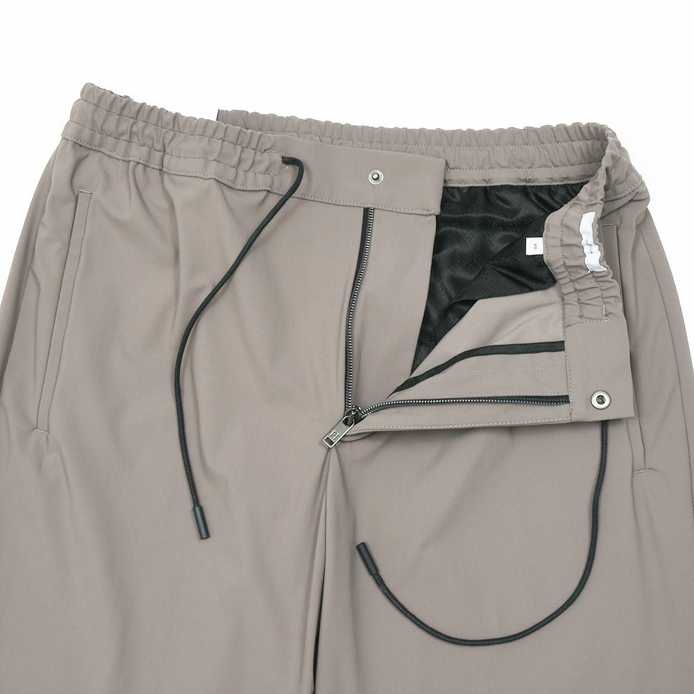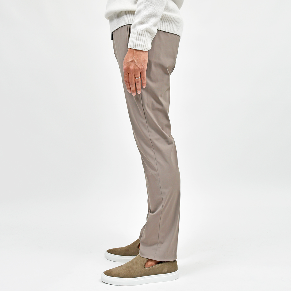 こちらは春夏シーズンよりも少し生地を厚くした、目付け370gの秋冬シーズン用のナイロンストレッチファブリックになります。秋冬用と言いましても地厚とまではいかない、柔らかでしなやかな生地感ですので、春先でも問題なく着用することができます。また、ドライなタッチのパッカブル素材に、360°ストレッチ、形状回復、速乾といった様々な機能性に、自宅で洗濯できるという利点だらけの超ハイブリッド素材。スポーティーな印象の強いナイロンパンツですが、光沢感を抑えた質感にPT TORINOならではの美しいシルエットがほんのりとドレスライクな顔を覗かせてくれます。