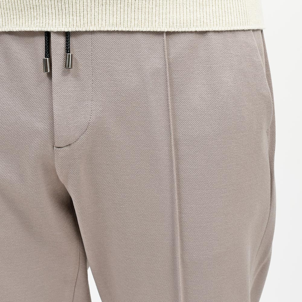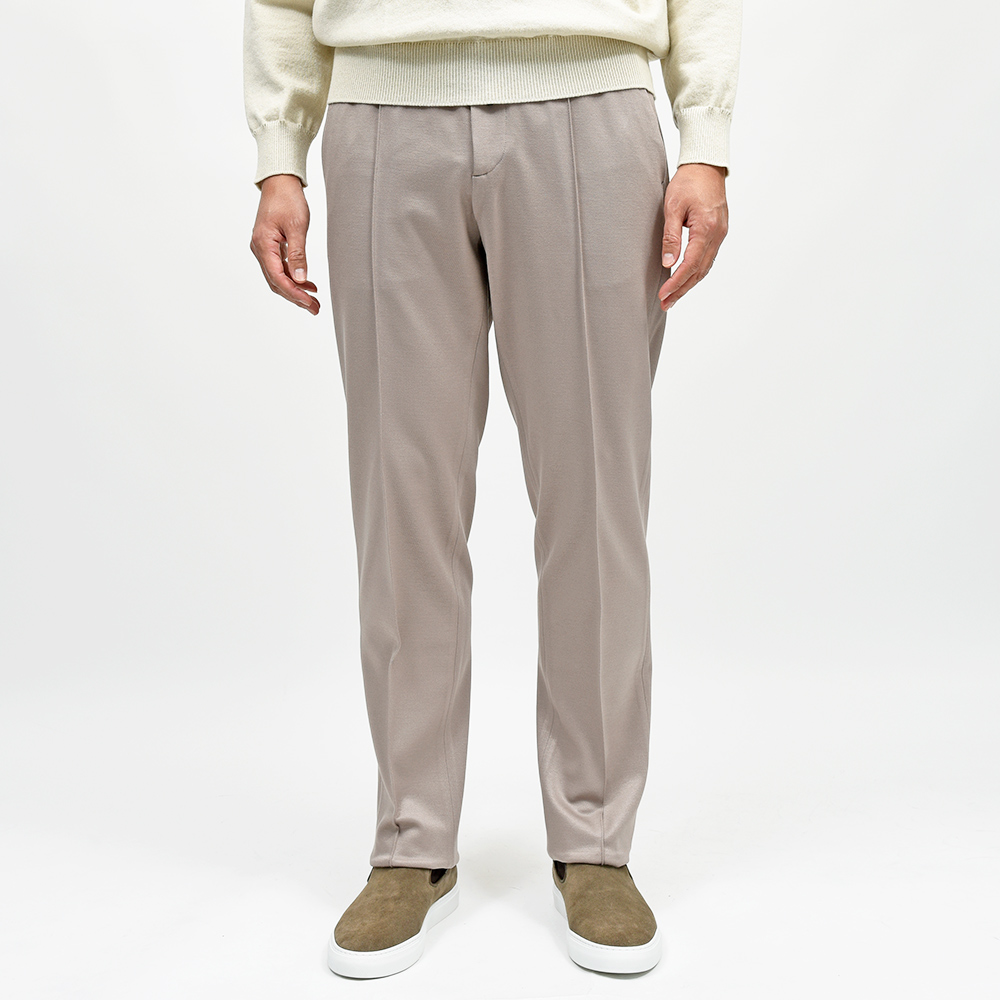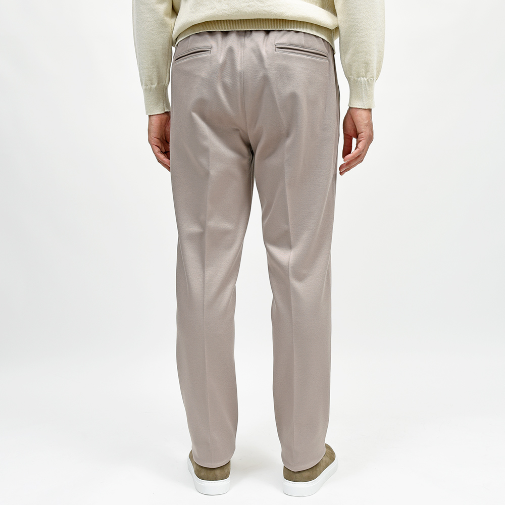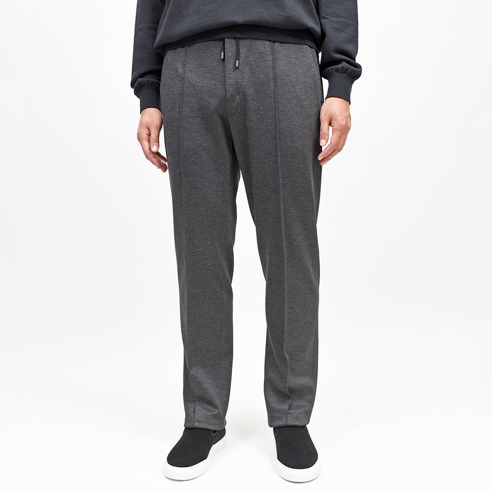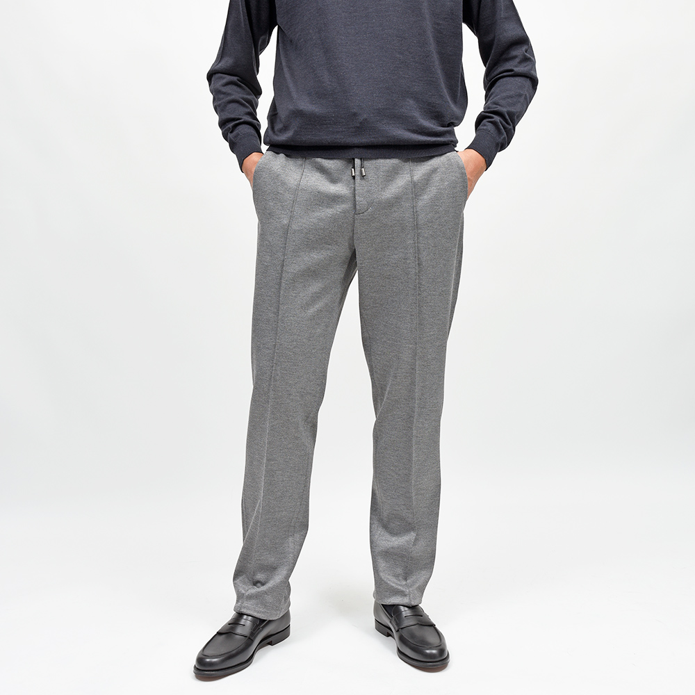 目付け520gのジャージー生地は、昨年に新登場した“カルゼジャージー”になります。ツイル織りよりも畝の感覚が広く表情が作りやすいカルゼ織りのようなジャージーは、言わずもがなのジャージーらしい穿き心地はそのままに、スポーティーさを抑えた見え方になります。また、自宅で水洗いできるため、デイリーユースには打って付けの機能を兼ね備えています。