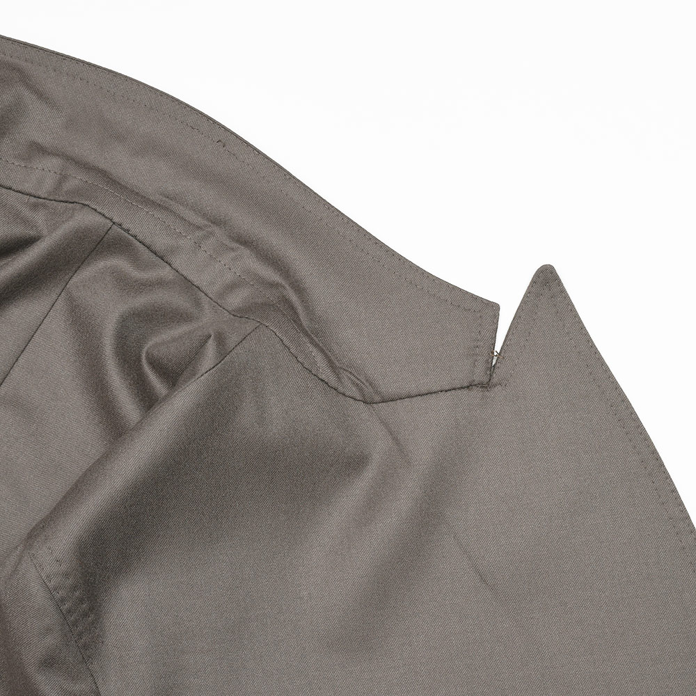 目付け270gと軽いウエイトのウールサキソニーは、滑らかで美しい艶感がリッチな表情。ウエイトも軽く、起毛感もほどほどなので、秋口から春先まで活躍してくれる一着です。また、しなやかな生地感による美しいドレープも見逃せません。