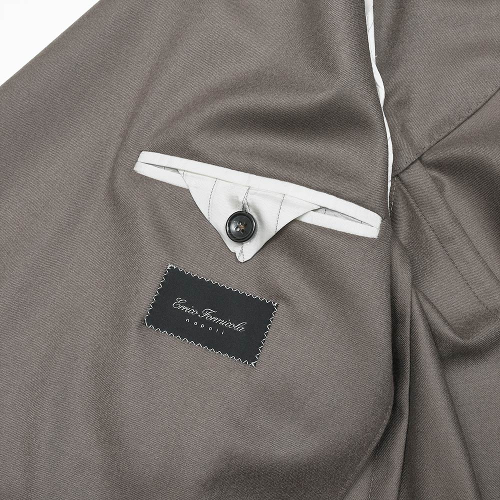 非常に深い味わいのグレイッシュなベージュカラーは、生地の質感と合わさることで色気のある佇まいを生んでいます。