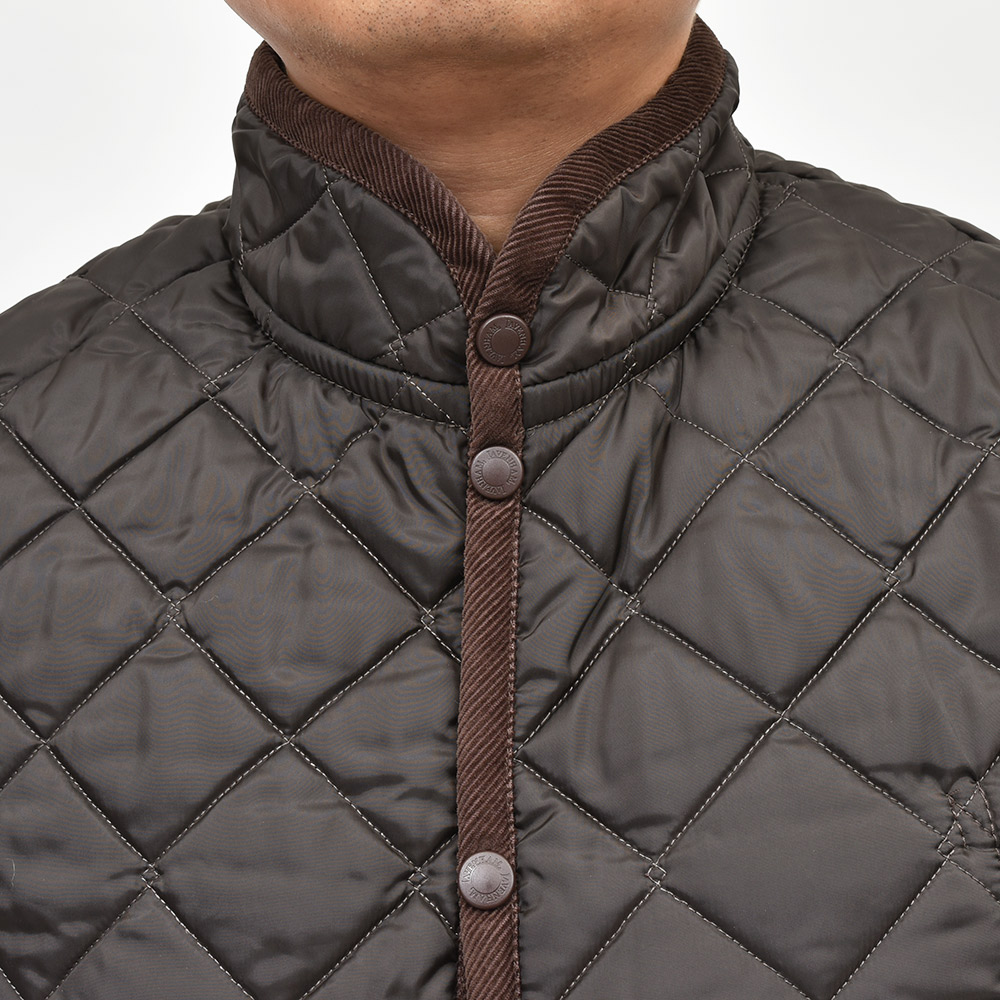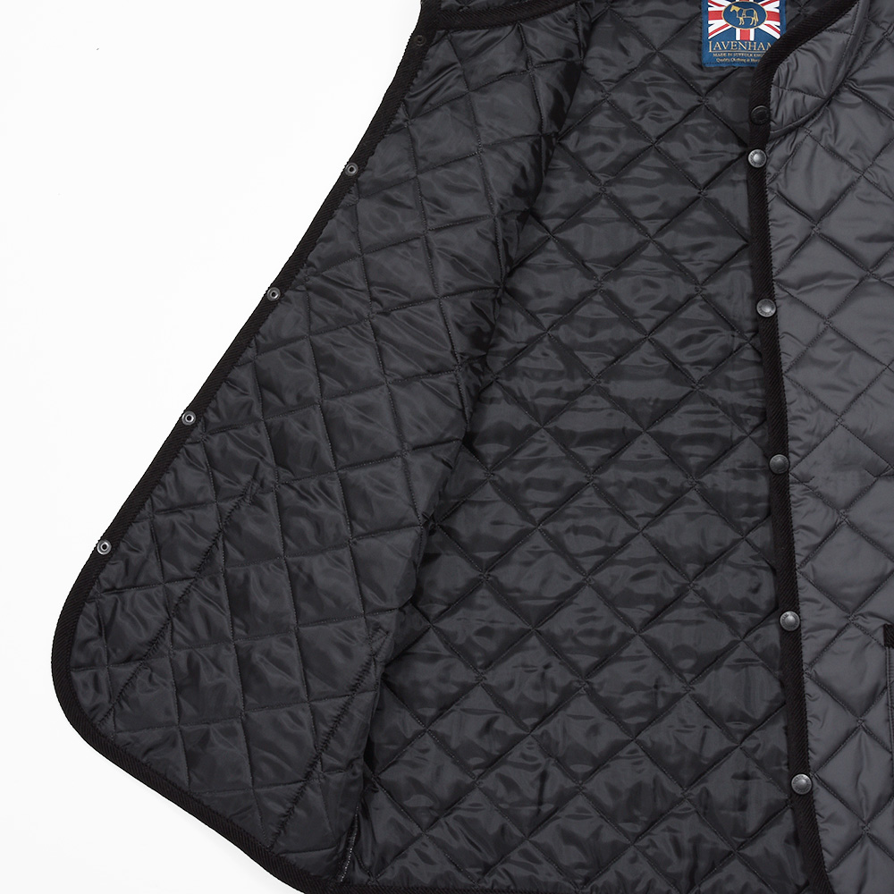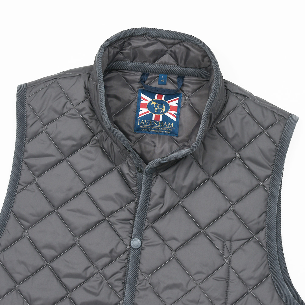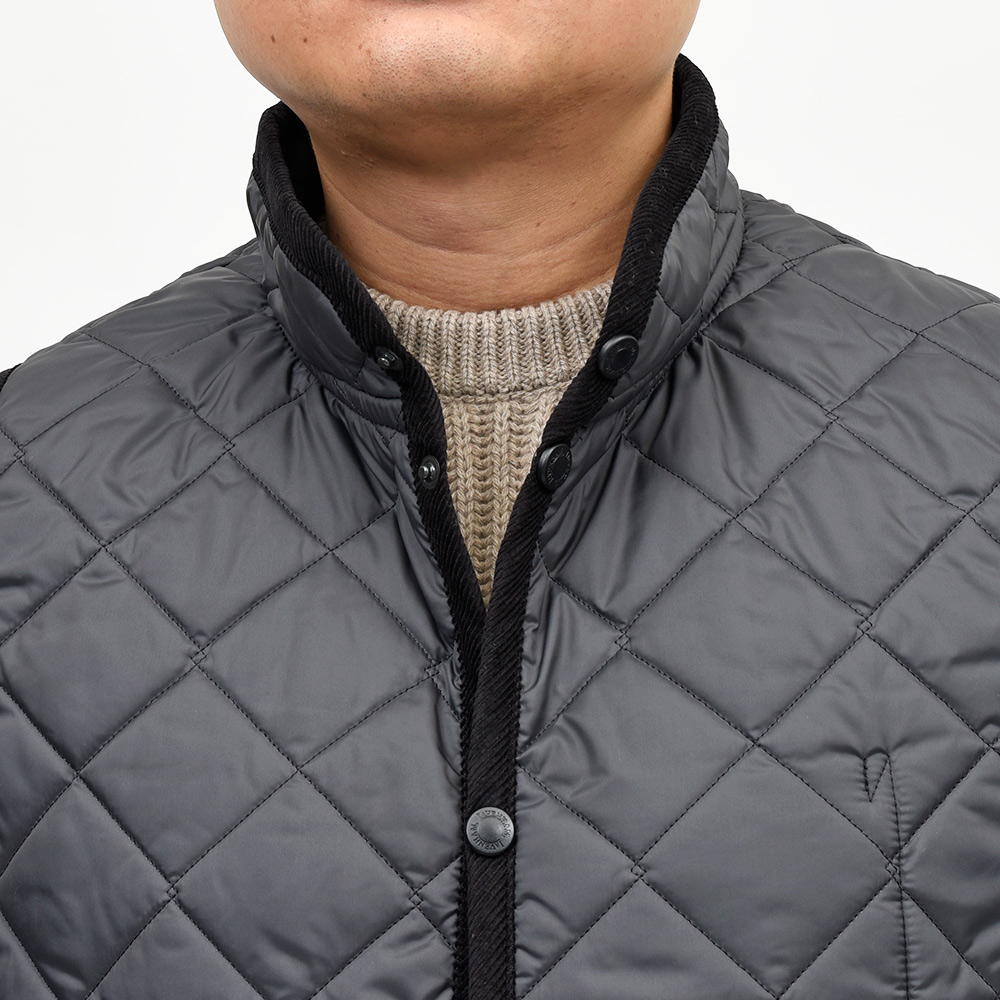 100%リサイクルポリエステルを使用した弱撥水の“ラブンスター”生地を、LAVENHAMの代名詞とも言える“2インチダイヤモンドキルティング”で仕上げた盤石の仕様に、軽量でありながら保温性に優れた中わた。耐久性の向上のために施されたオーガニックコットンのコーデュロイバインディングなど、現在でもすべての商品をサフォーク州サドバリーの自社工場で製造する品質管理の徹底ぶりによって、キルティングジャケットといえばLAVENHAMという確固たる地位を築いています。