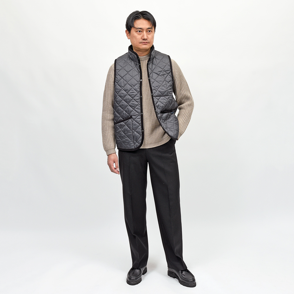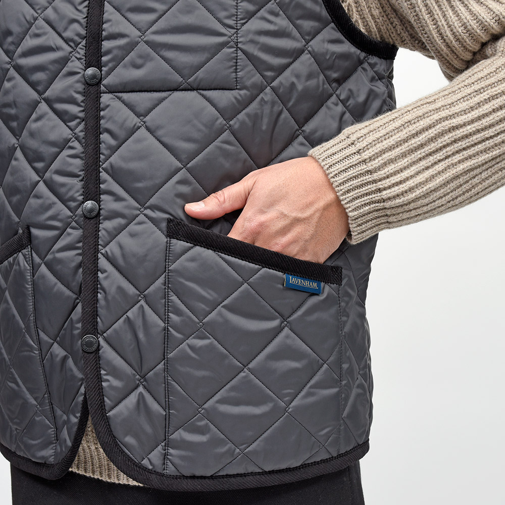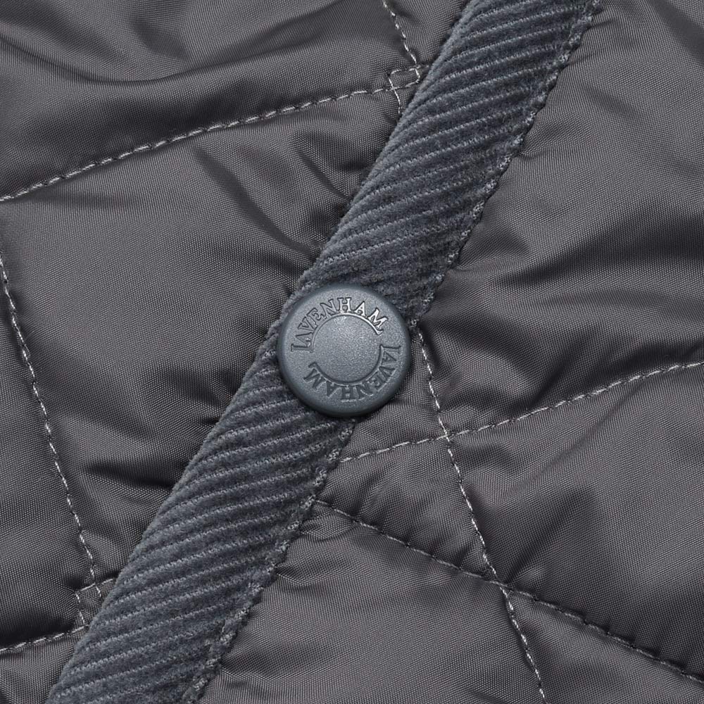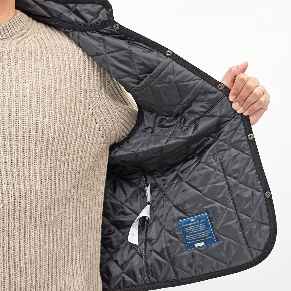 100%リサイクルポリエステルを使用した弱撥水の“ラブンスター”生地を、LAVENHAMの代名詞とも言える“2インチダイヤモンドキルティング”で仕上げた盤石の仕様に、軽量でありながら保温性に優れた中わた。耐久性の向上のために施されたオーガニックコットンのコーデュロイバインディングなど、現在でもすべての商品をサフォーク州サドバリーの自社工場で製造する品質管理の徹底ぶりによって、キルティングジャケットといえばLAVENHAMという確固たる地位を築いています。