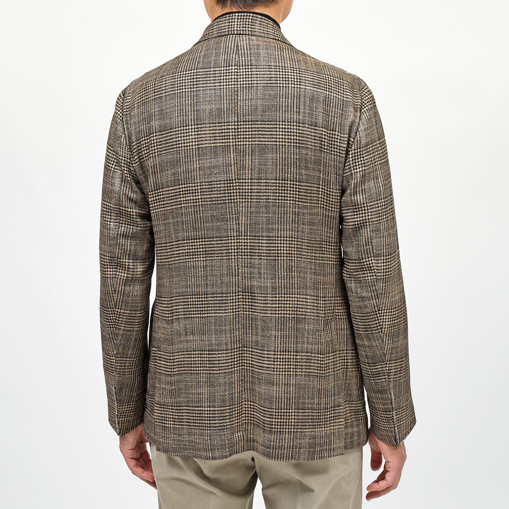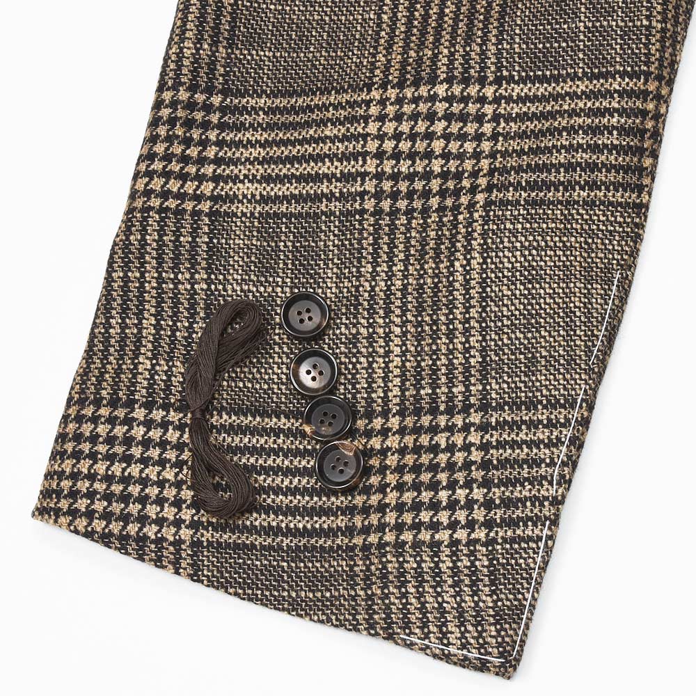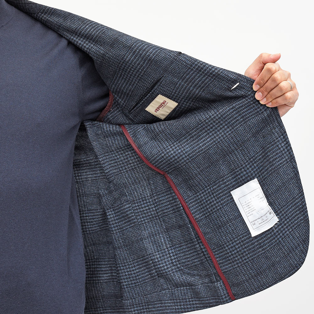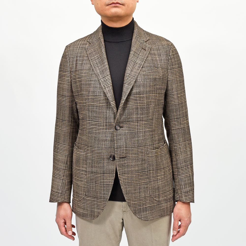 秋冬ではやや軽い目付け290gのグレンチェックジャケットは、ヴァージンウール×カシミヤの贅沢な素材使い。ヴァージンウールの滑らかな光沢感に、カシミヤのふんわりと柔らかなタッチがクラス感のある佇まいです。また、副資材をほとんど省いた段返り3つボタンシングルジャケットのニューモデル“GINZA”を採用。裏地も袖裏のみと非常に軽やかでありながらも、アンコンジャケットとは思えないエレガントな姿を作り上げてくれます。