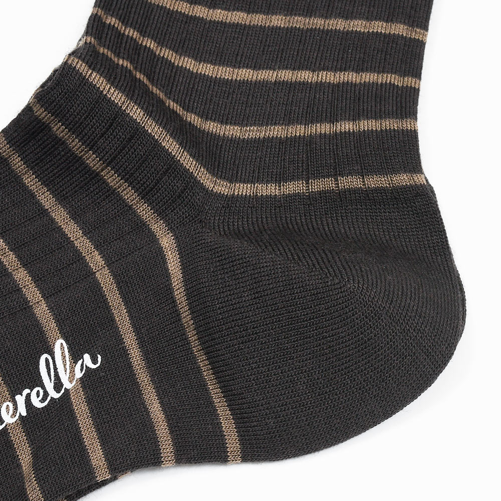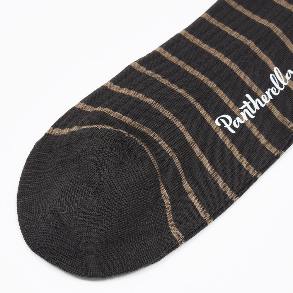 究極の素材と技術が相まって、まるでオーダーメイドしたように足に吸いつくような穿き心地が魅力のPantherella。その最たる部分がハンドリンキングにより丁寧に編み上げられたつま先。素材のテンションと力の加わり方を考慮し、熟練の職人の手作業によって繋ぎ合わされています。また、踵から土踏まずつま先までの足裏にそぐう美しいカーブは靴下編みにおける高等技術の証明です。このカーブこそが足裏に吸いつくようなフィット感を生み出し、質実剛健で無類の履き心地をもたらしています。